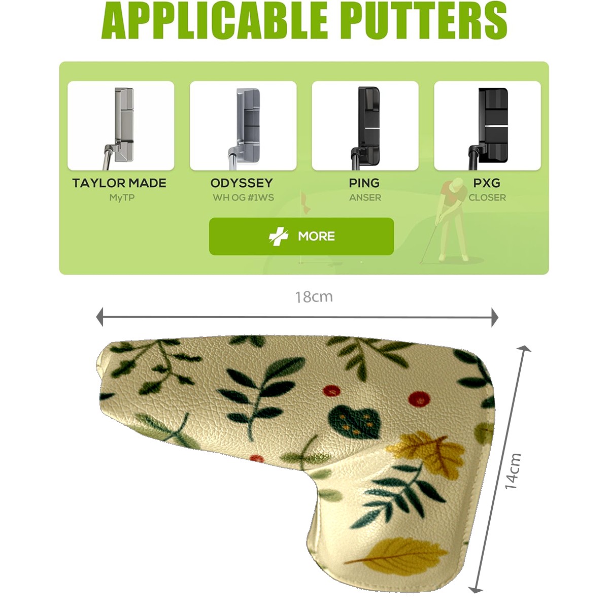 Golf Club Head Covers for Blade Putter, Waterproof Leather Headcovers for Golf Clubs, Ideal Golf Accessories Gift for Men Women (Small Forest Elements)