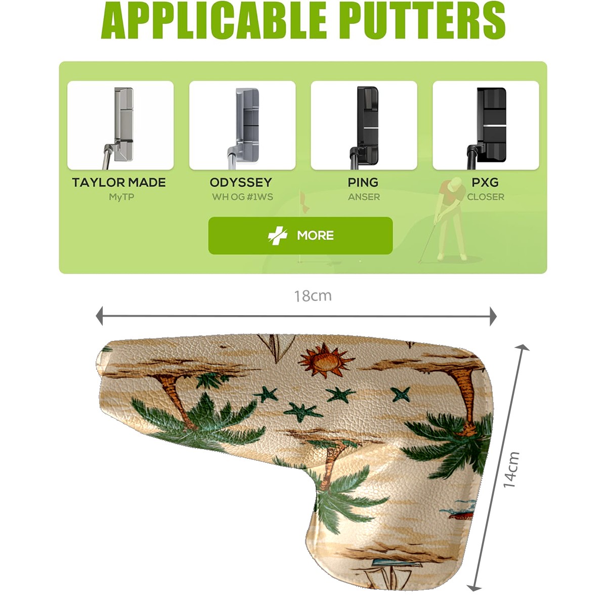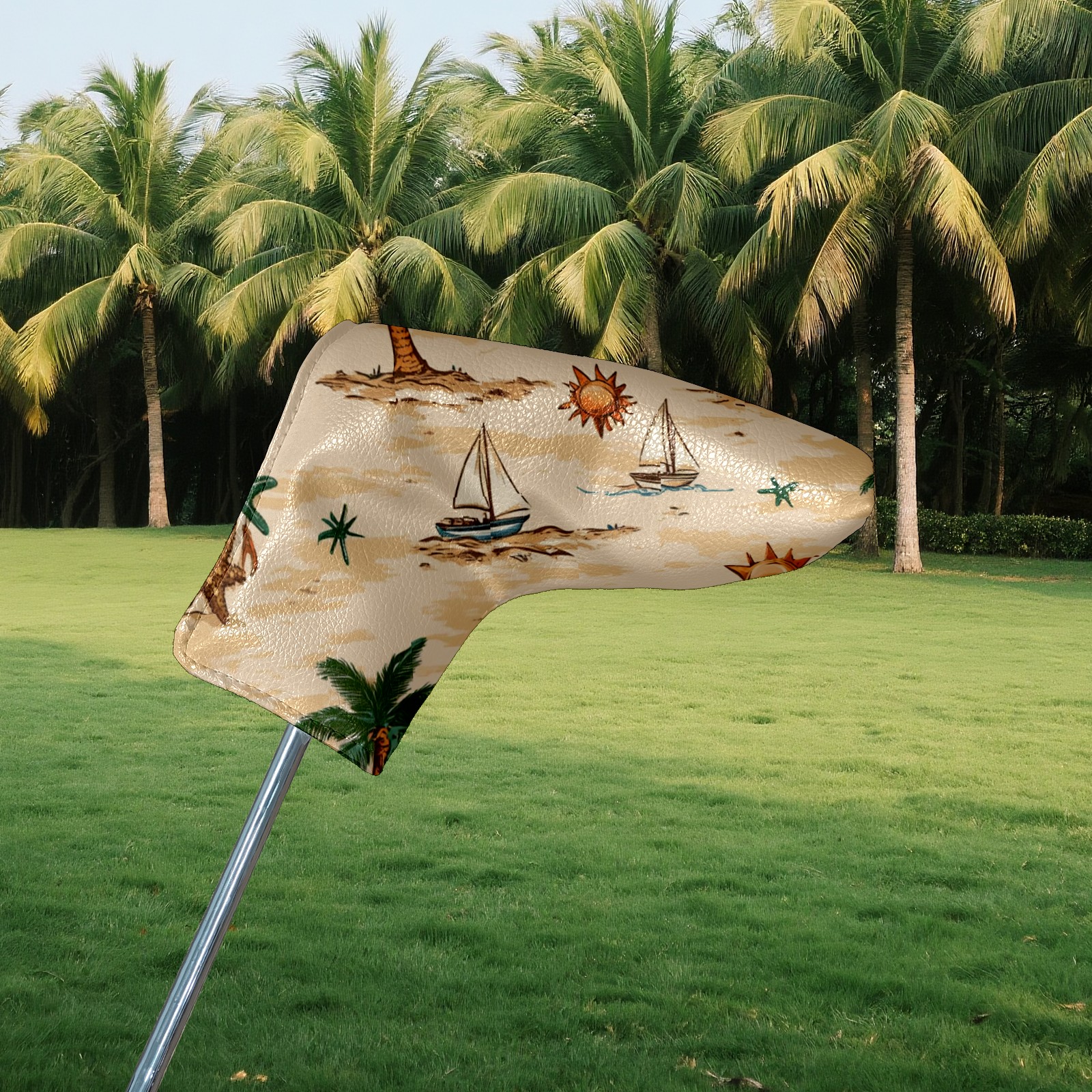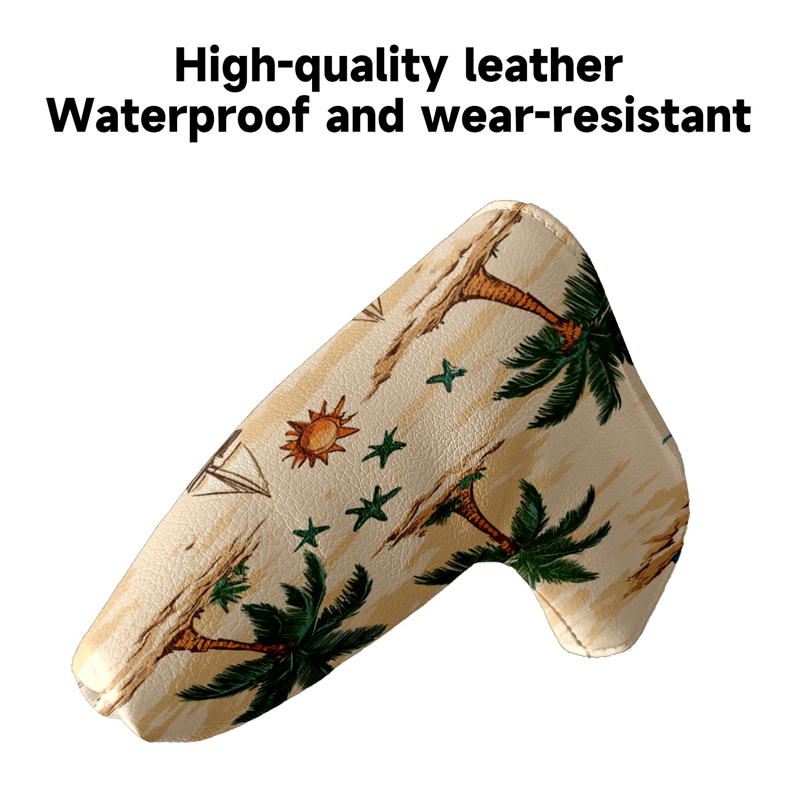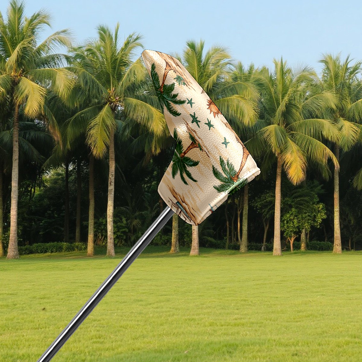 Golf Club Head Covers for Blade Putter, Waterproof Leather Headcovers for Golf Clubs, Ideal Golf Accessories Gift for Men Women (Palm Trees Suns And Starfish)