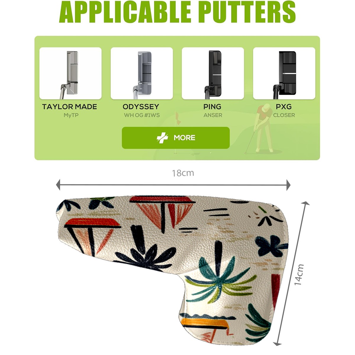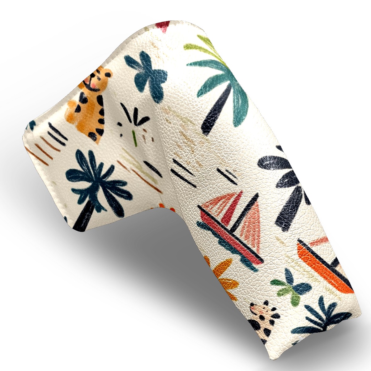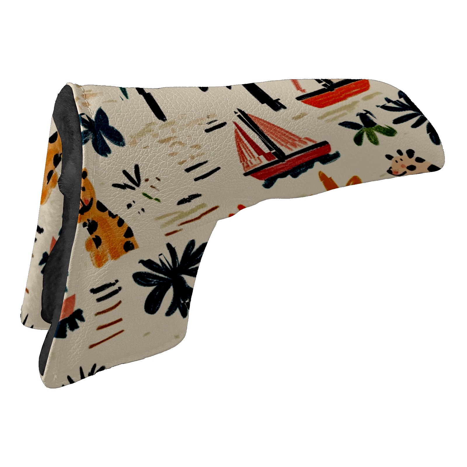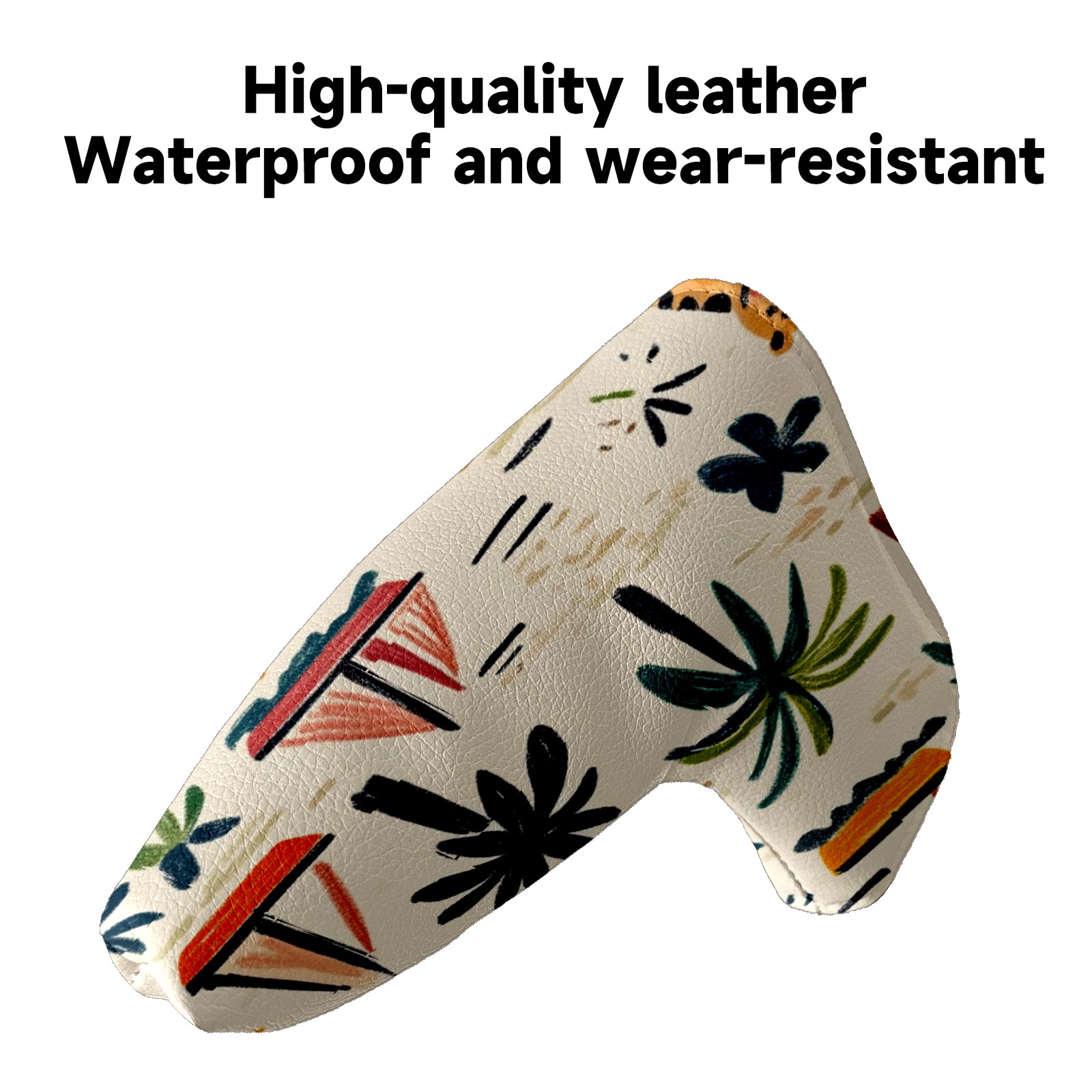 Golf Club Head Covers for Blade Putter, Waterproof Leather Headcovers for Golf Clubs, Ideal Golf Accessories Gift for Men Women (Palm Trees Boats And Lions)