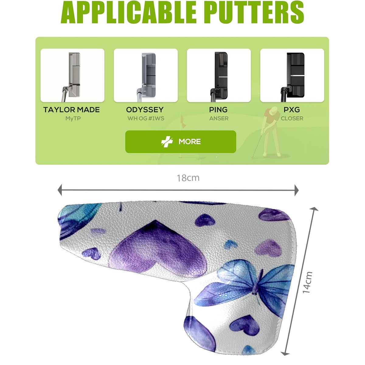 Golf Club Head Covers for Blade Putter, Waterproof Leather Headcovers for Golf Clubs, Ideal Golf Accessories Gift for Men Women (Watercolor Butterfly)