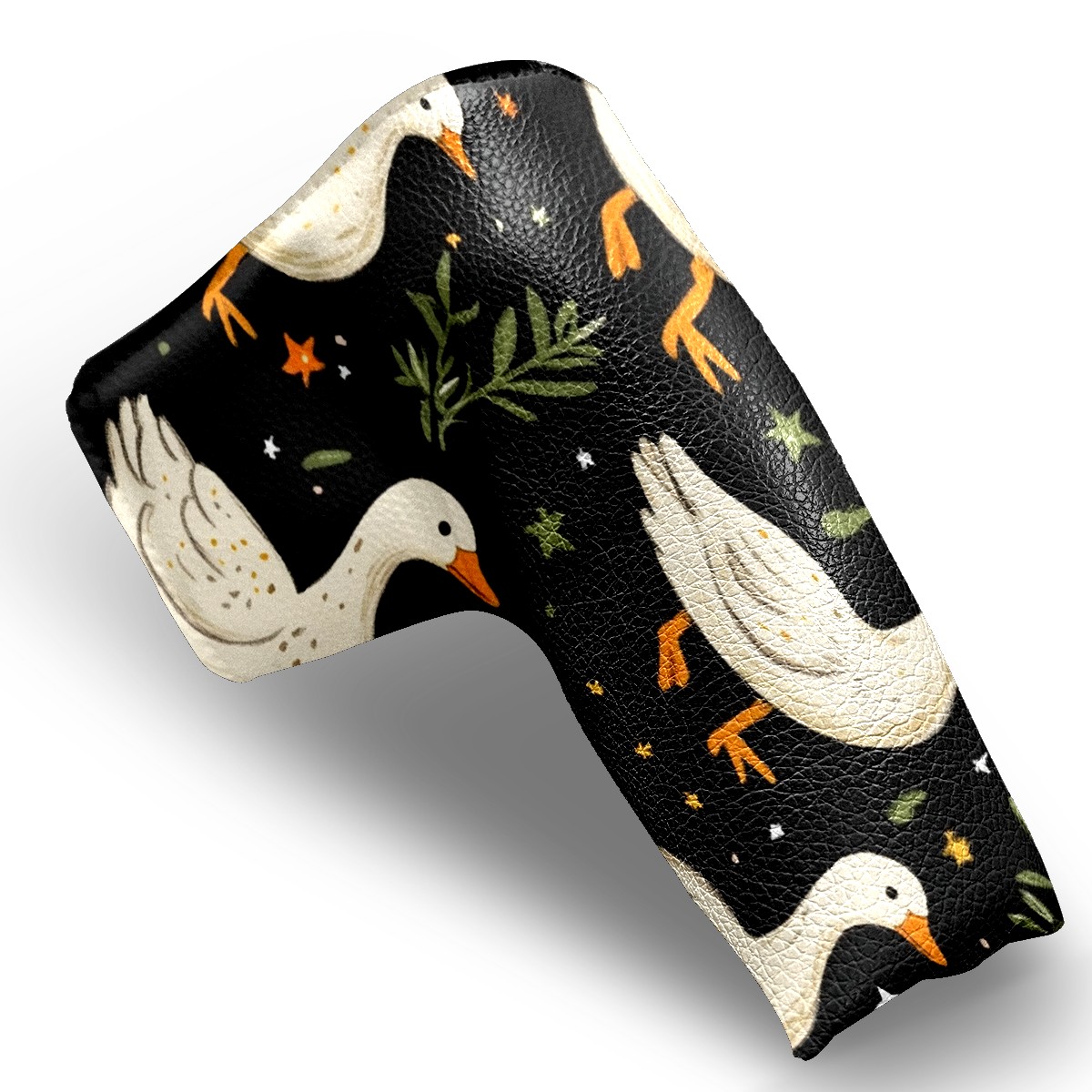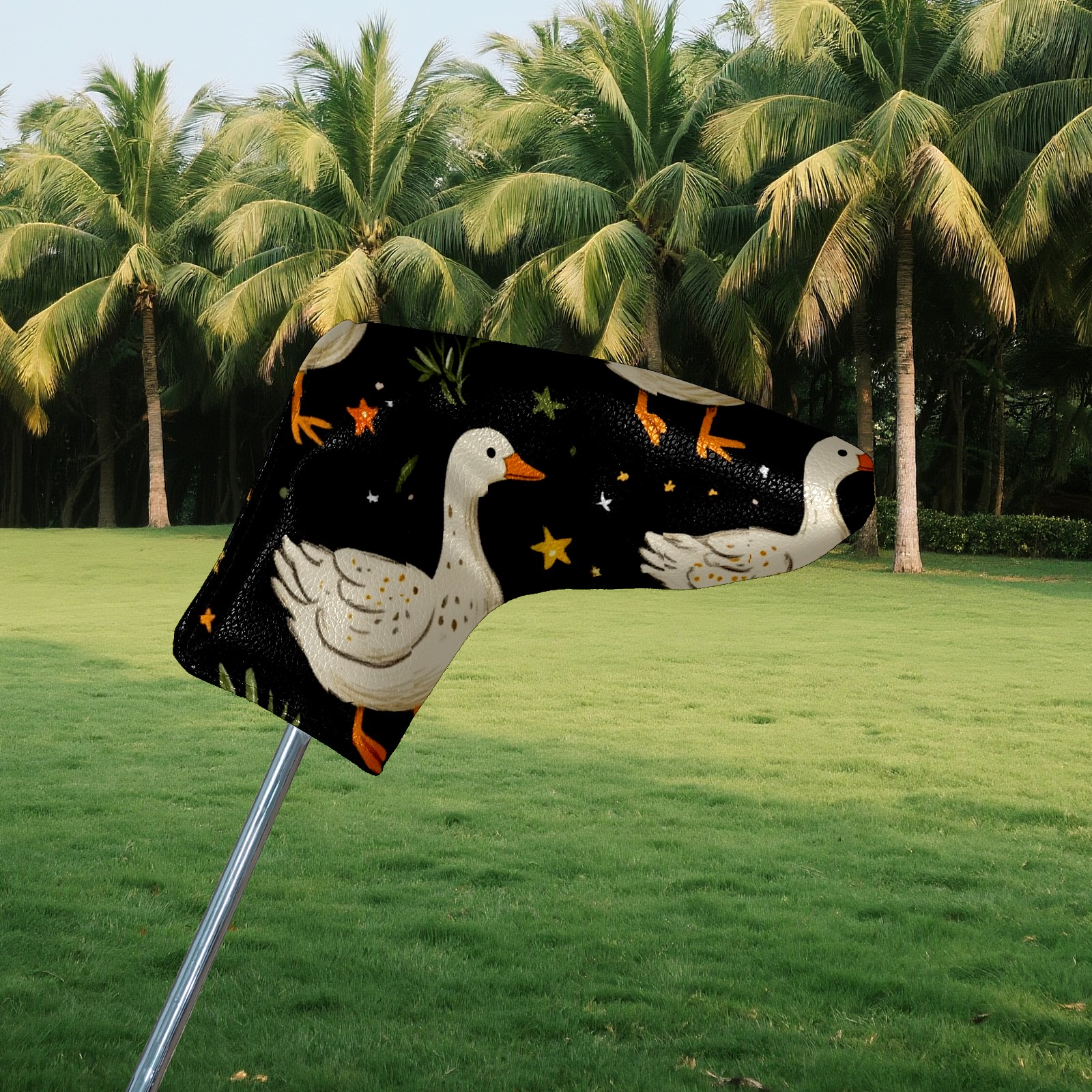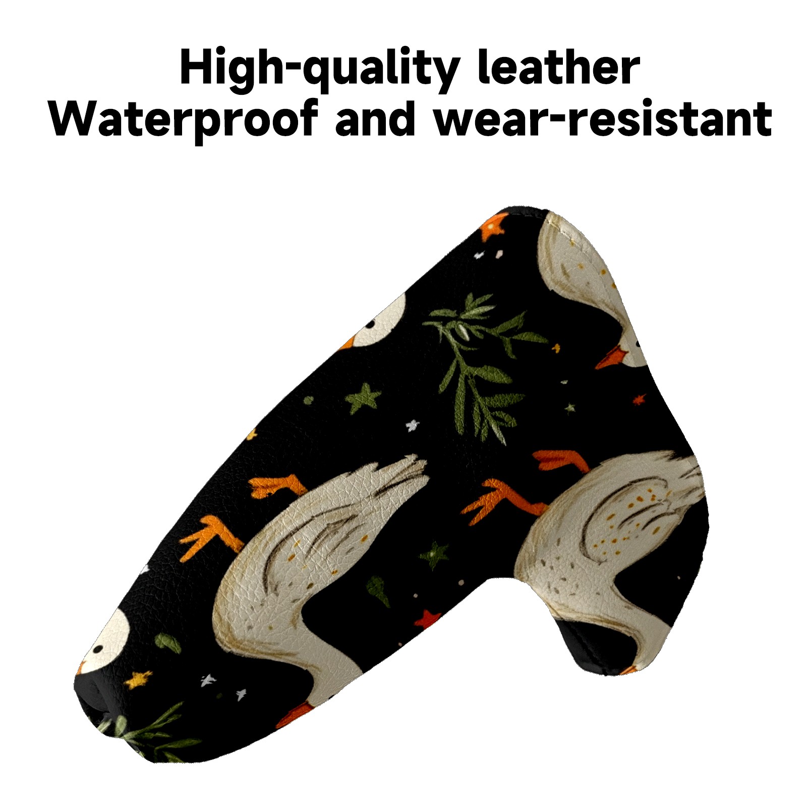 Golf Club Head Covers for Blade Putter, Waterproof Leather Headcovers for Golf Clubs, Ideal Golf Accessories Gift for Men Women (White Geese Carrots And Stars)