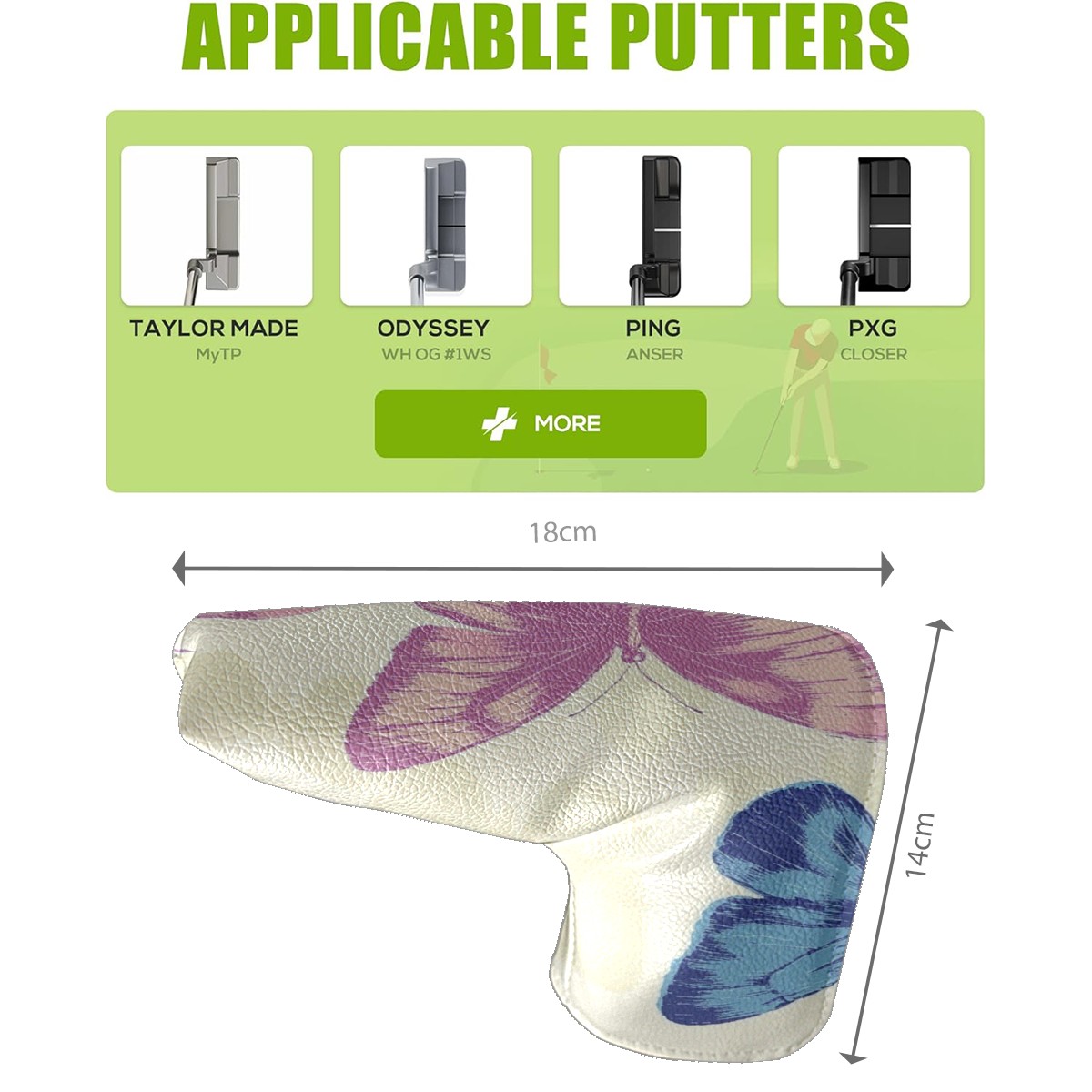 Golf Club Head Covers for Blade Putter, Waterproof Leather Headcovers for Golf Clubs, Ideal Golf Accessories Gift for Men Women (Pink And Blue Butterflies)