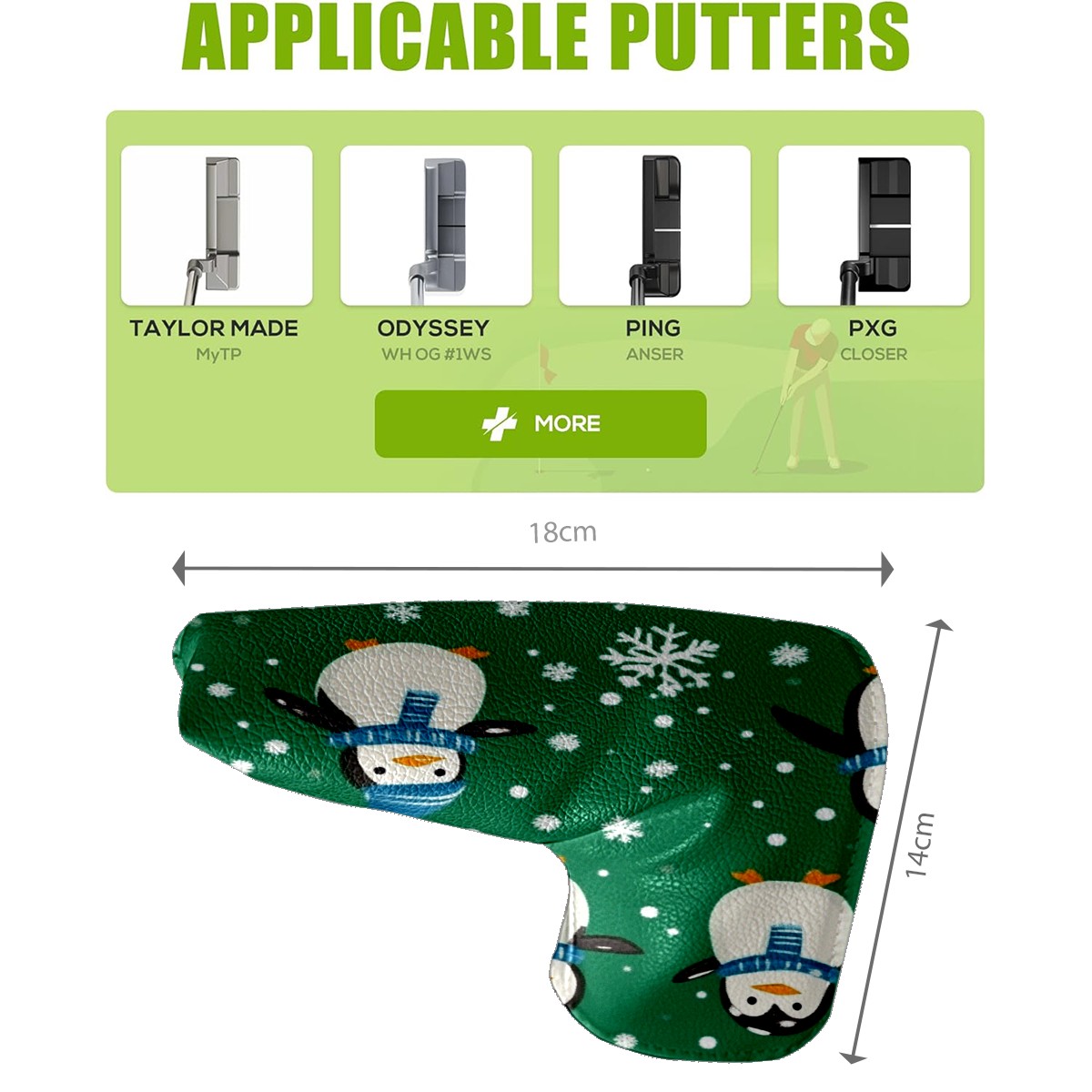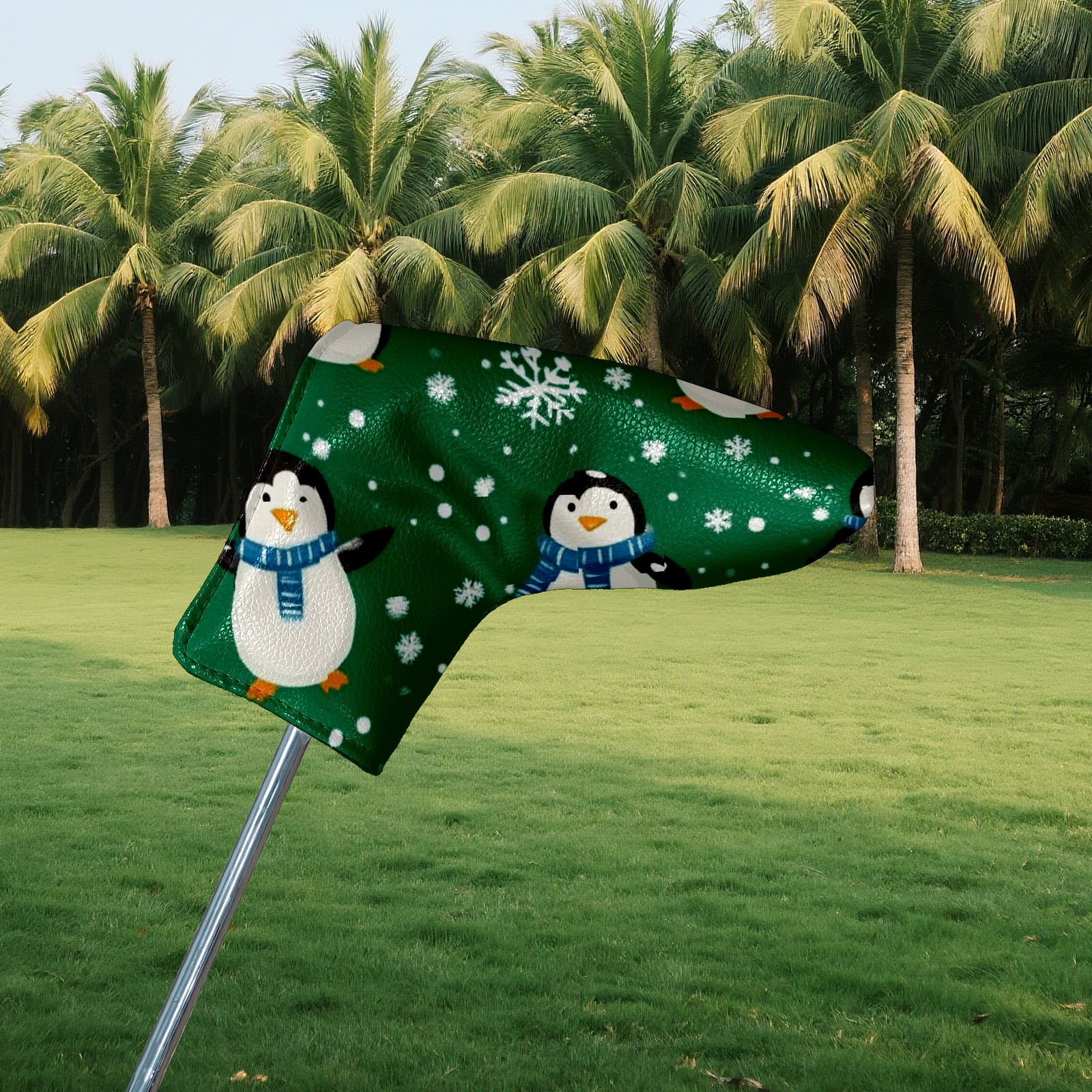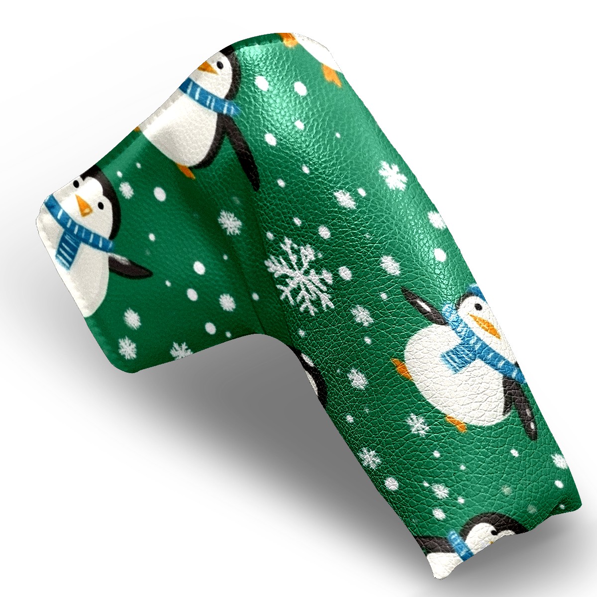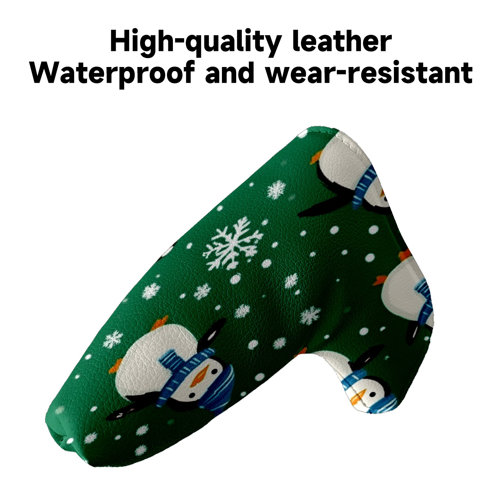 Golf Club Head Covers for Blade Putter, Waterproof Leather Headcovers for Golf Clubs, Ideal Golf Accessories Gift for Men Women (Penguins And Snowmen)