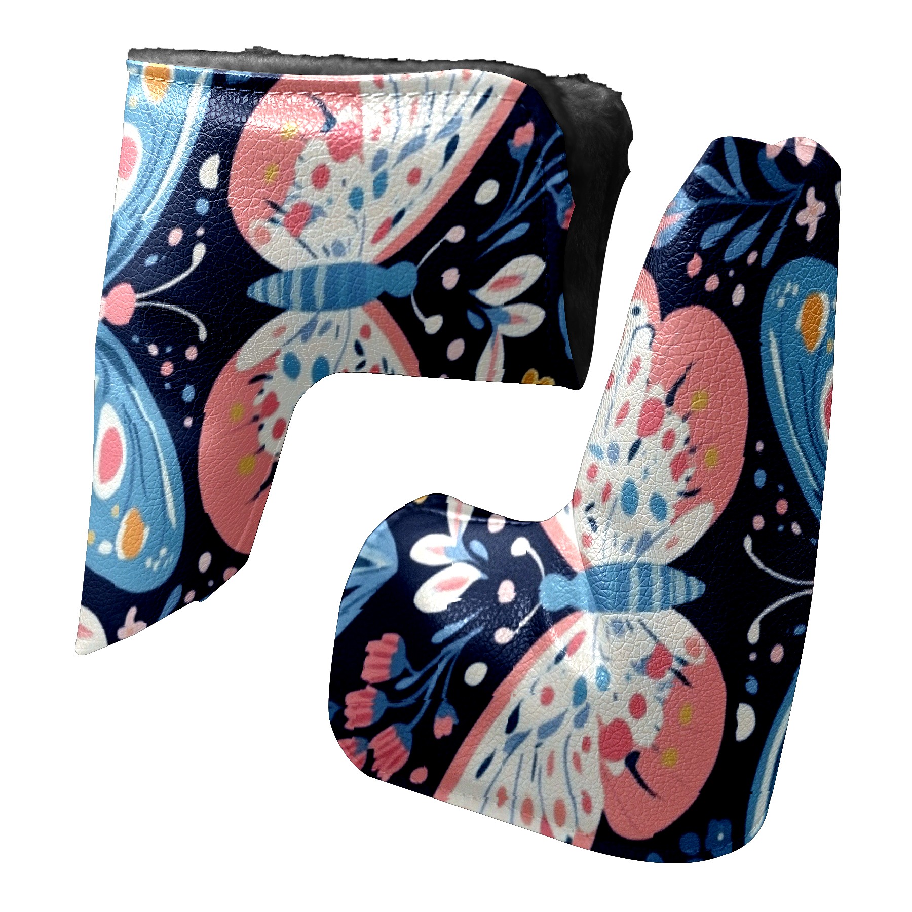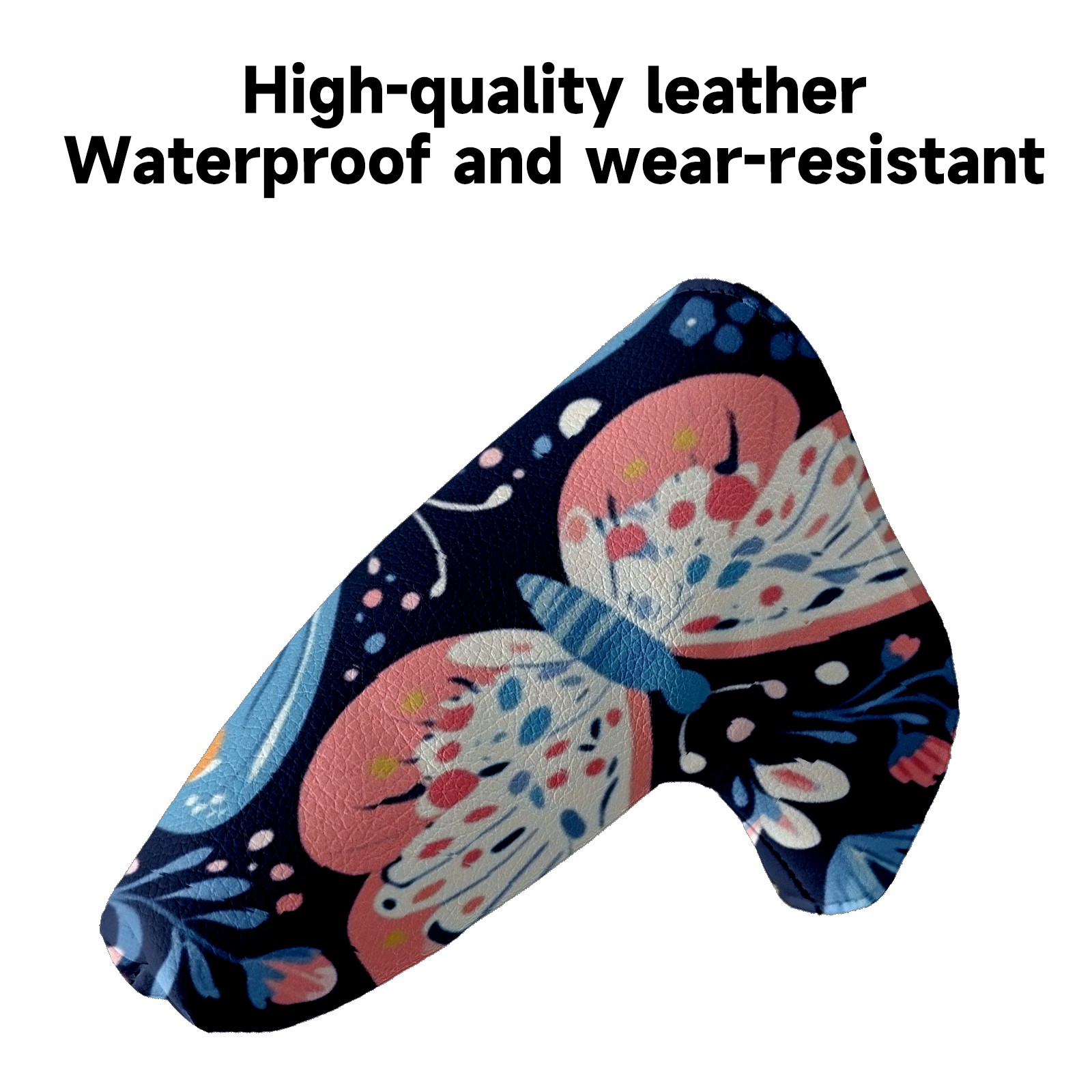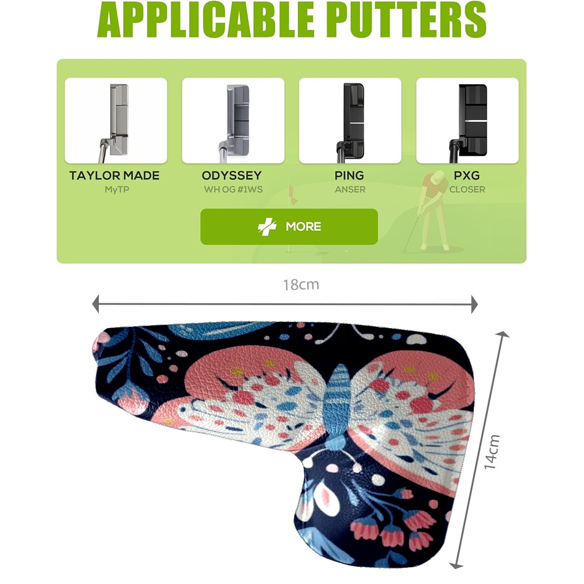 Golf Club Head Covers for Blade Putter, Waterproof Leather Headcovers for Golf Clubs, Ideal Golf Accessories Gift for Men Women (Playful Butterflies And Flowers)