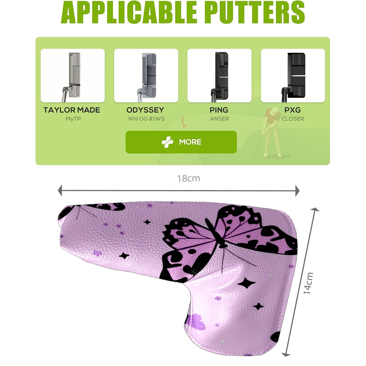 Golf Club Head Covers for Blade Putter, Waterproof Leather Headcovers for Golf Clubs, Ideal Golf Accessories Gift for Men Women (Pink Leopard-print Butterflies)