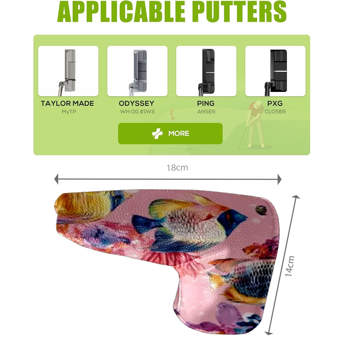 Golf Club Head Covers for Blade Putter, Waterproof Leather Headcovers for Golf Clubs, Ideal Golf Accessories Gift for Men Women (Tropical Fish)