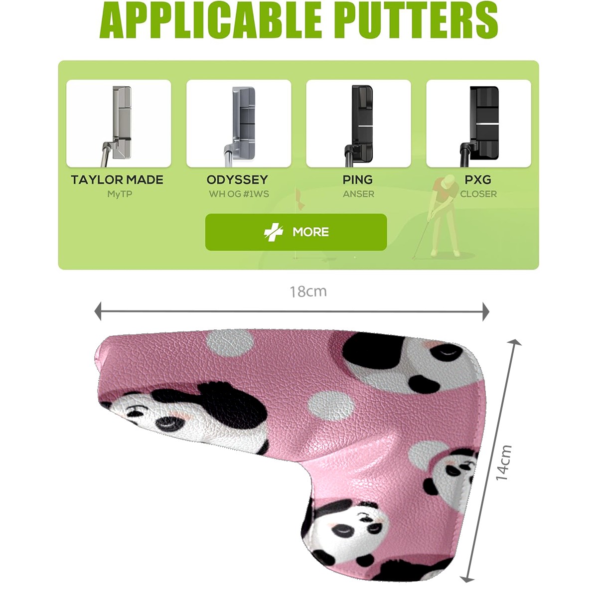 Golf Club Head Covers for Blade Putter, Waterproof Leather Headcovers for Golf Clubs, Ideal Golf Accessories Gift for Men Women (Panda)