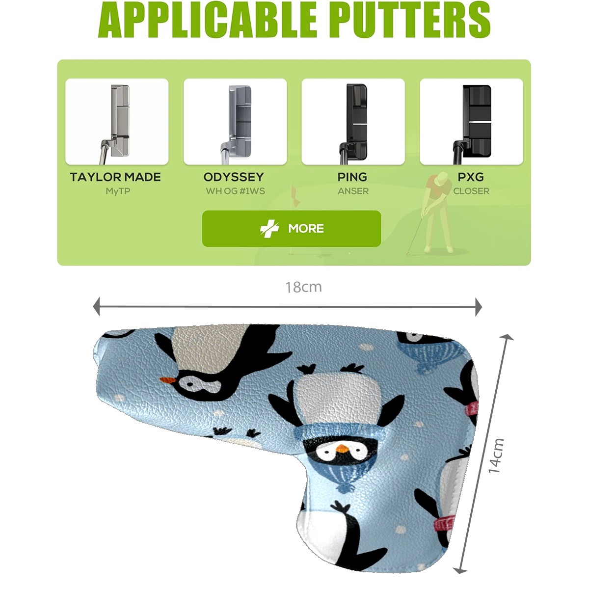 Golf Club Head Covers for Blade Putter, Waterproof Leather Headcovers for Golf Clubs, Ideal Golf Accessories Gift for Men Women (Cute Penguins)