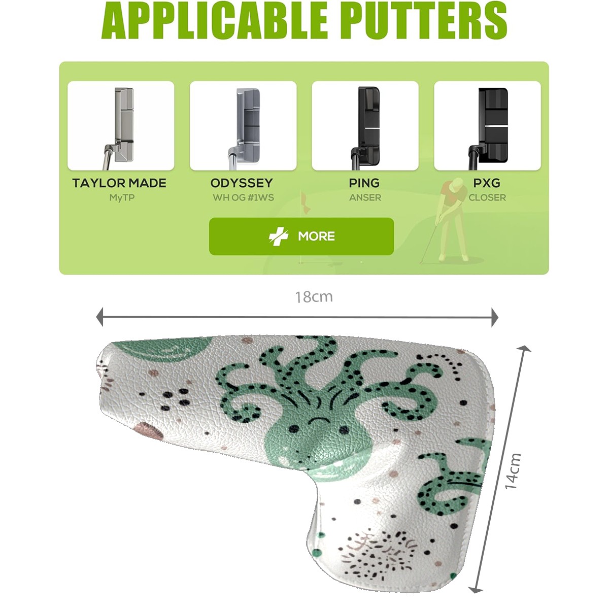 Golf Club Head Covers for Blade Putter, Waterproof Leather Headcovers for Golf Clubs, Ideal Golf Accessories Gift for Men Women (Cute Octopuses)