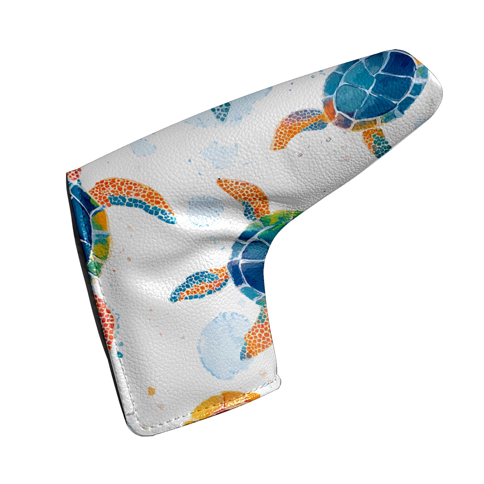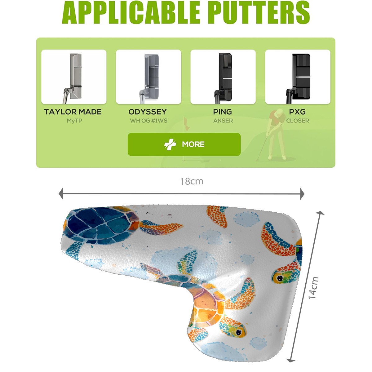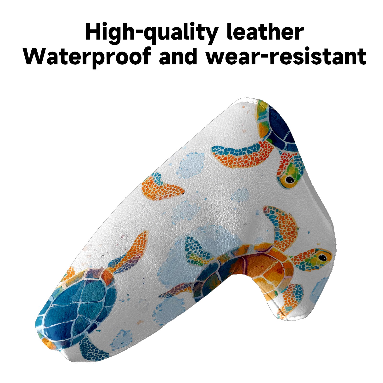 Golf Club Head Covers for Blade Putter, Waterproof Leather Headcovers for Golf Clubs, Ideal Golf Accessories Gift for Men Women (Colorful Sea Turtles)
