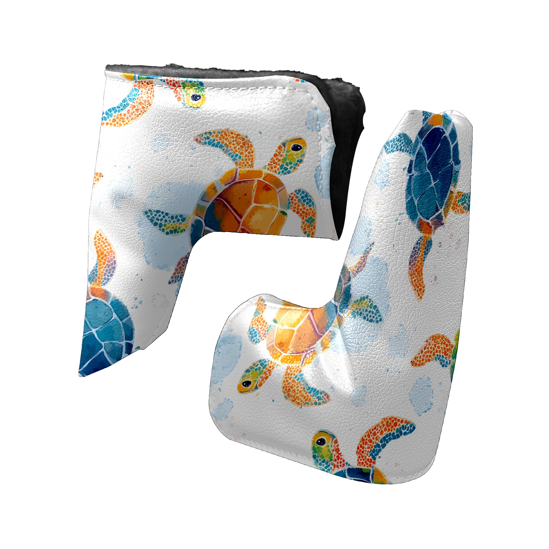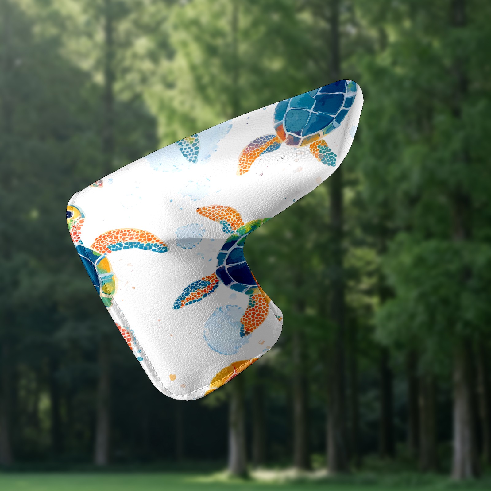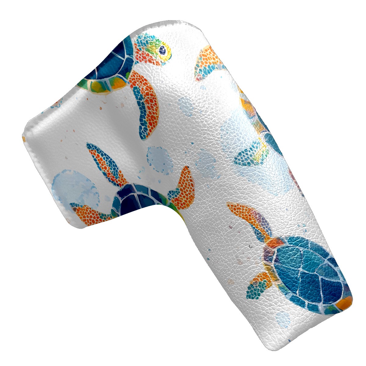Golf Club Head Covers for Blade Putter, Waterproof Leather Headcovers for Golf Clubs, Ideal Golf Accessories Gift for Men Women (Colorful Sea Turtles)