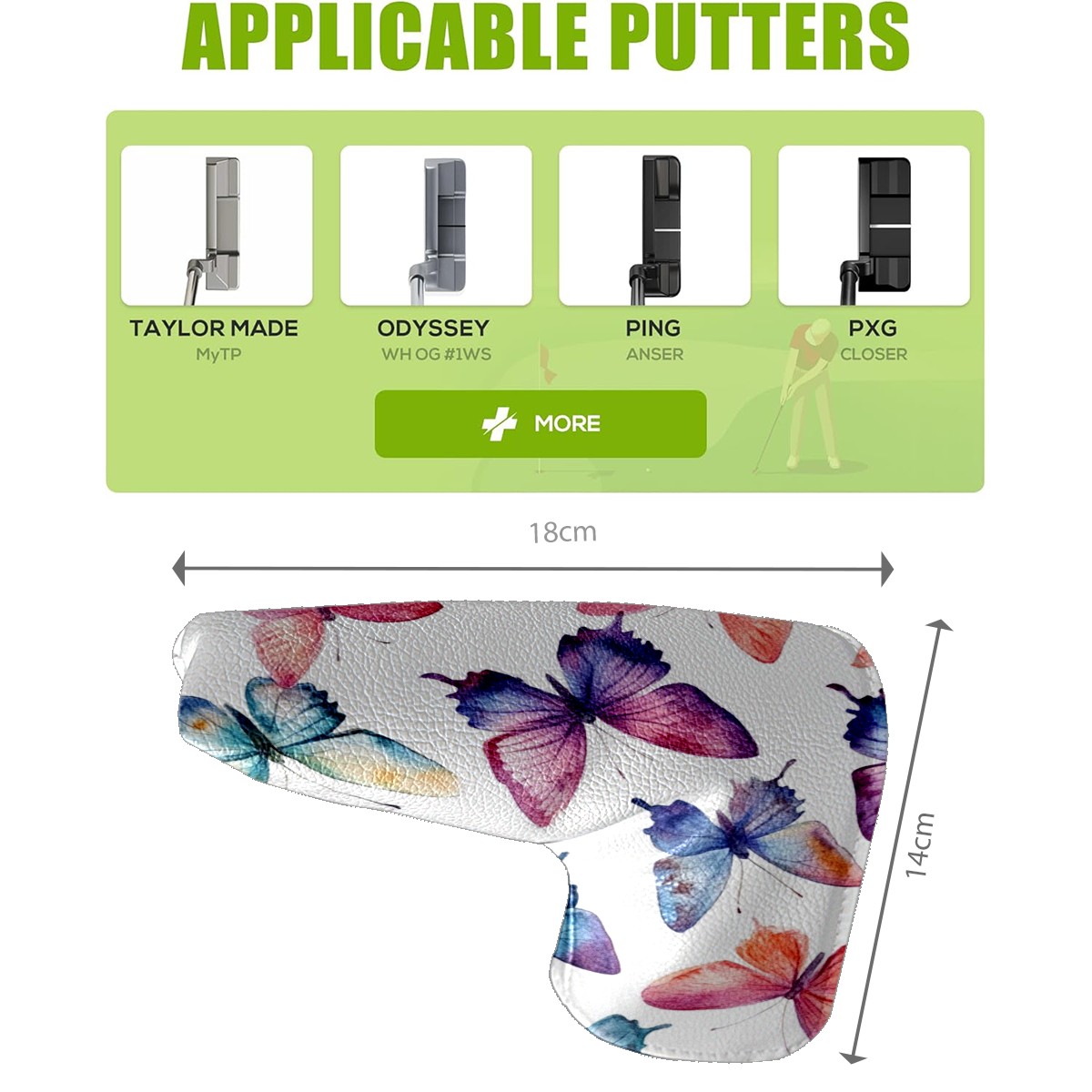Golf Club Head Covers for Blade Putter, Waterproof Leather Headcovers for Golf Clubs, Ideal Golf Accessories Gift for Men Women (Colorful Watercolor Butterflies)
