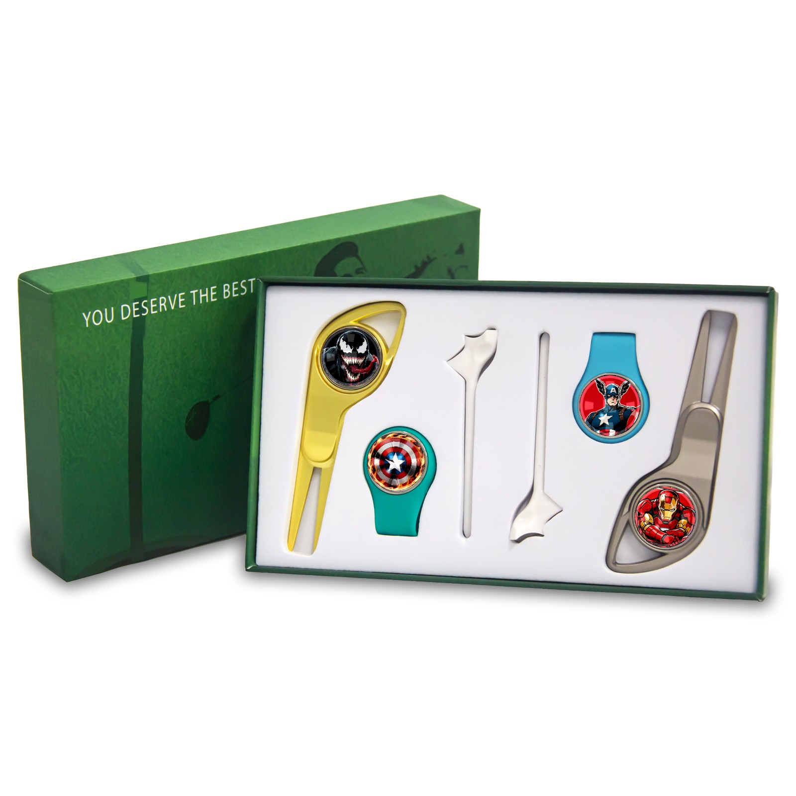 <p>The all-purpose gift box created for golf lovers is now available! It is packed in a reinforced paper box with a high-quality texture and is not easy to deform. The moment you open the gift box, you will see its exquisite style. It contains 2 green forks,2 hat clips, 2 tacks and 4 magnetic glass markers. From course repair to equipment embellishment, to precise marking, this set of golf essential artifacts is a secret weapon to improve your performance on the field. </p> <p>Whether it is a birthday, Father's Day, or other special moments, this gift box is a perfect gift for golfers of all experience levels, helping them to swing confidently on the course and win. The intimate design suitable for both men and women makes it a popular choice among golf enthusiasts. Its compact and portable features make it easy to accompany you to the golf course, driving range, or to various outdoor swing holy places, making every shot full of ritual and professionalism!</p>