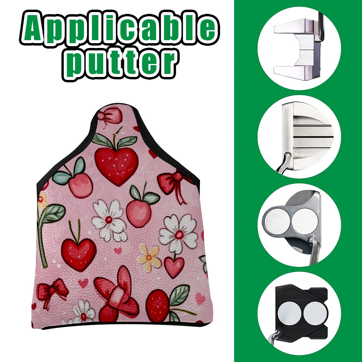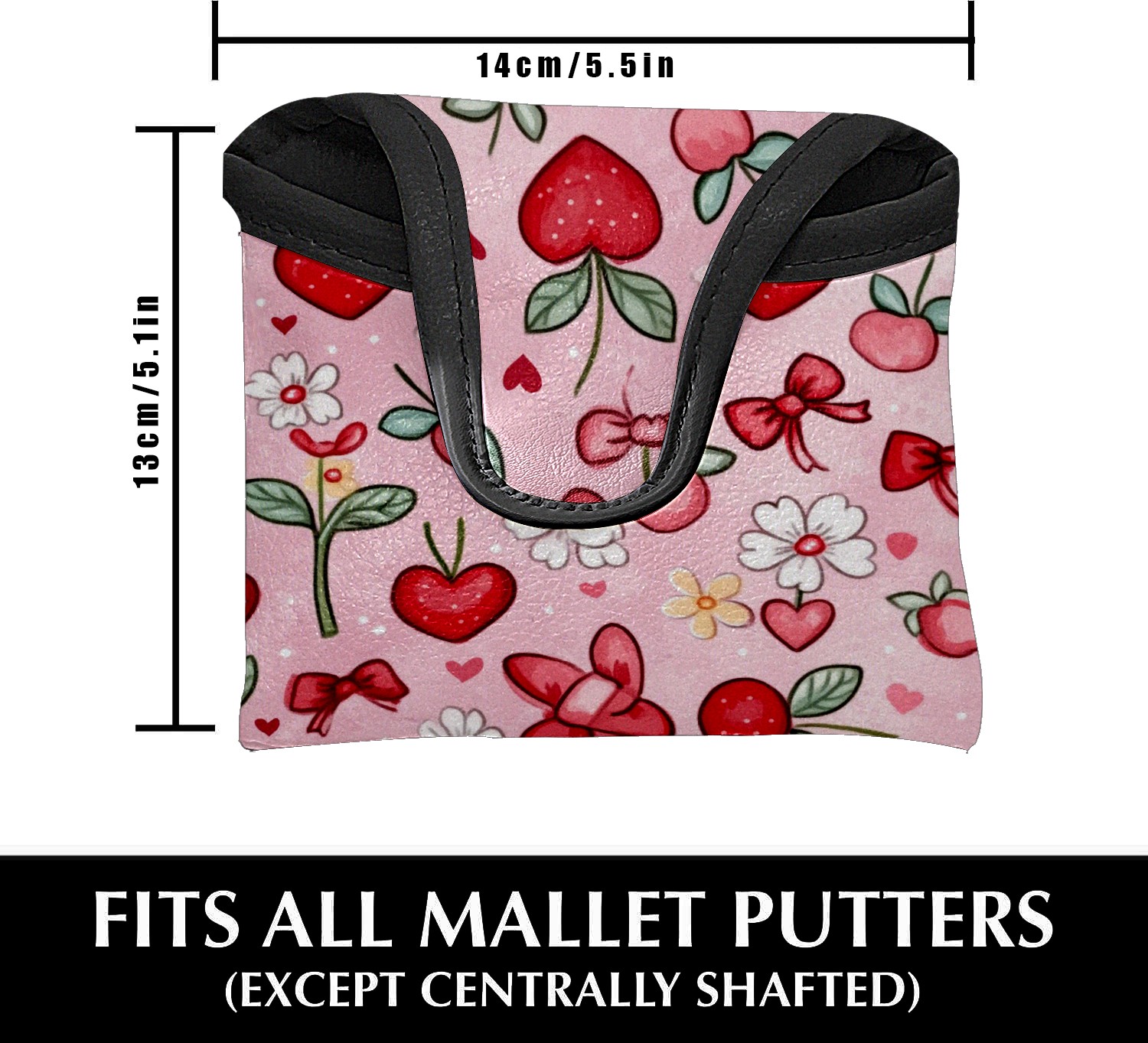Golf Club Head Covers for Mallet Putter, Waterproof Leather Headcovers for Golf Clubs, Ideal Golf Accessories Gift for Men Women (Red And White Hearts)