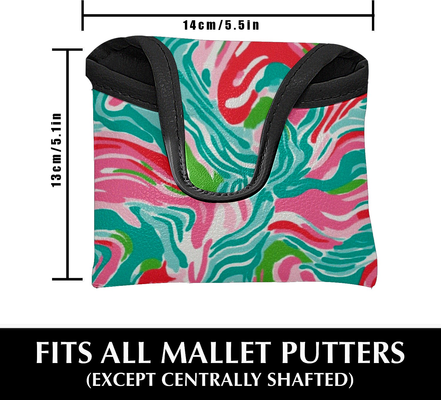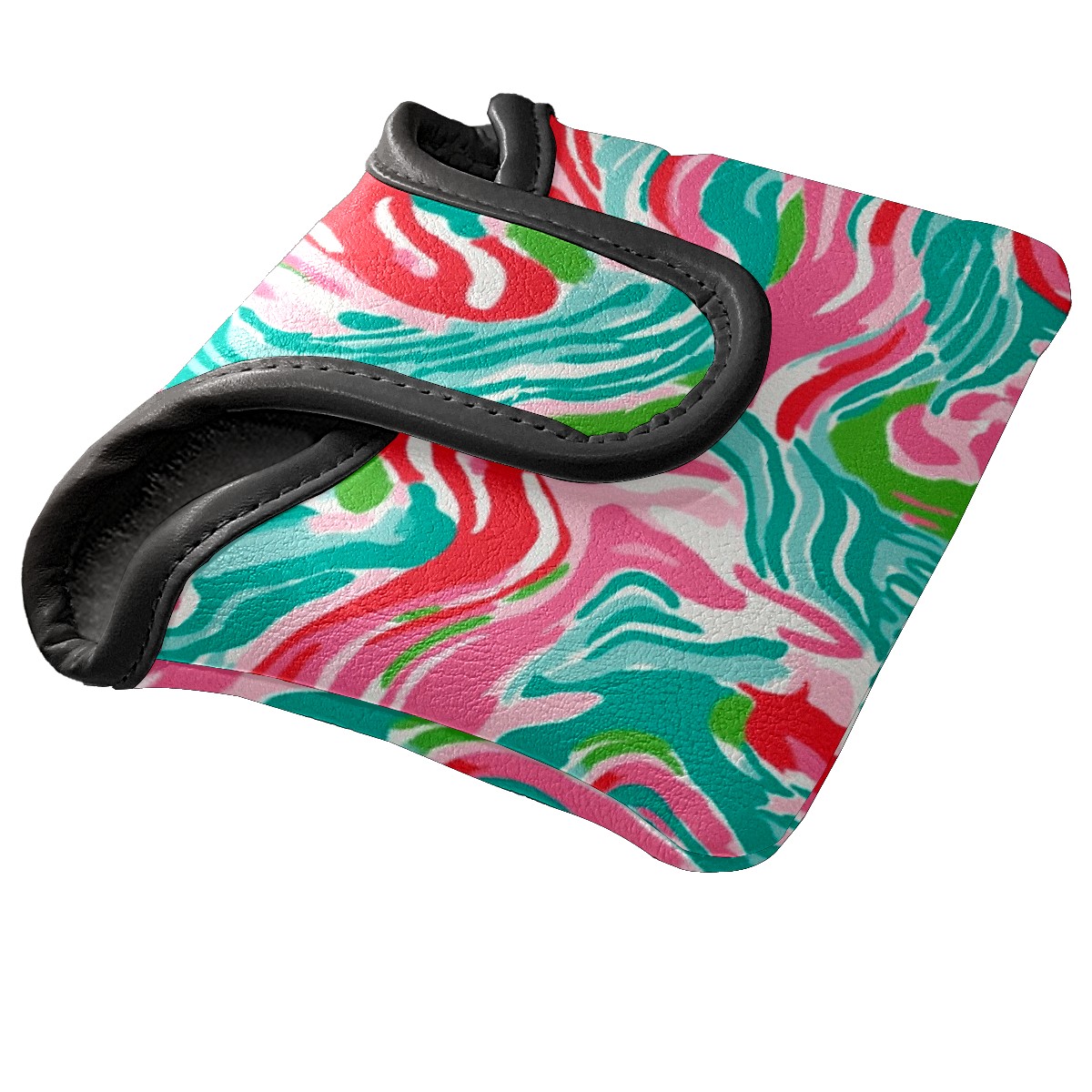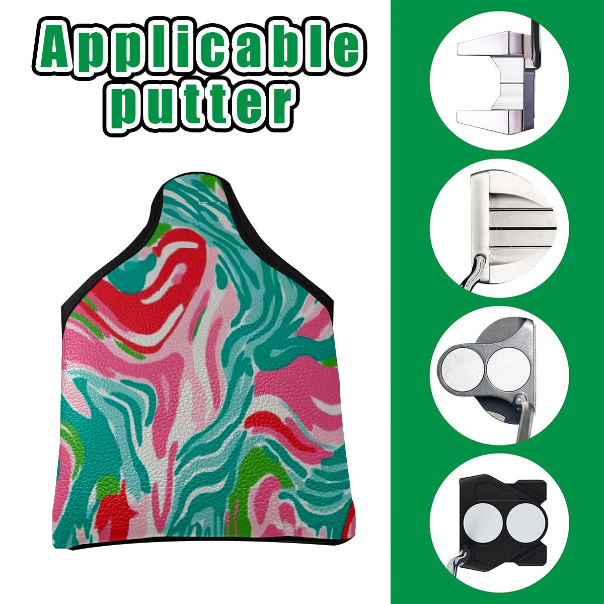 Golf Club Head Covers for Mallet Putter, Waterproof Leather Headcovers for Golf Clubs, Ideal Golf Accessories Gift for Men Women (Pink And Teal Abstract Waves)