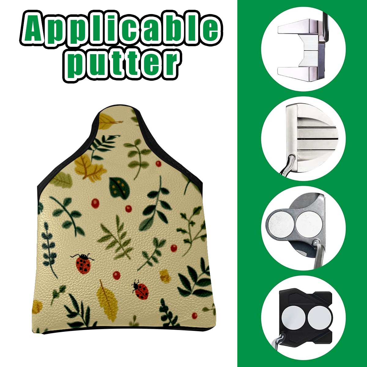Golf Club Head Covers for Mallet Putter, Waterproof Leather Headcovers for Golf Clubs, Ideal Golf Accessories Gift for Men Women (Small Forest Elements)
