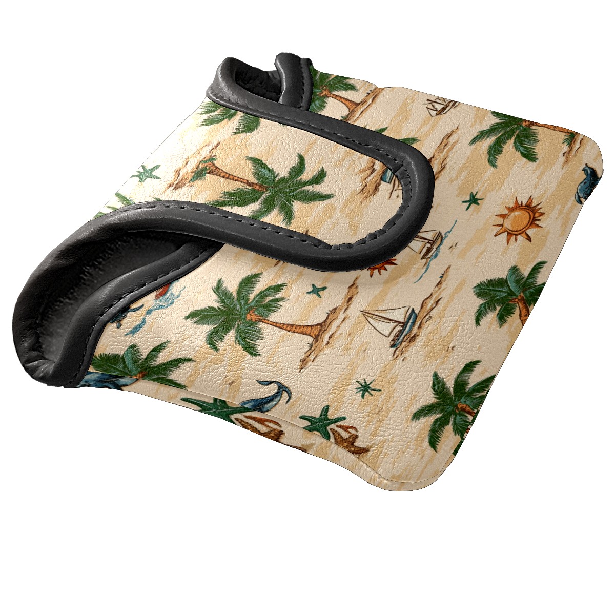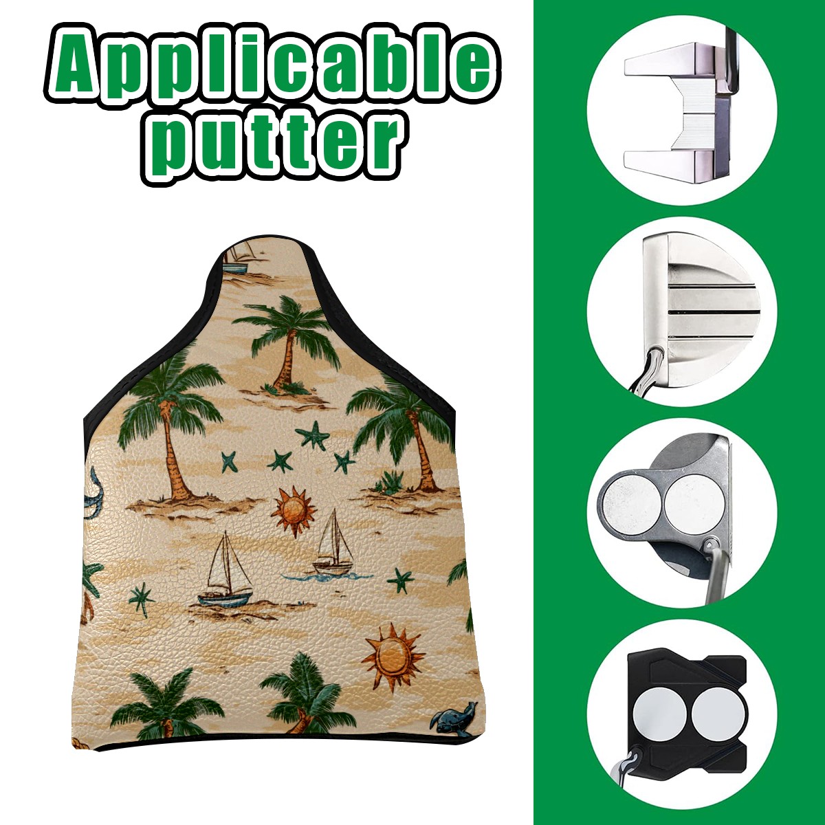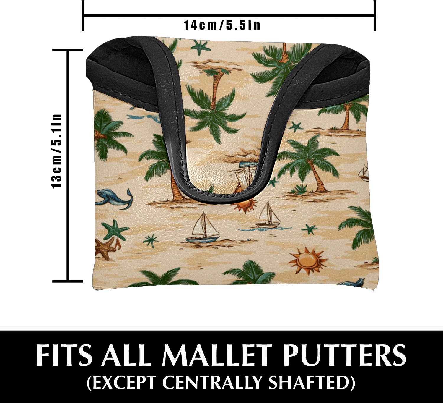 Golf Club Head Covers for Mallet Putter, Waterproof Leather Headcovers for Golf Clubs, Ideal Golf Accessories Gift for Men Women (Palm Trees Suns And Starfish)
