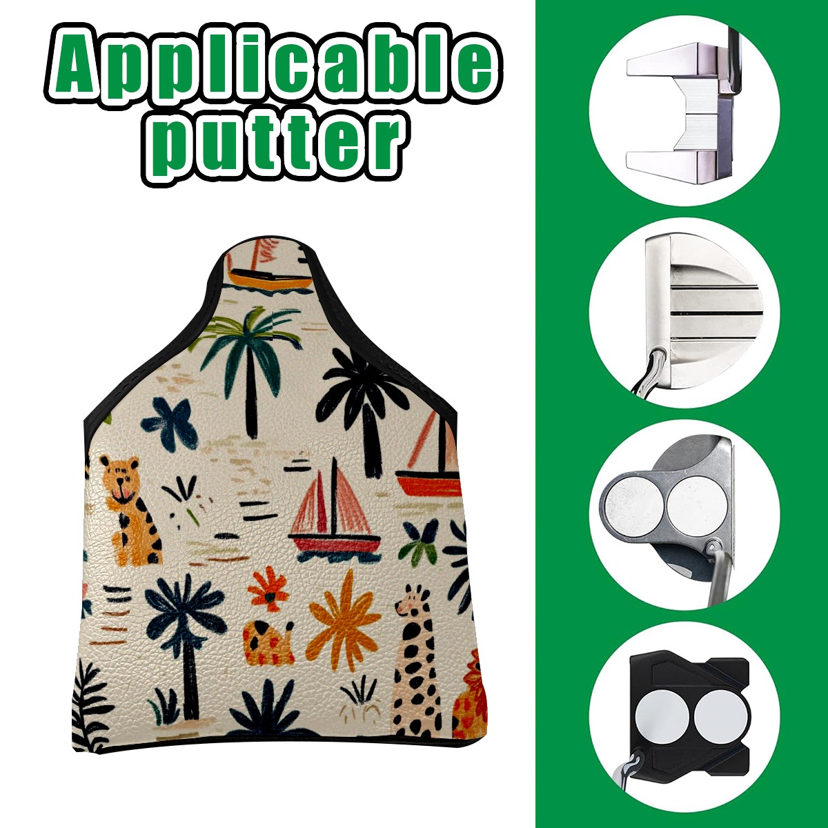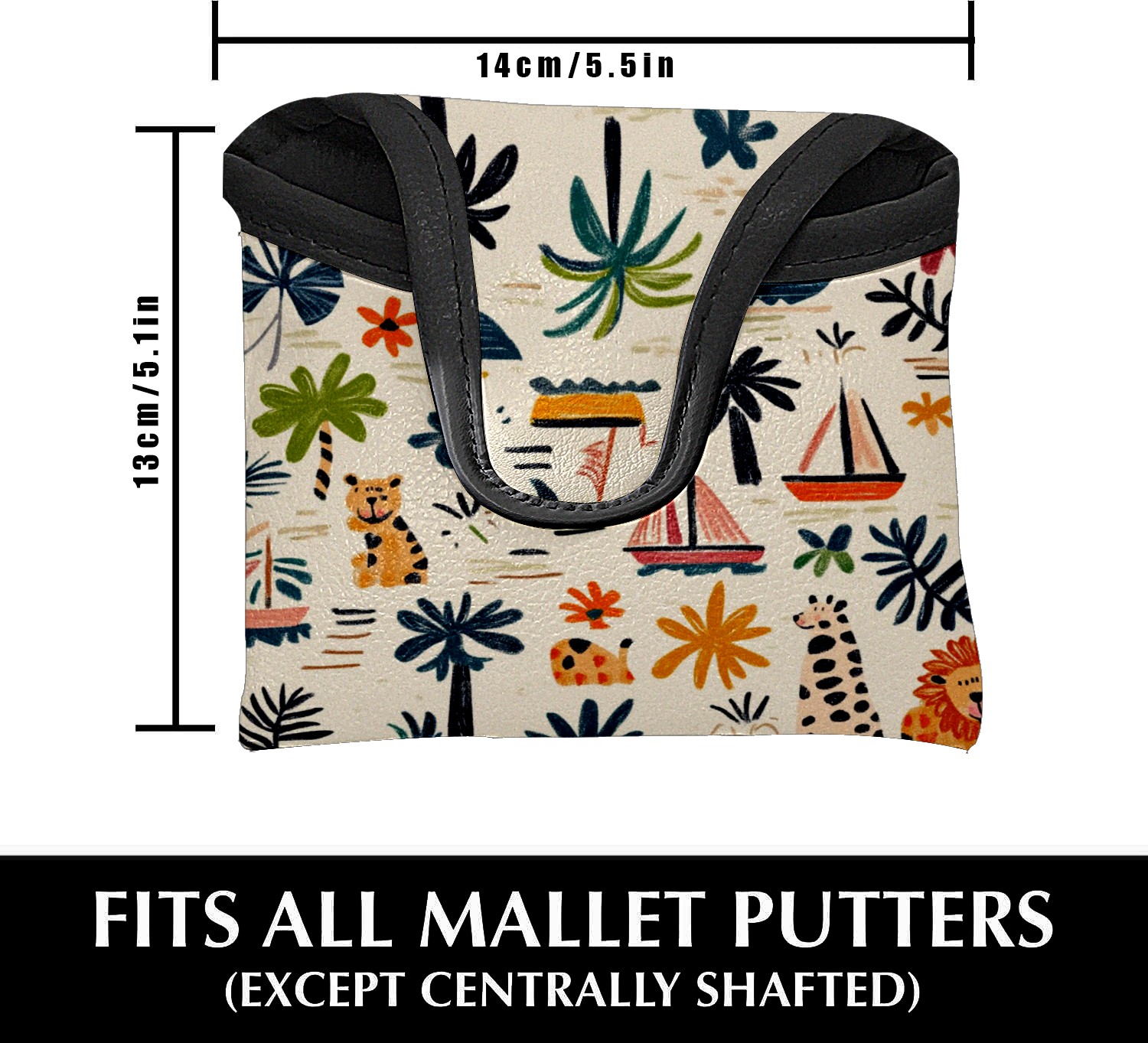 Golf Club Head Covers for Mallet Putter, Waterproof Leather Headcovers for Golf Clubs, Ideal Golf Accessories Gift for Men Women (Palm Trees Boats And Lions)