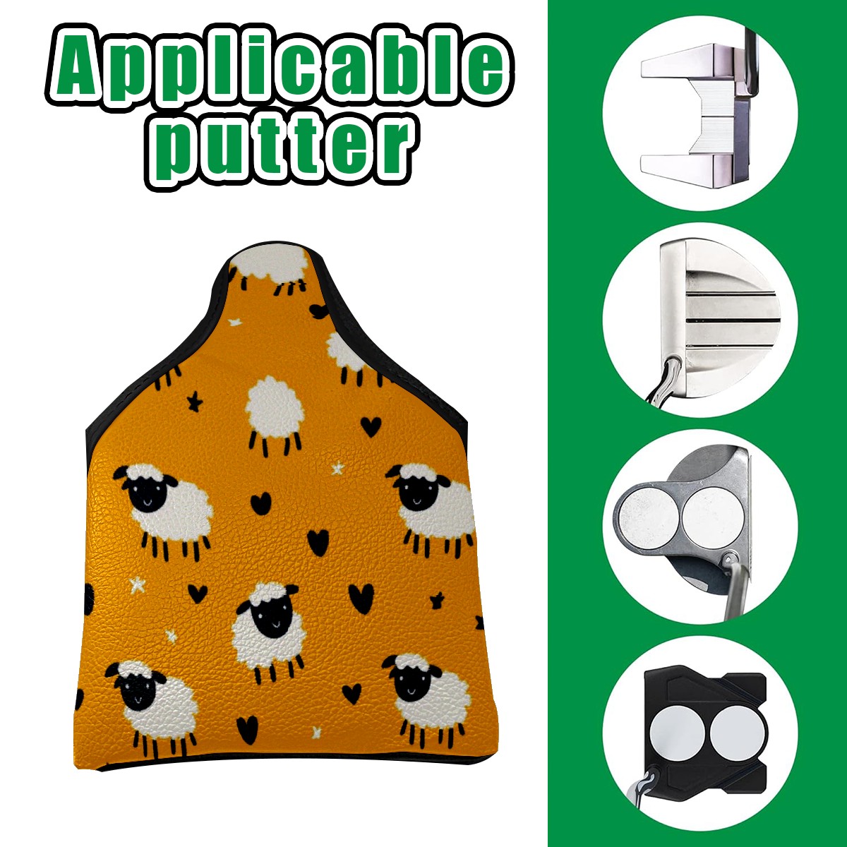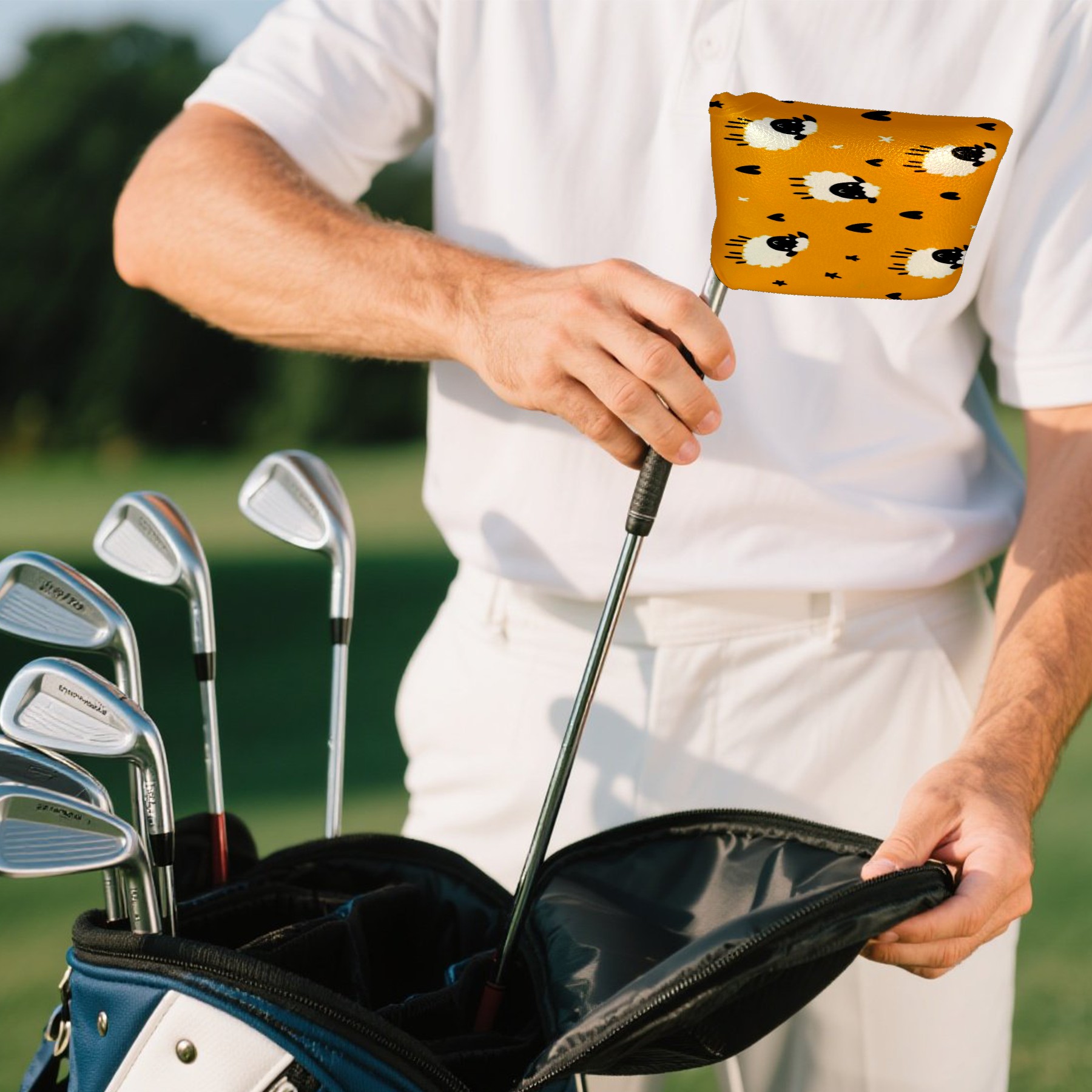 Golf Club Head Covers for Mallet Putter, Waterproof Leather Headcovers for Golf Clubs, Ideal Golf Accessories Gift for Men Women (Yellow Sheep)