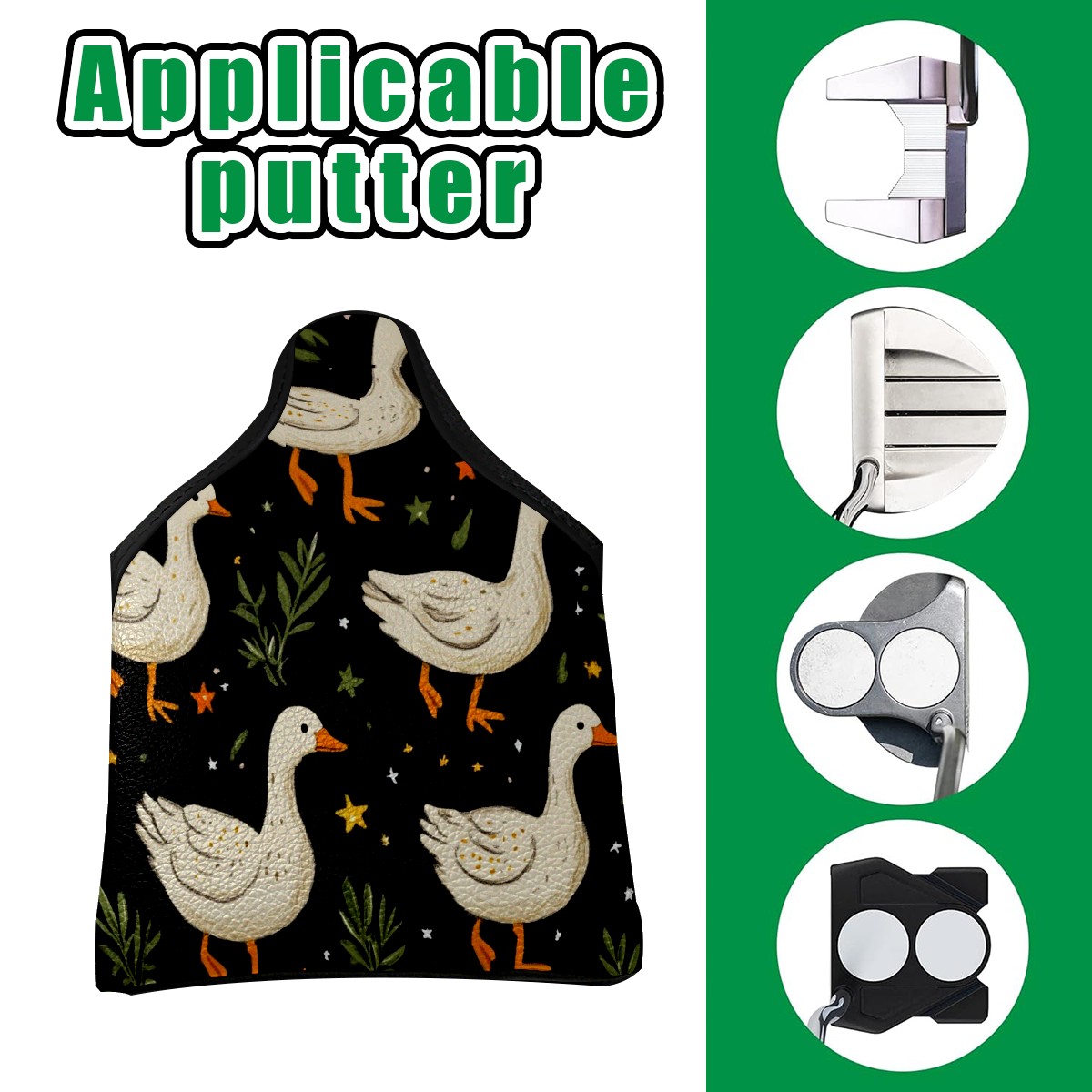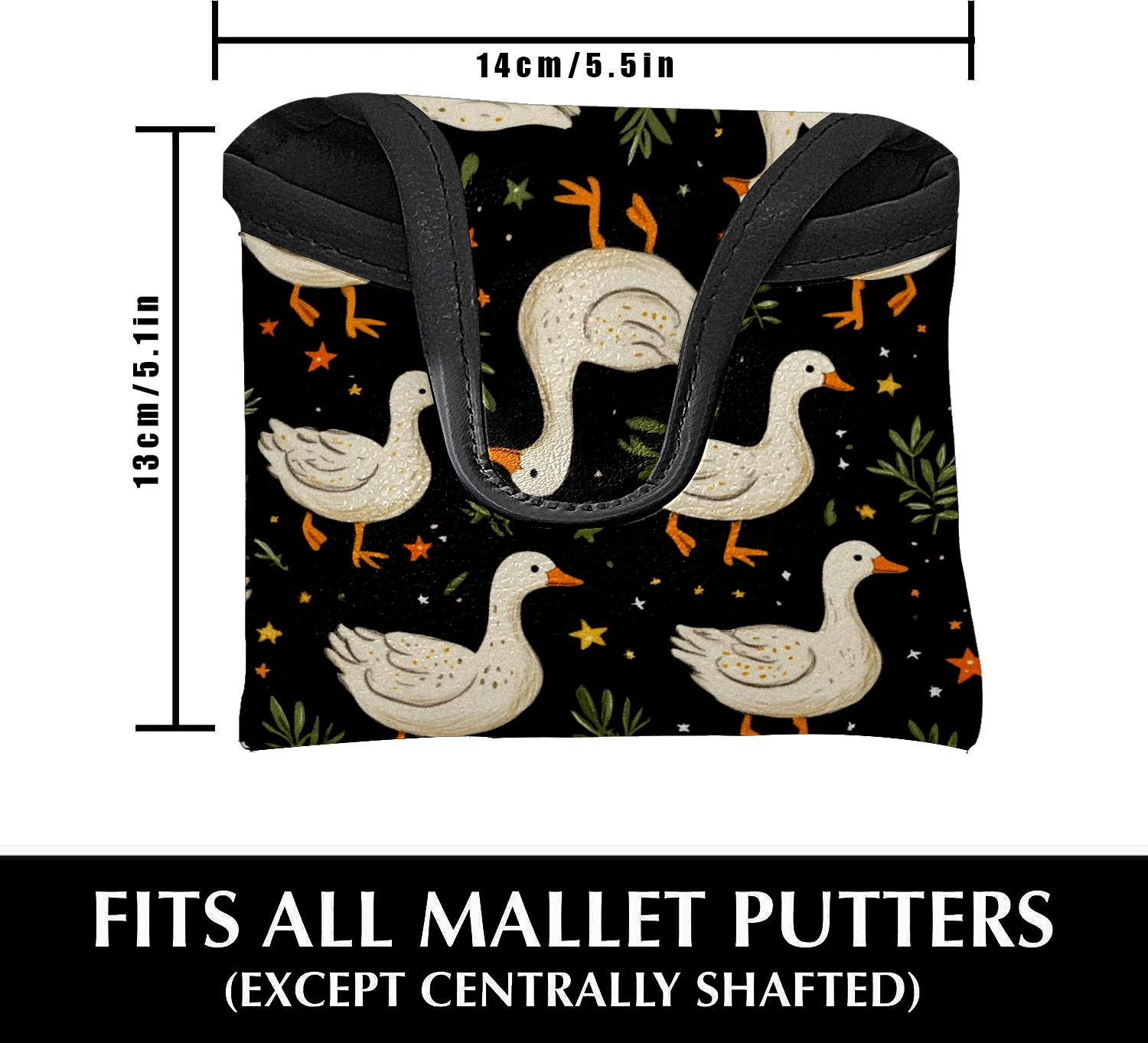 Golf Club Head Covers for Mallet Putter, Waterproof Leather Headcovers for Golf Clubs, Ideal Golf Accessories Gift for Men Women (White Geese Carrots And Stars)