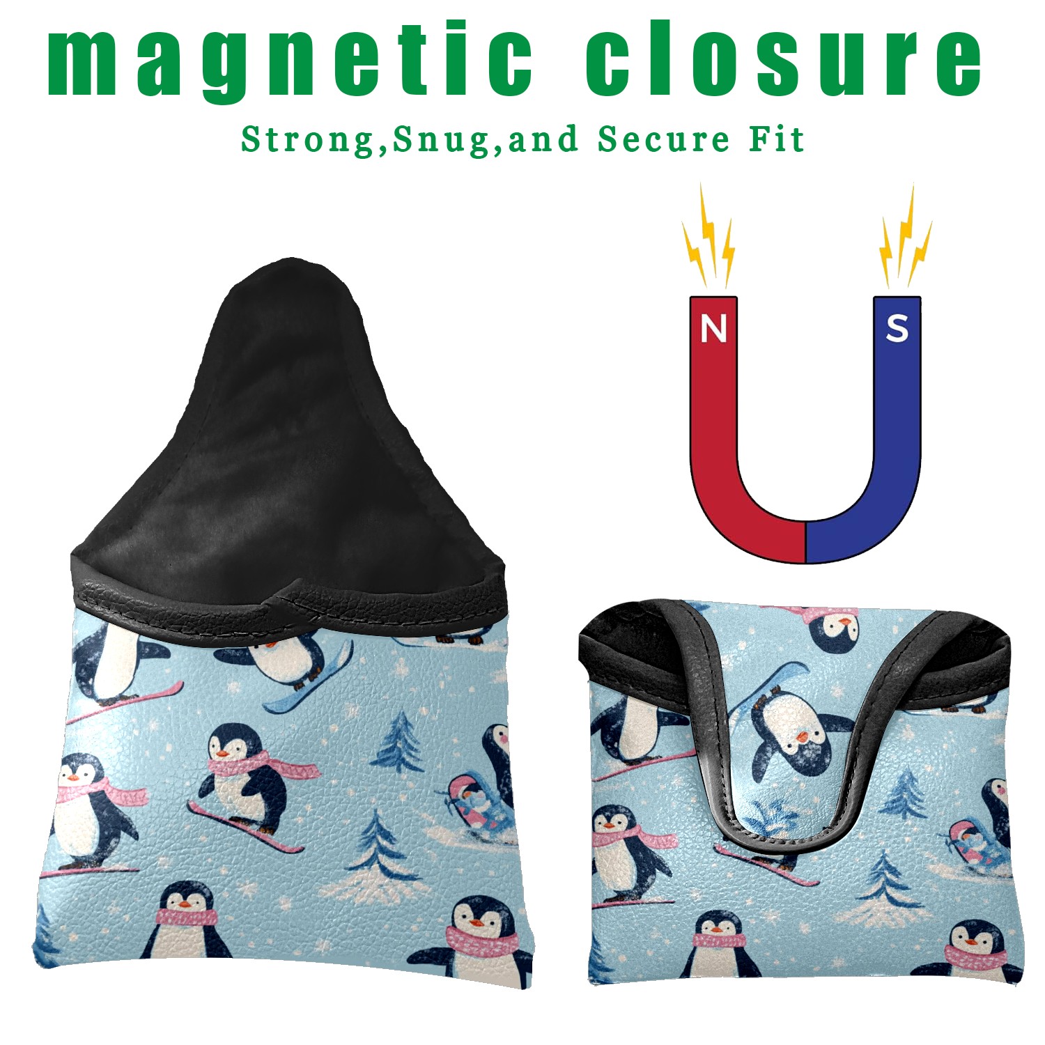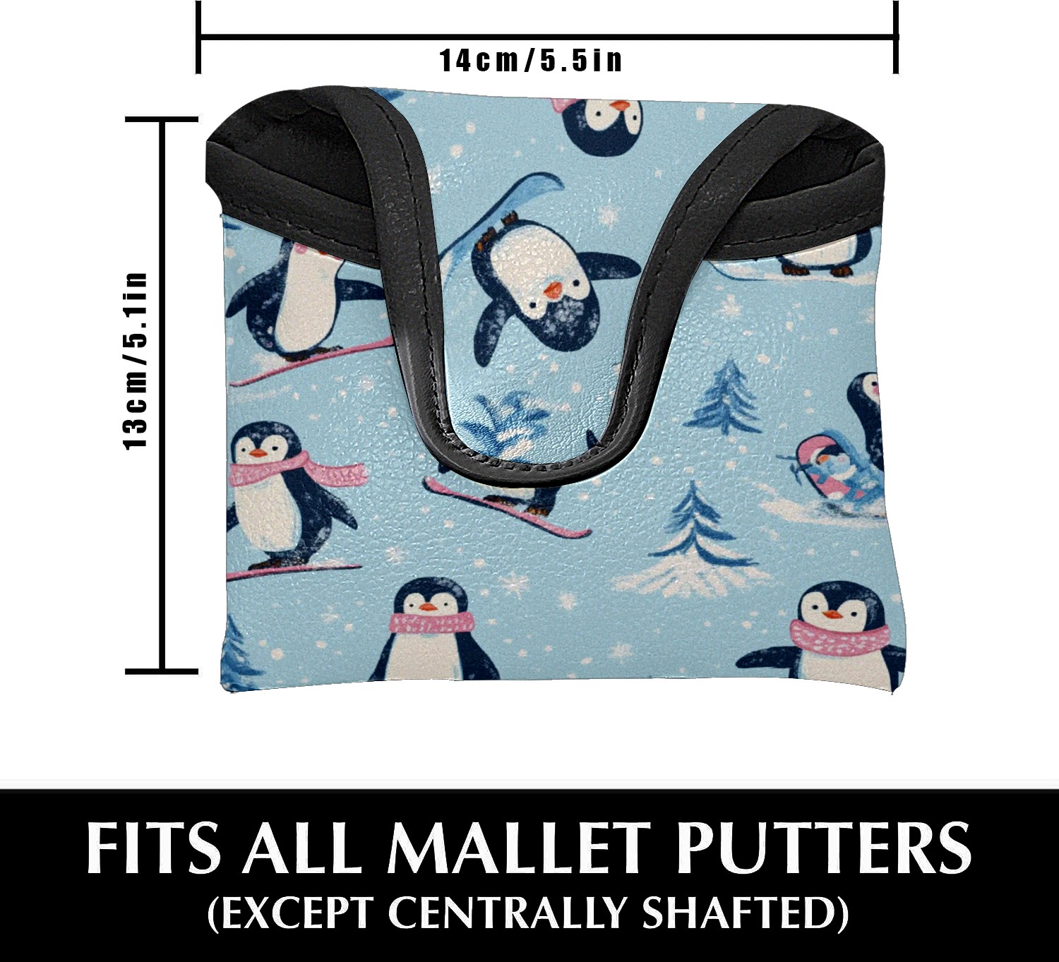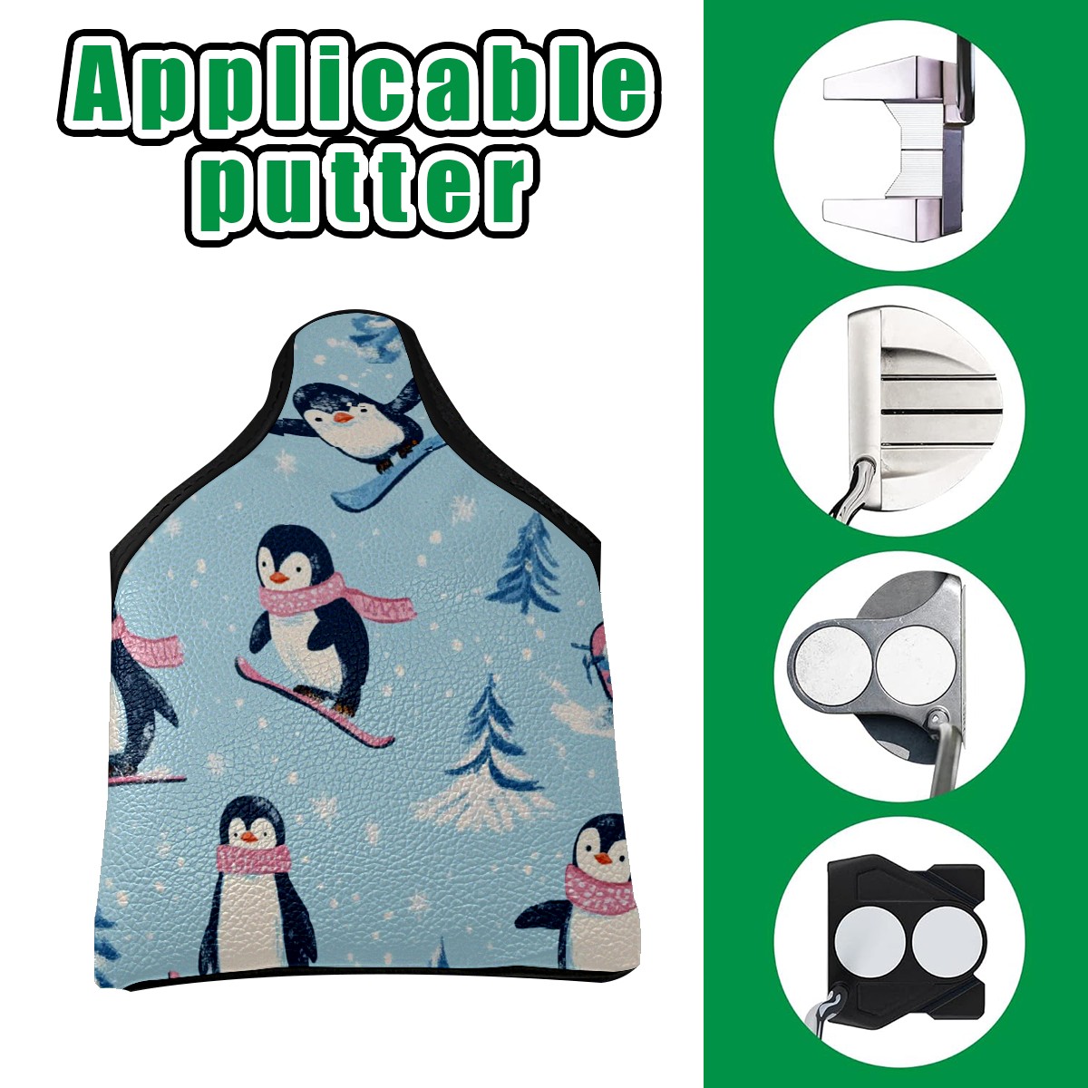 Golf Club Head Covers for Mallet Putter, Waterproof Leather Headcovers for Golf Clubs, Ideal Golf Accessories Gift for Men Women (Playful Penguins)