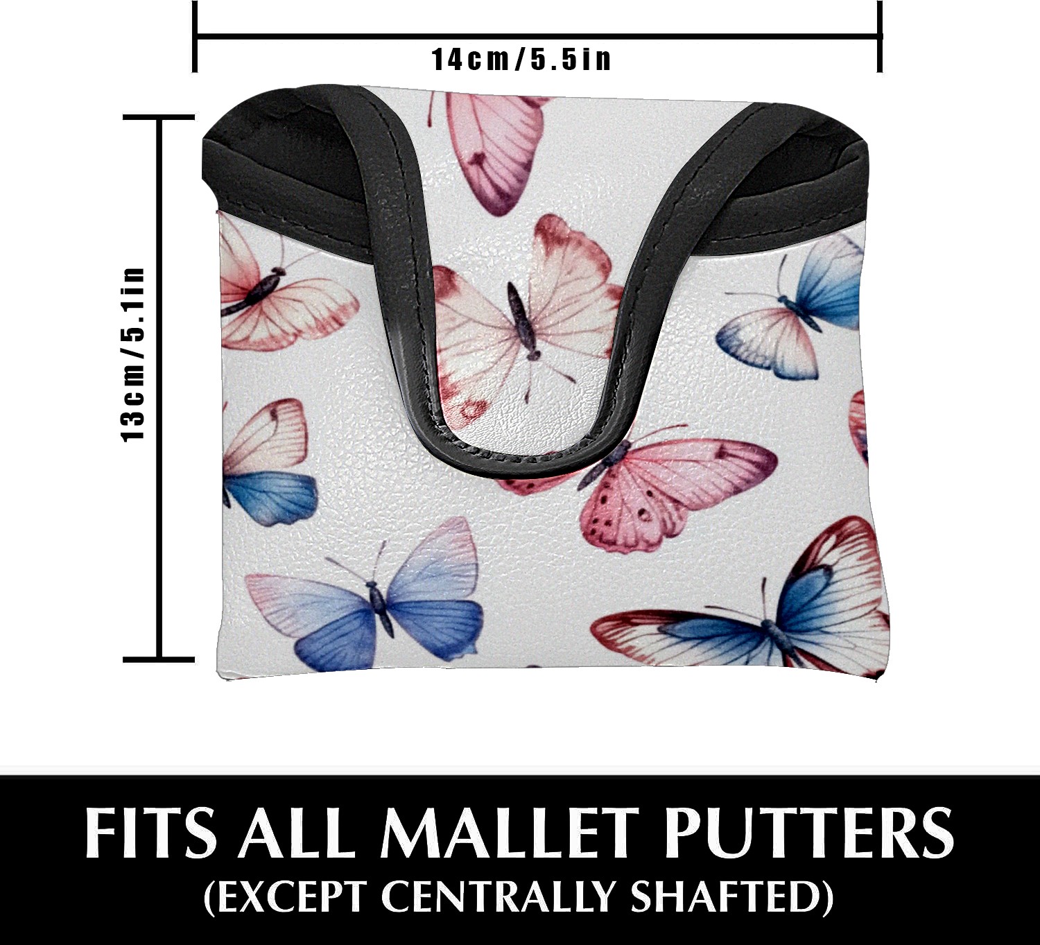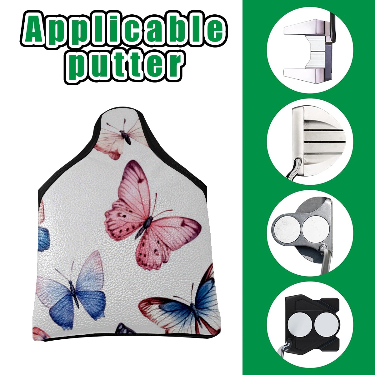Golf Club Head Covers for Mallet Putter, Waterproof Leather Headcovers for Golf Clubs, Ideal Golf Accessories Gift for Men Women (Pink Blue And White Butterflies)