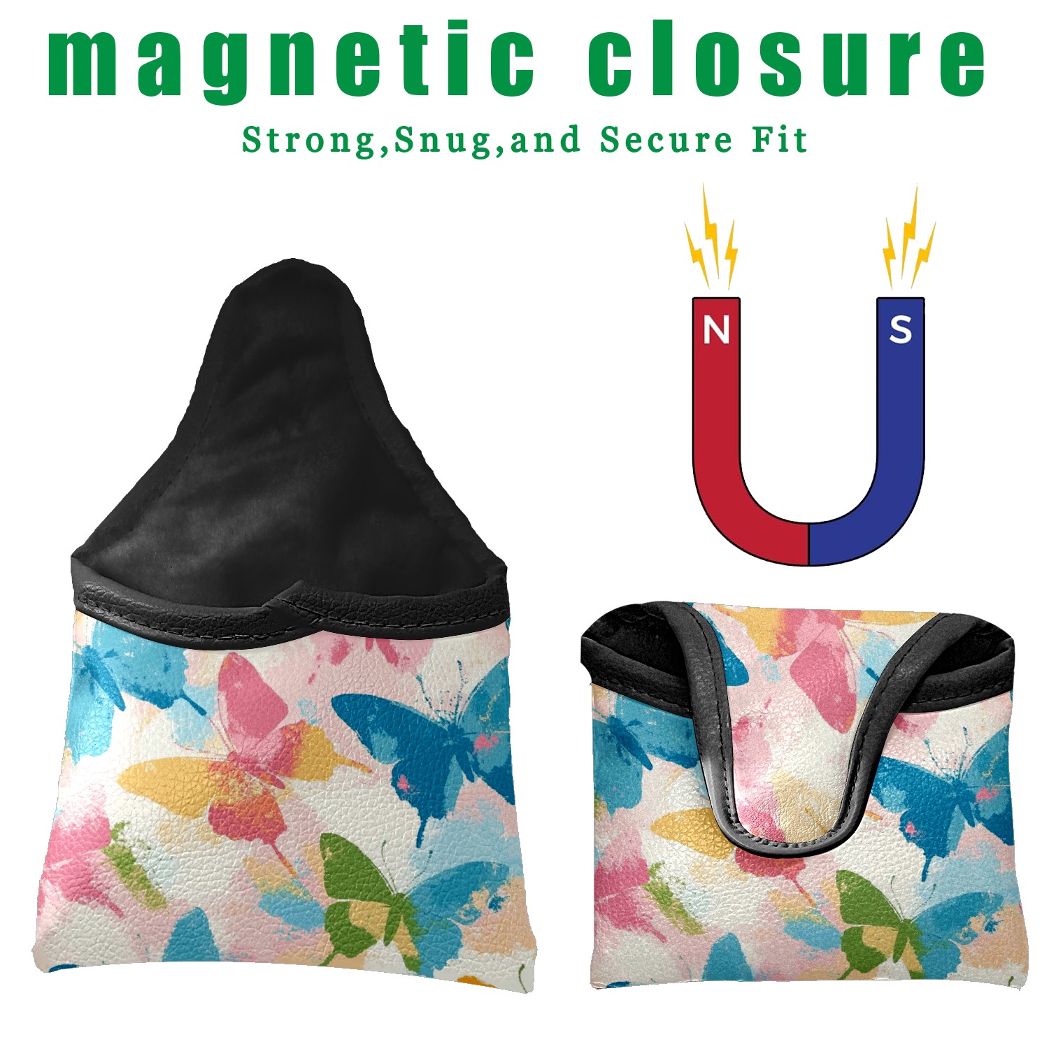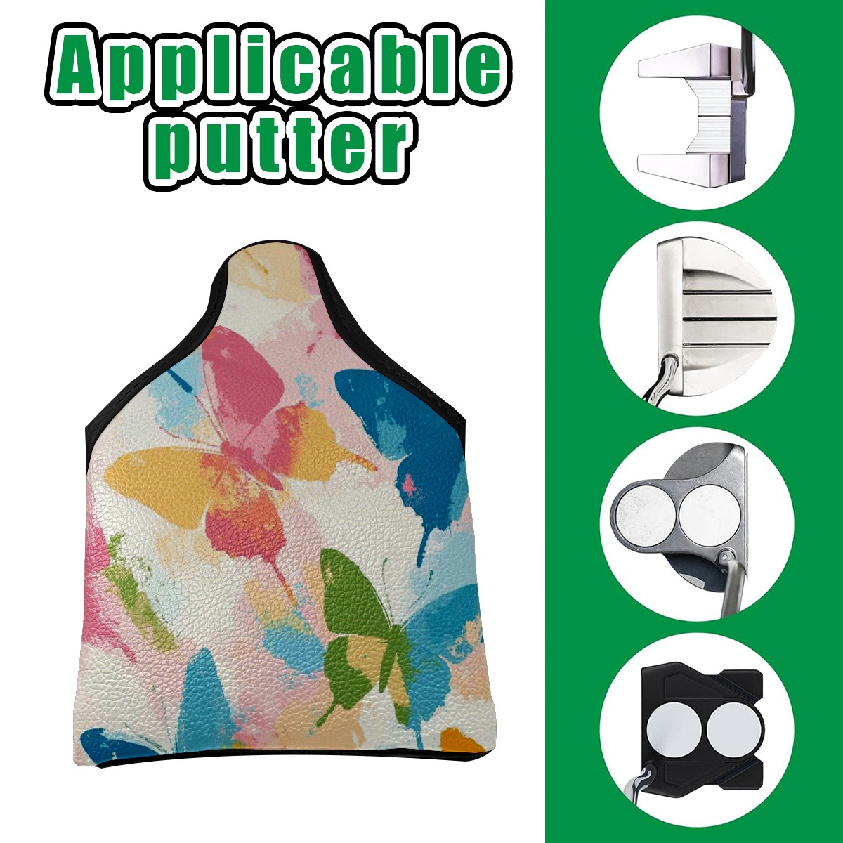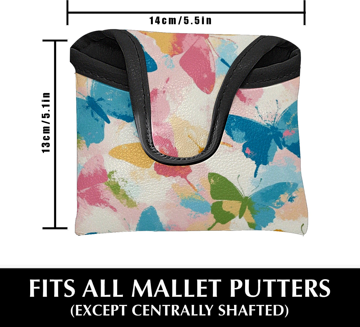 Golf Club Head Covers for Mallet Putter, Waterproof Leather Headcovers for Golf Clubs, Ideal Golf Accessories Gift for Men Women (Butterflies In Pastel Colors)