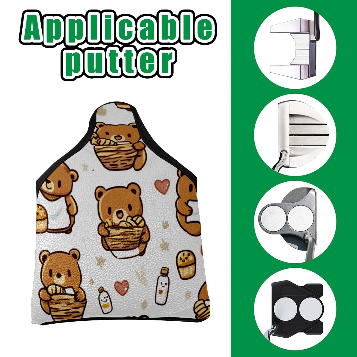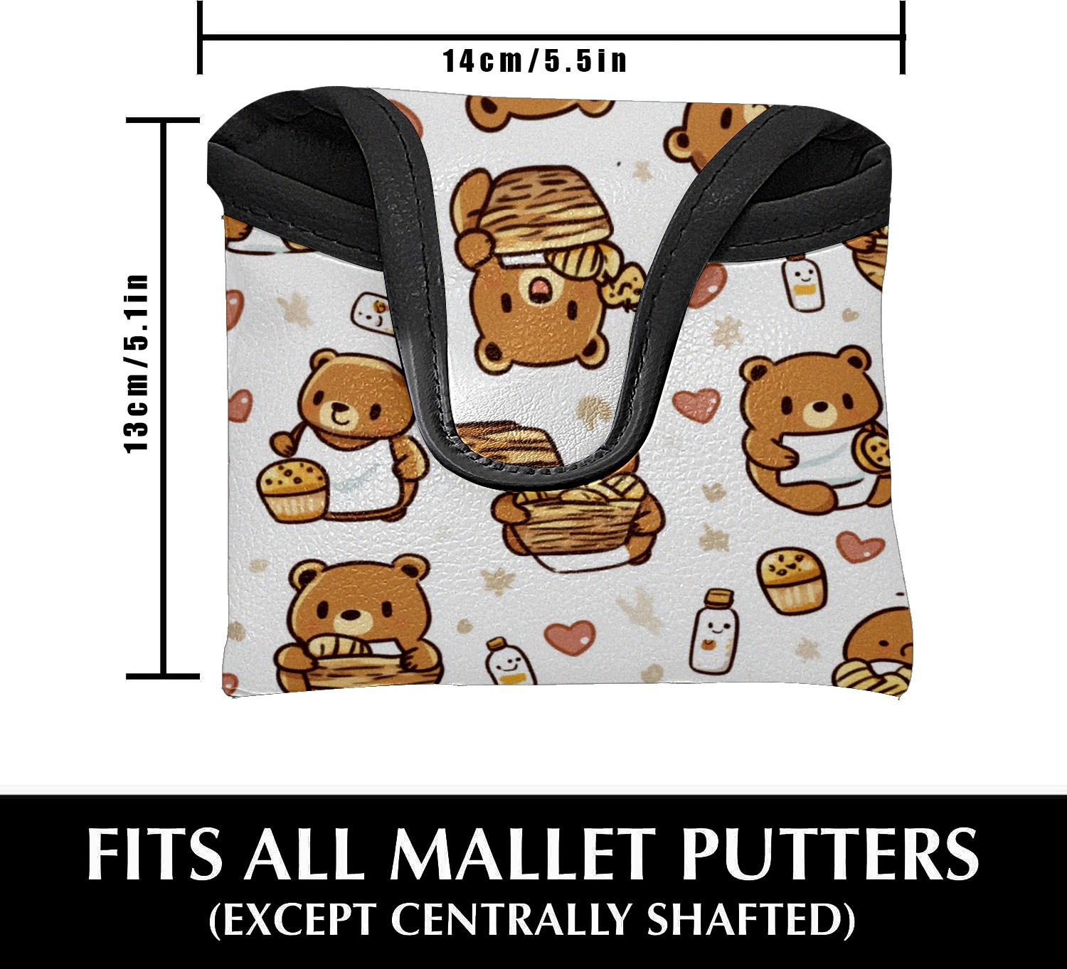 Golf Club Head Covers for Mallet Putter, Waterproof Leather Headcovers for Golf Clubs, Ideal Golf Accessories Gift for Men Women (Bear And Honey Pot)