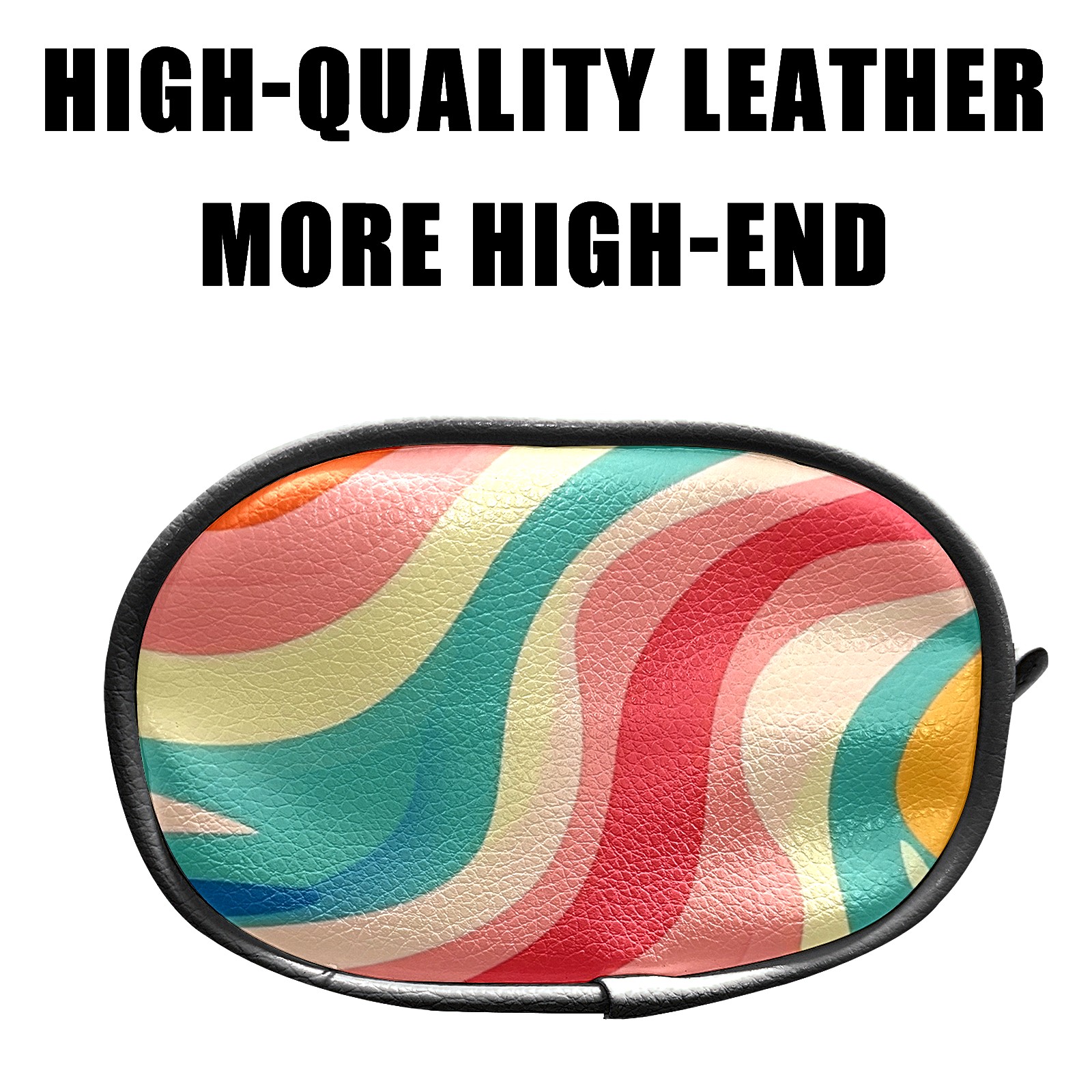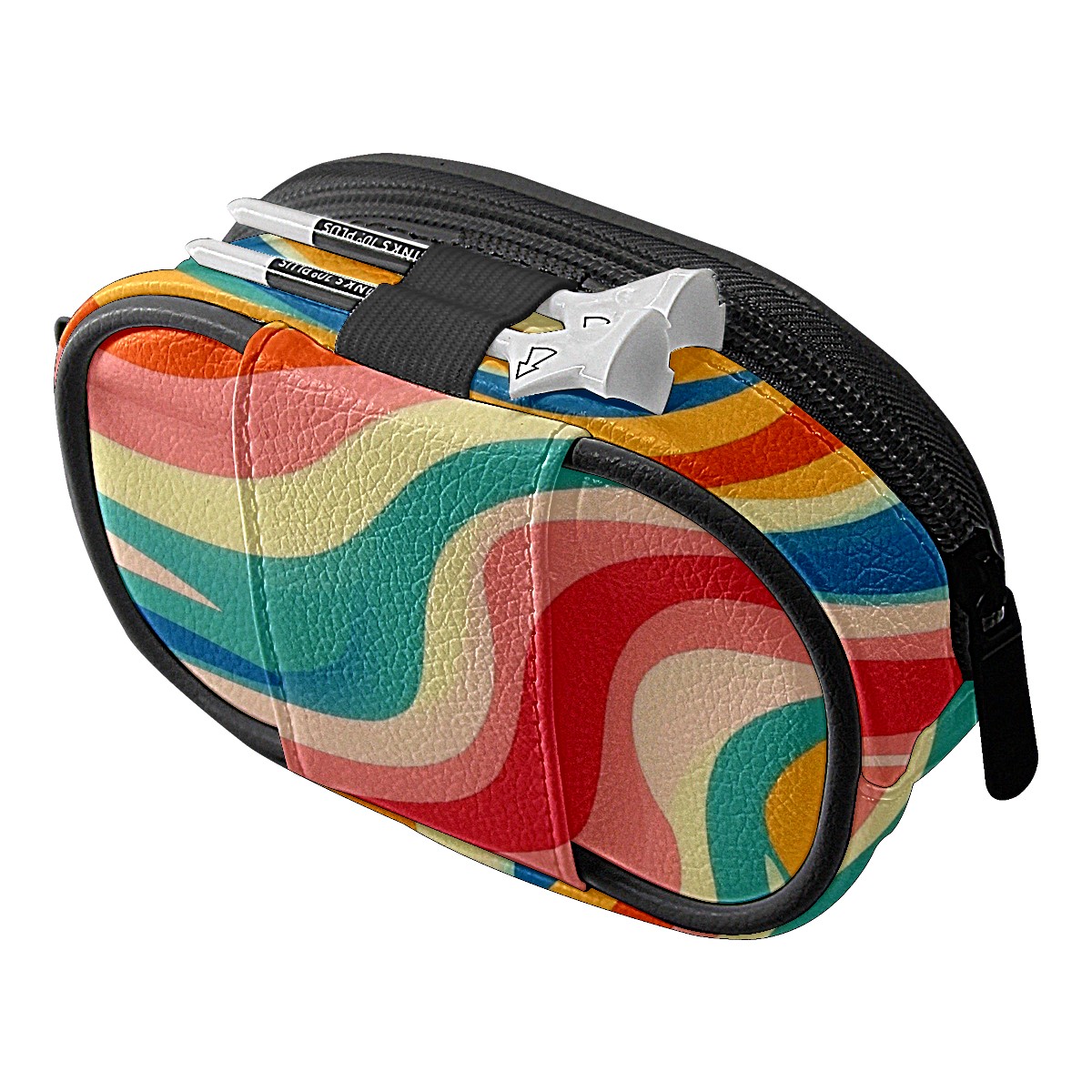 Golf Ball Waist Bag PU Leather Golf Ball Pouch with Belt Clip, Portable Golf Tee Holder & Golf Accessories for Men Women, Golfing Fanny Pack for Balls Tees Valuables (Colorful Wavy Patterns)