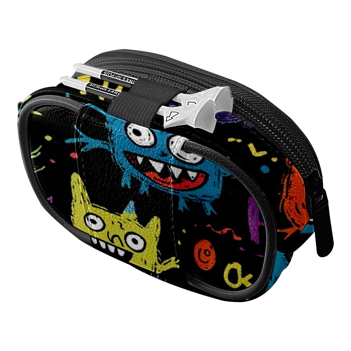 Golf Ball Waist Bag PU Leather Golf Ball Pouch with Belt Clip, Portable Golf Tee Holder & Golf Accessories for Men Women, Golfing Fanny Pack for Balls Tees Valuables (Cute Cartoon Monsters)