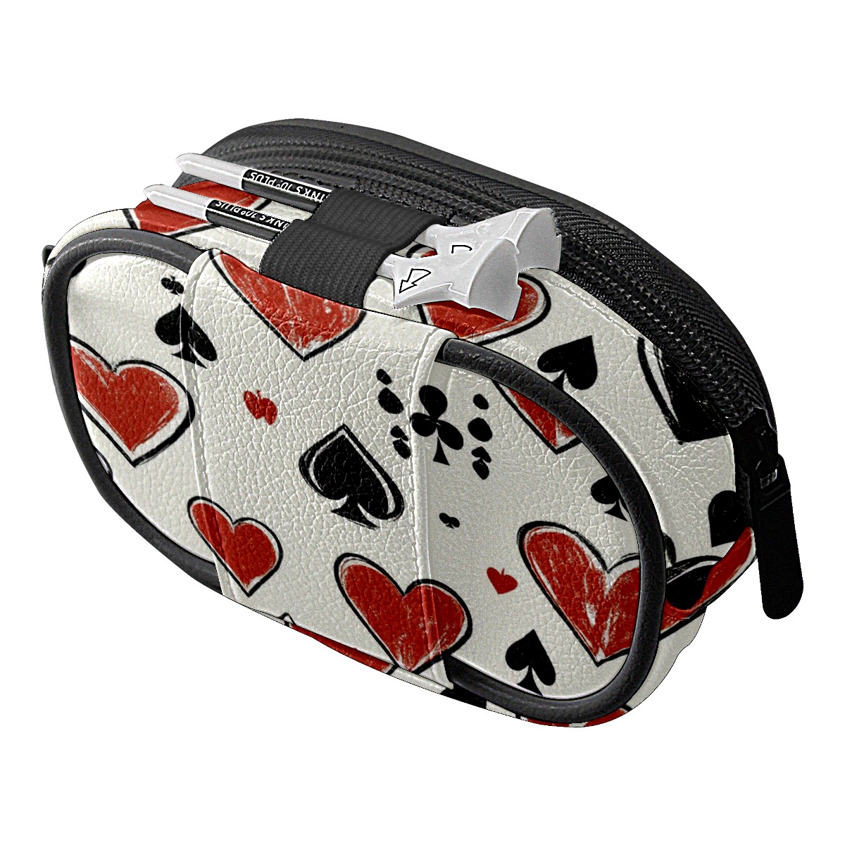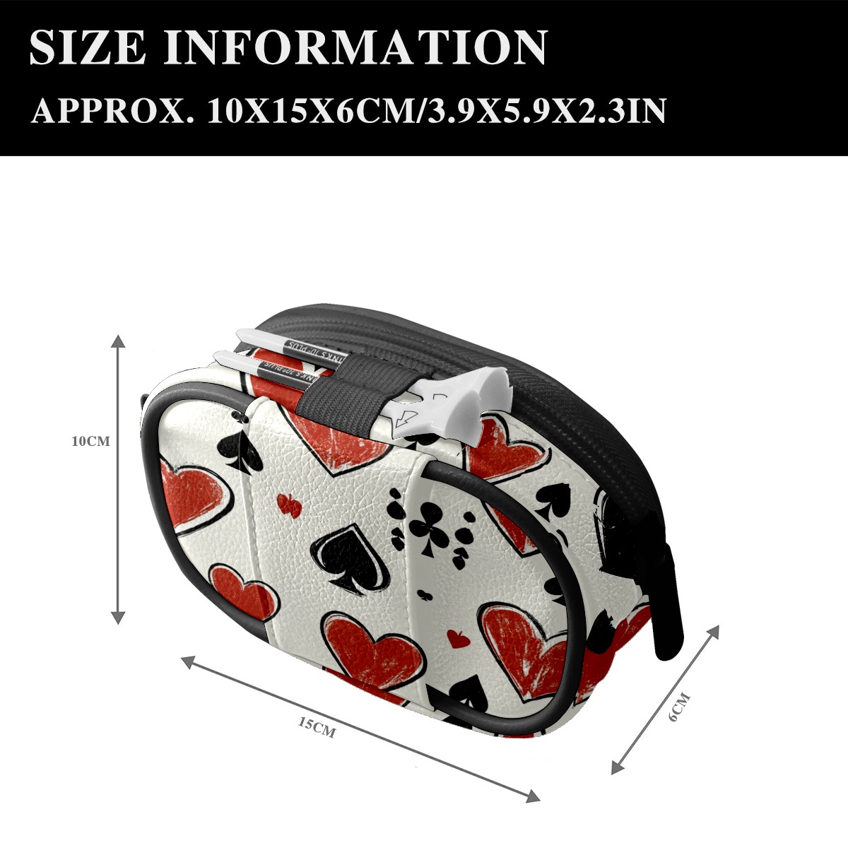 Golf Ball Waist Bag PU Leather Golf Ball Pouch with Belt Clip, Portable Golf Tee Holder & Golf Accessories for Men Women, Golfing Fanny Pack for Balls Tees Valuables (Hand-drawn Playing Cards)