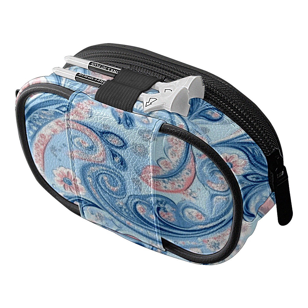 Golf Ball Waist Bag PU Leather Golf Ball Pouch with Belt Clip, Portable Golf Tee Holder & Golf Accessories for Men Women, Golfing Fanny Pack for Balls Tees Valuables (Pastel Blue Paisley)