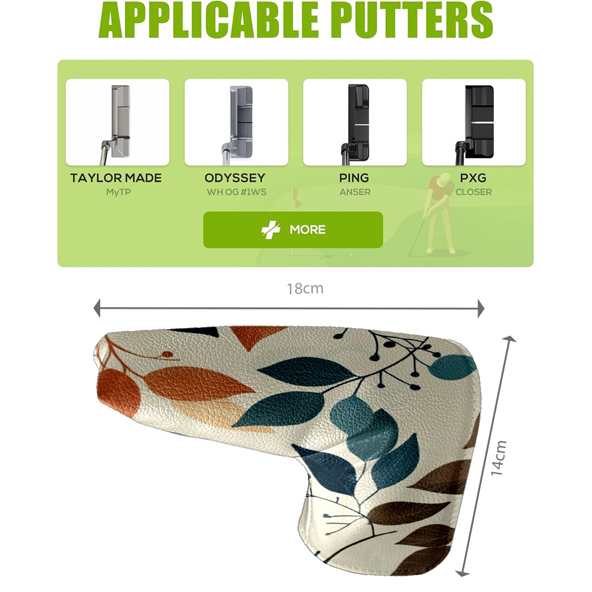 Golf Club Head Cover Golf Driver PU Fairway Wood Putter Head cover driver head cover Dad Gifts for Women Leaves