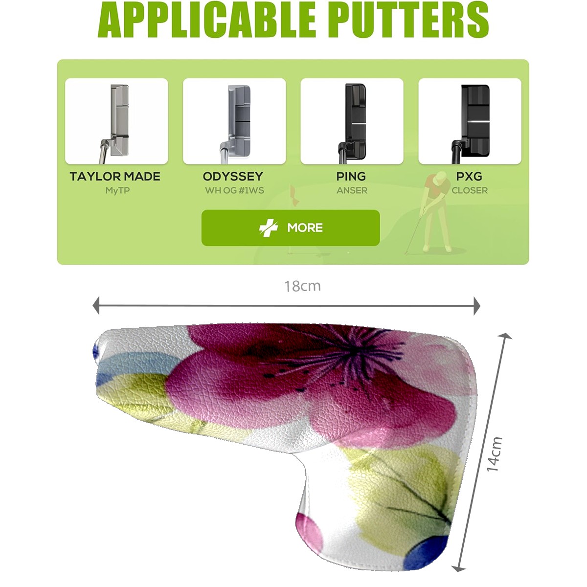 Golf Club Head Cover Golf Driver PU Fairway Wood Putter Head cover driver head cover Dad Gifts for Women Blue Flower