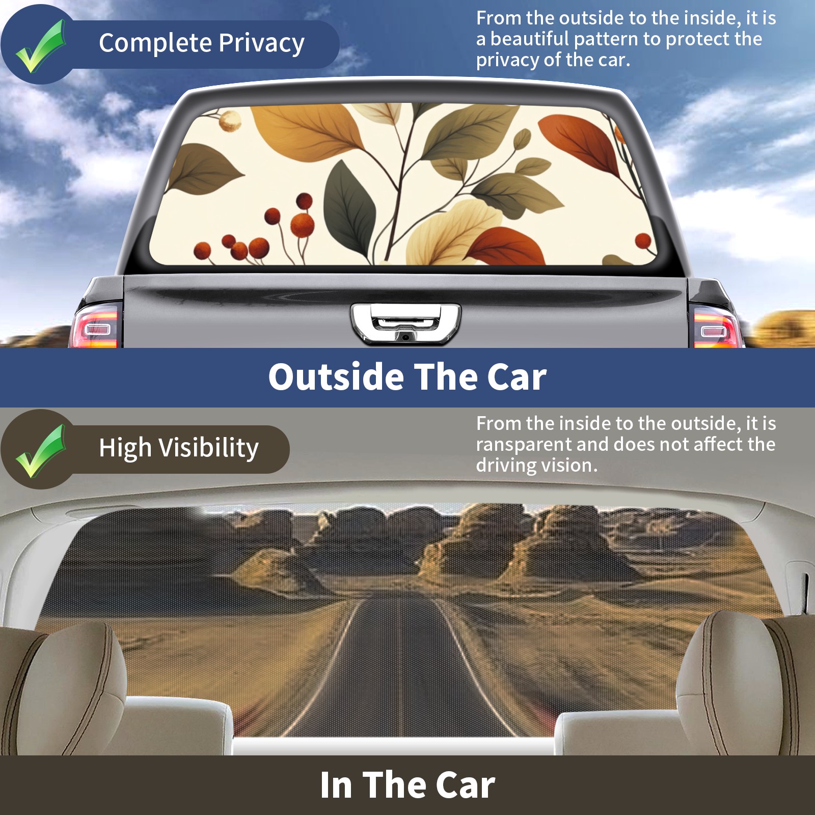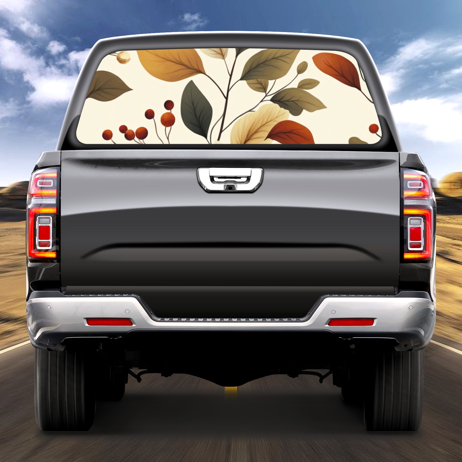 Bjkj_Seamless_pattern_with_leaves_and_plants_in_beige_brown_an_f9cd0d57-6108-46b2-9ab9-bdd3a662f4d2-1749620938068 Rear Window Decals for Trucks- Pickup Car Window Stickers Decal- Truck Back Window Tint Decal Graphic Perforated Vinyl Truck Stickers 66" X 22"