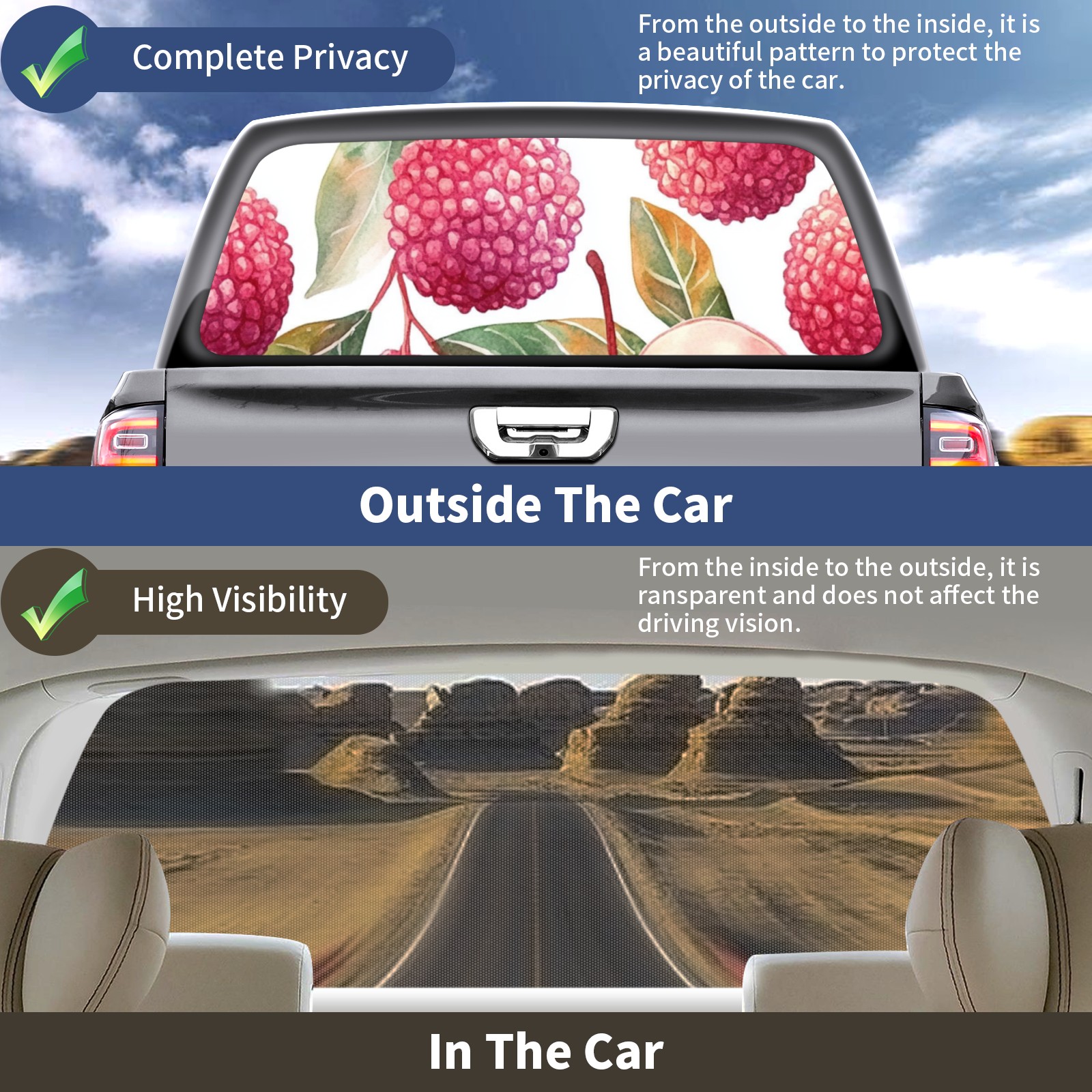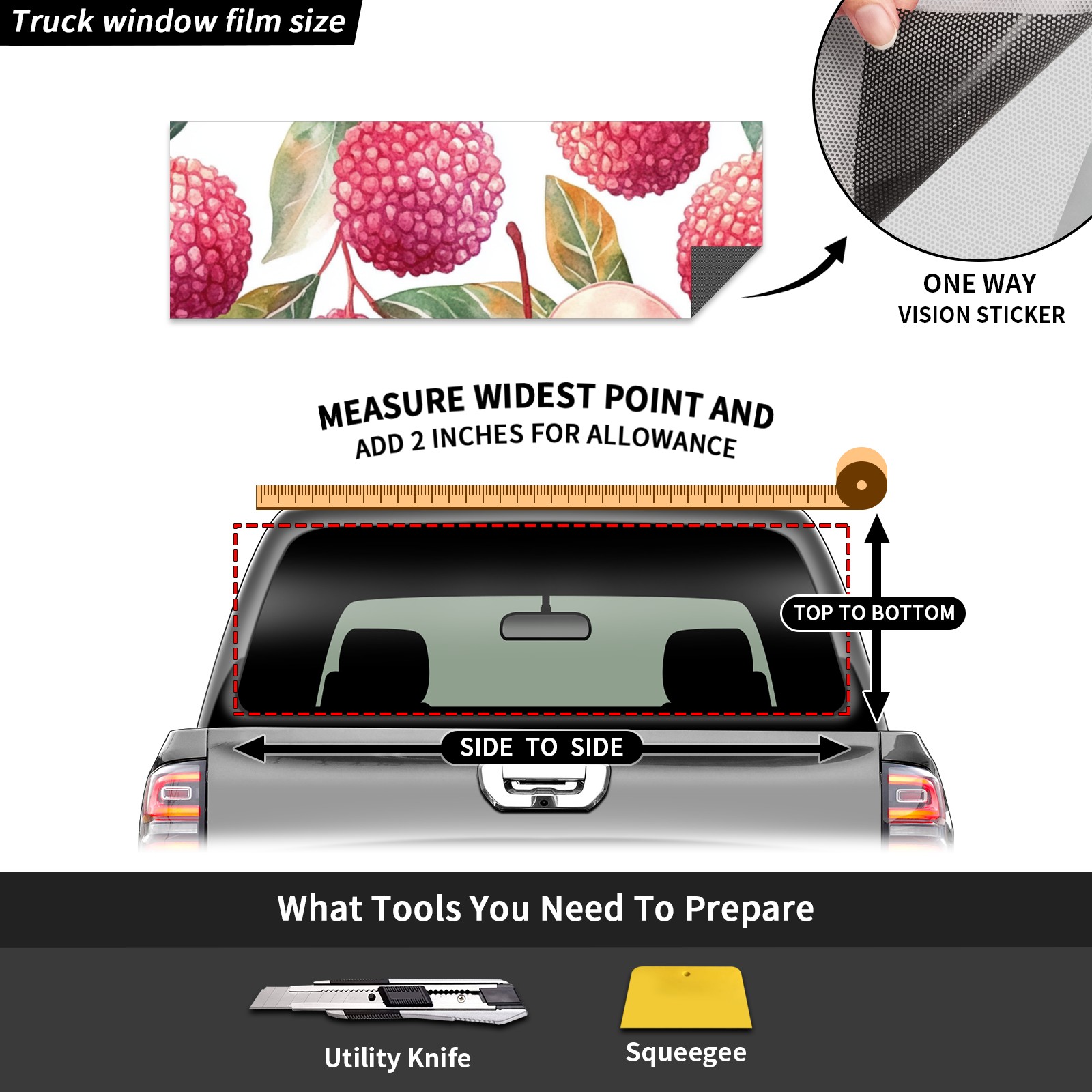 Lychee Rear Window Decals for Trucks- Pickup Car Window Stickers Decal- Truck Back Window Tint Decal Graphic Perforated Vinyl Truck Stickers 66" X 22"
