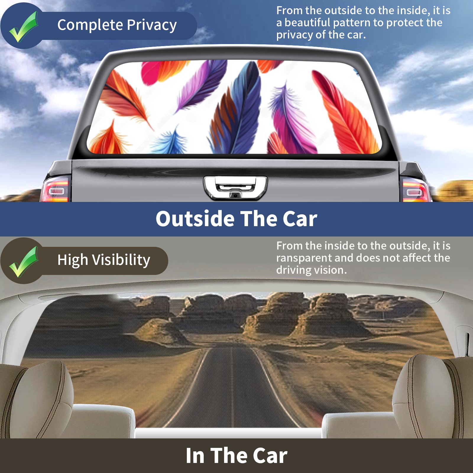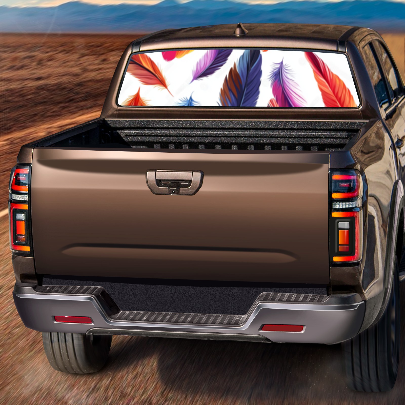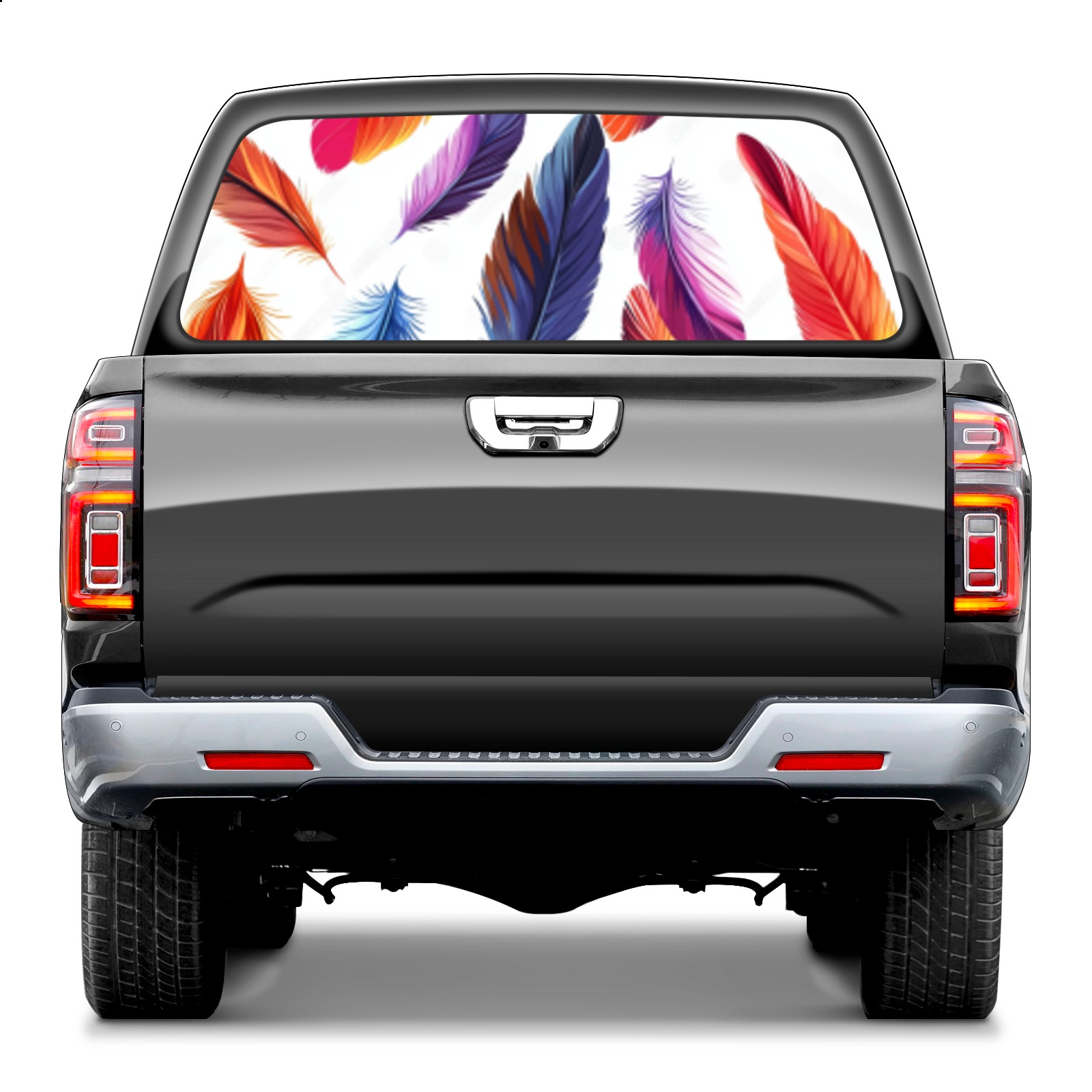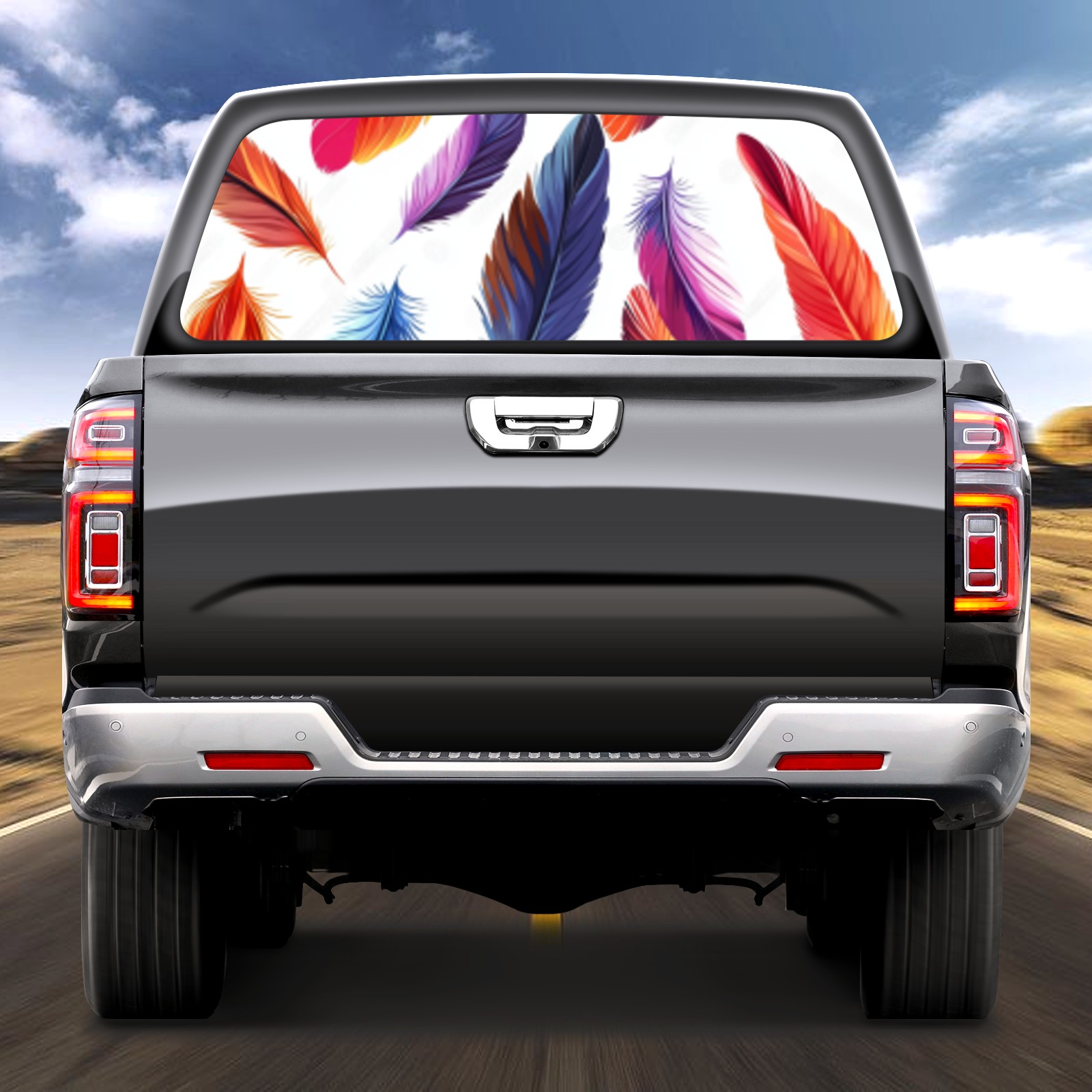 Bjkj_seamless_pattern_of_colorful_feathers_each_with_its_own_u_e65a314a-60cc-4388-bc15-234b3fd58be7-1749620937979 Rear Window Decals for Trucks- Pickup Car Window Stickers Decal- Truck Back Window Tint Decal Graphic Perforated Vinyl Truck Stickers 66" X 22"