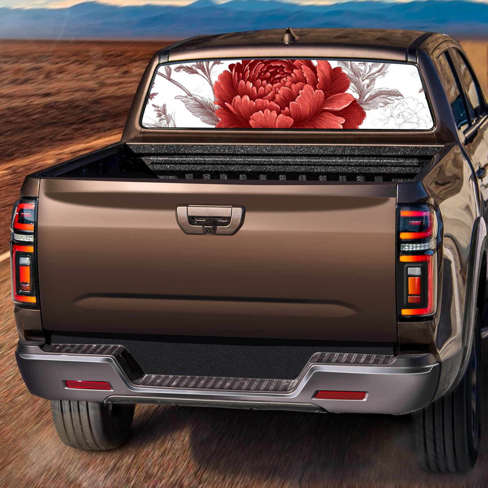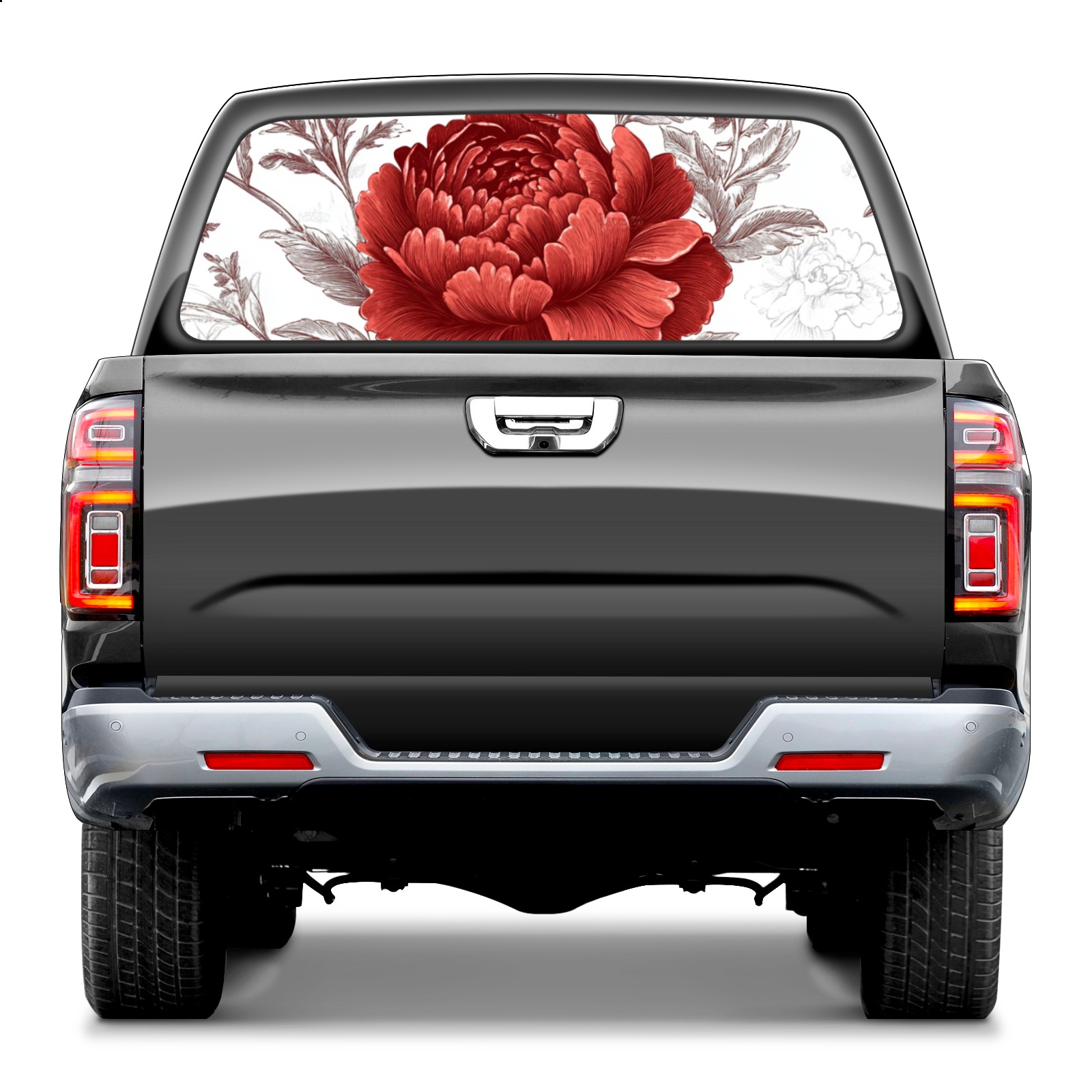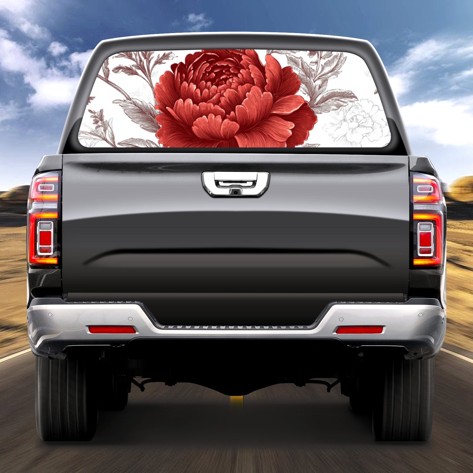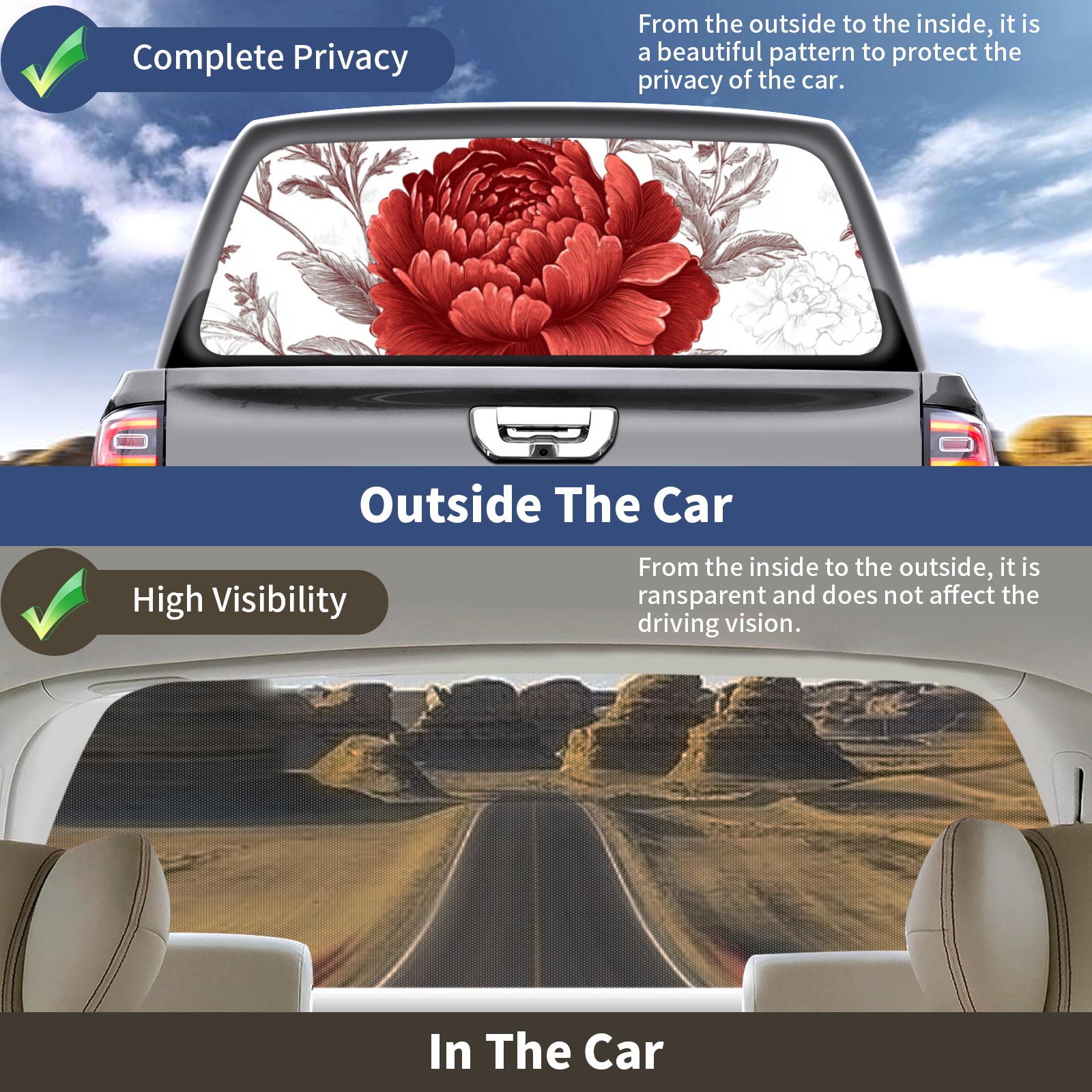 Red Flower Rear Window Decals for Trucks- Pickup Car Window Stickers Decal- Truck Back Window Tint Decal Graphic Perforated Vinyl Truck Stickers 66" X 22"