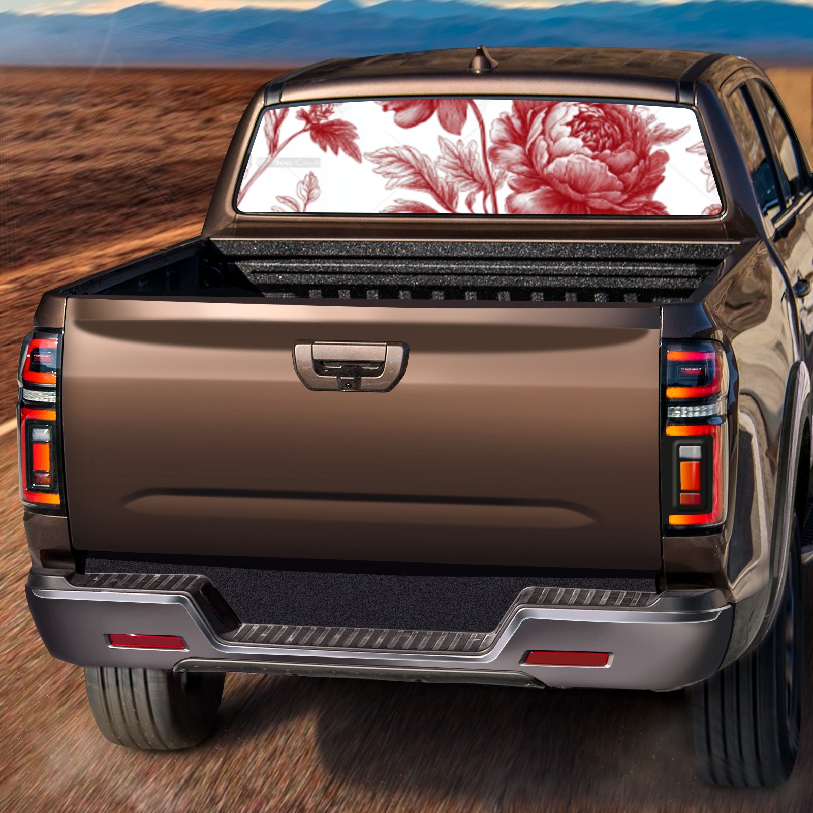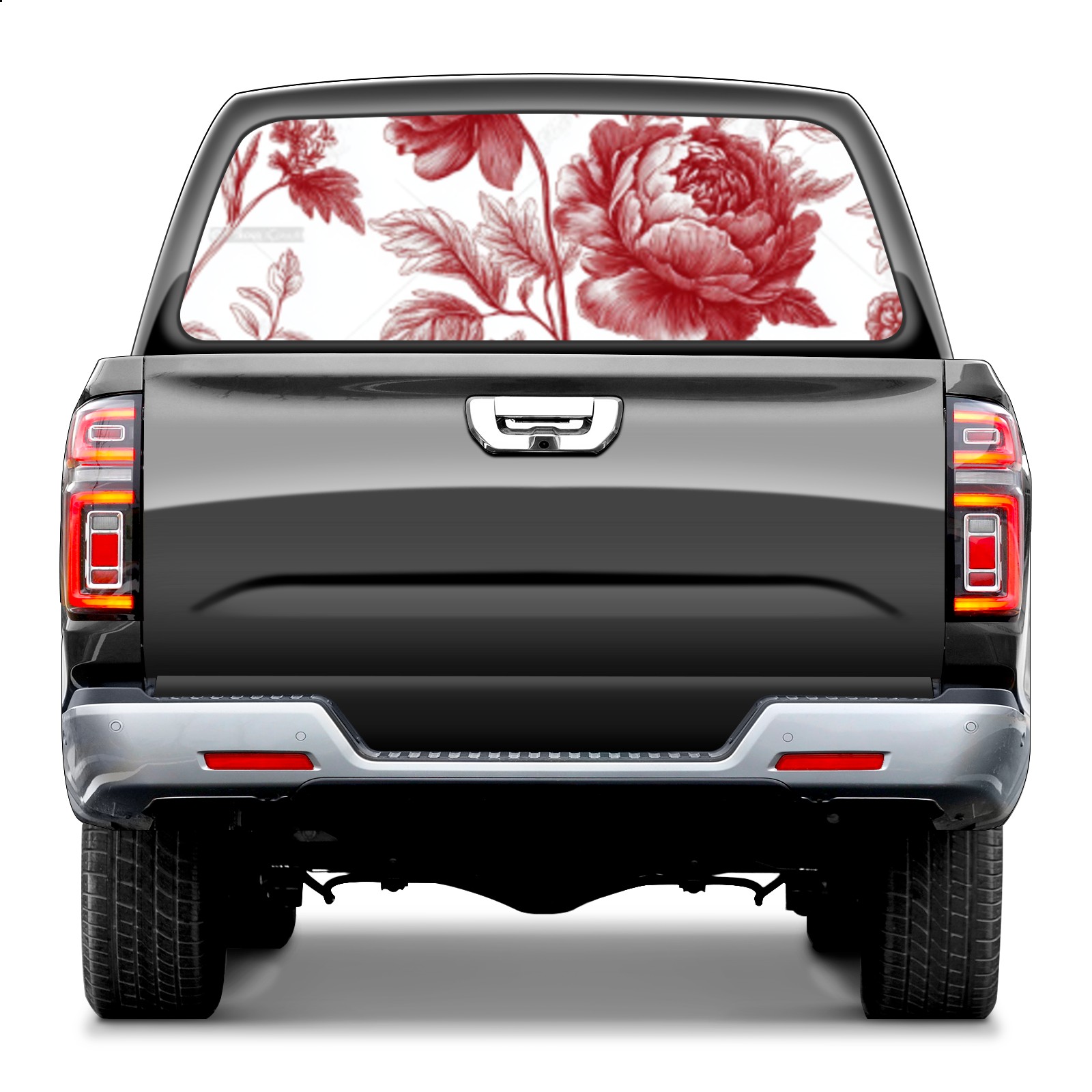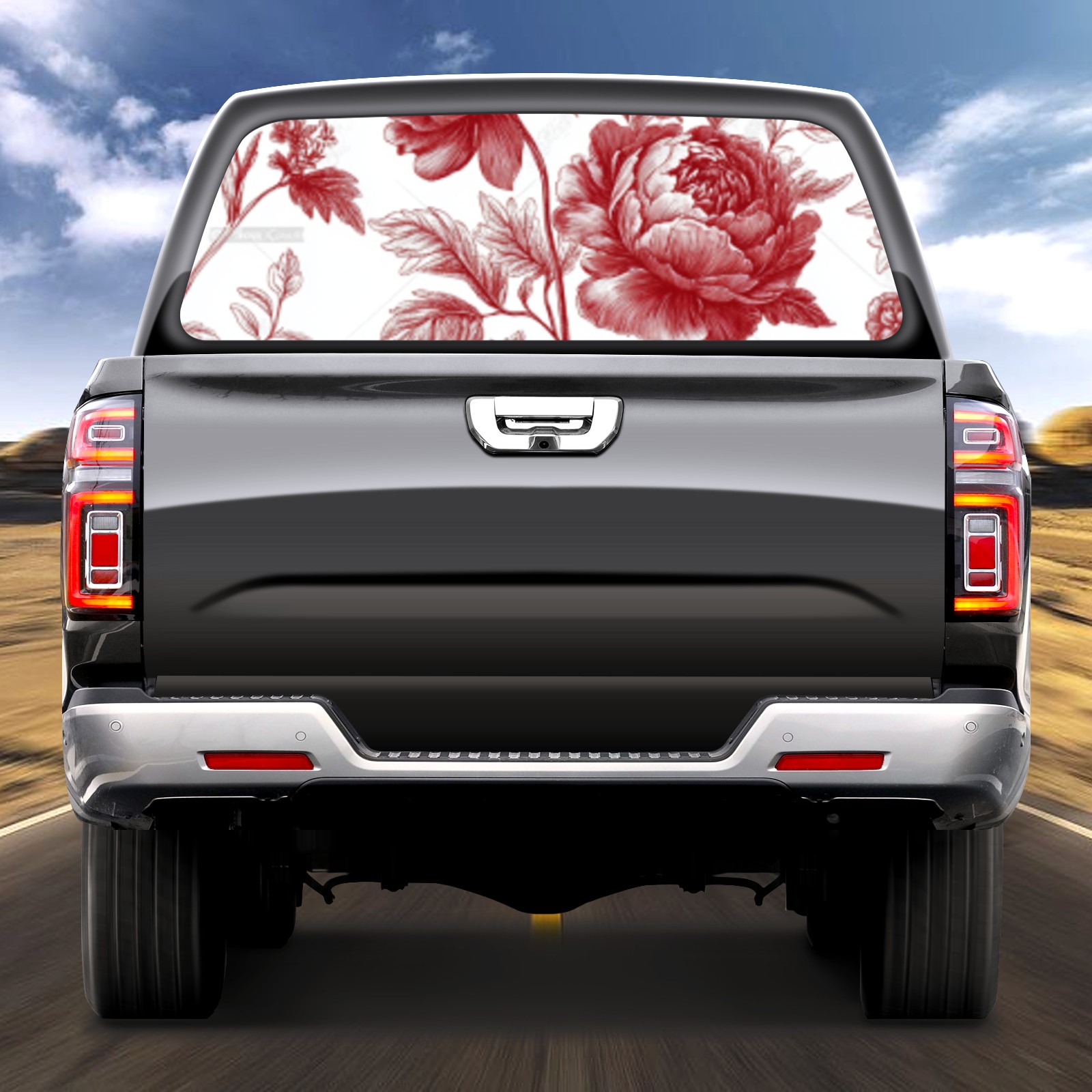 Red Flowe2 Rear Window Decals for Trucks- Pickup Car Window Stickers Decal- Truck Back Window Tint Decal Graphic Perforated Vinyl Truck Stickers 66" X 22"