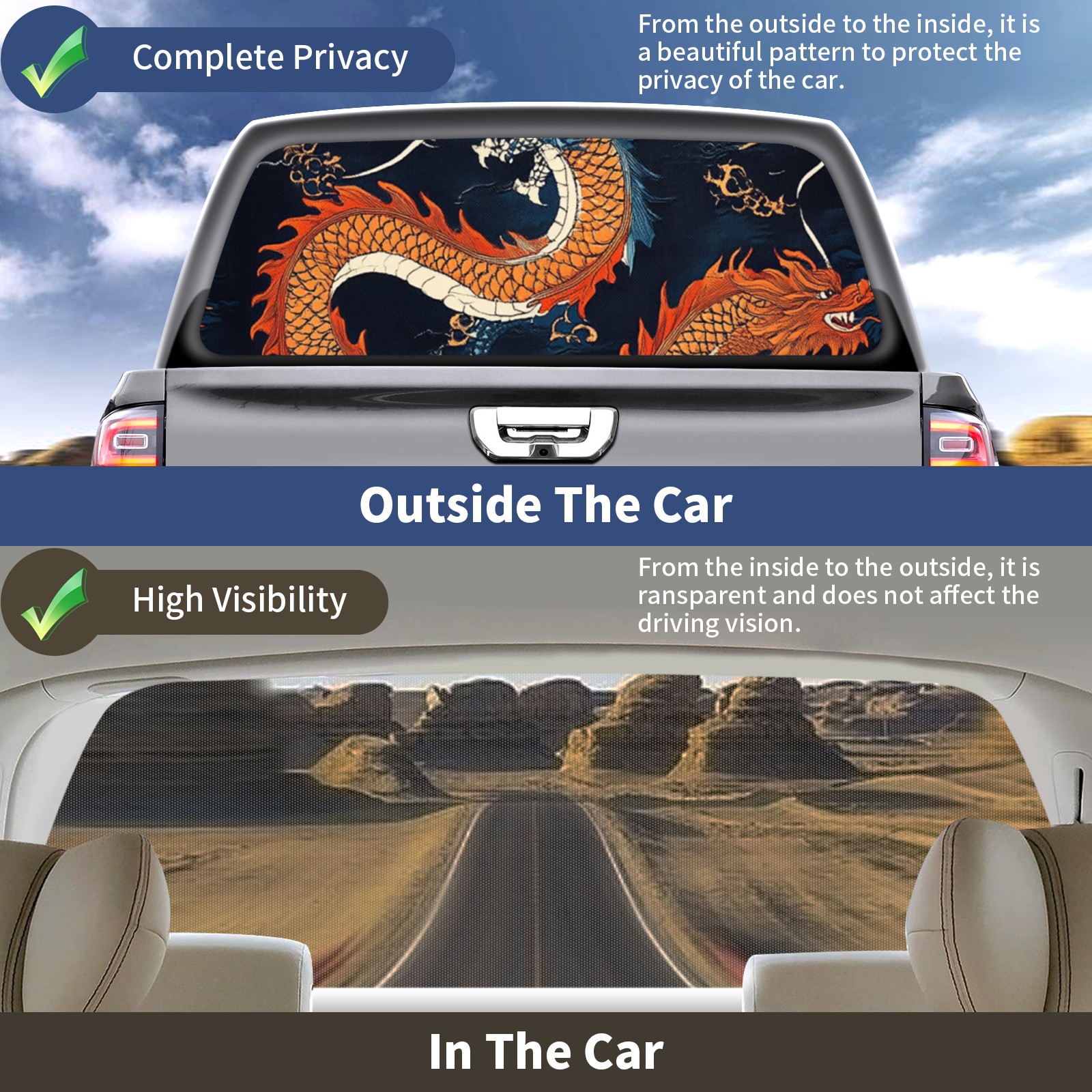 Dragons Rear Window Decals for Trucks- Pickup Car Window Stickers Decal- Truck Back Window Tint Decal Graphic Perforated Vinyl Truck Stickers 66" X 22"