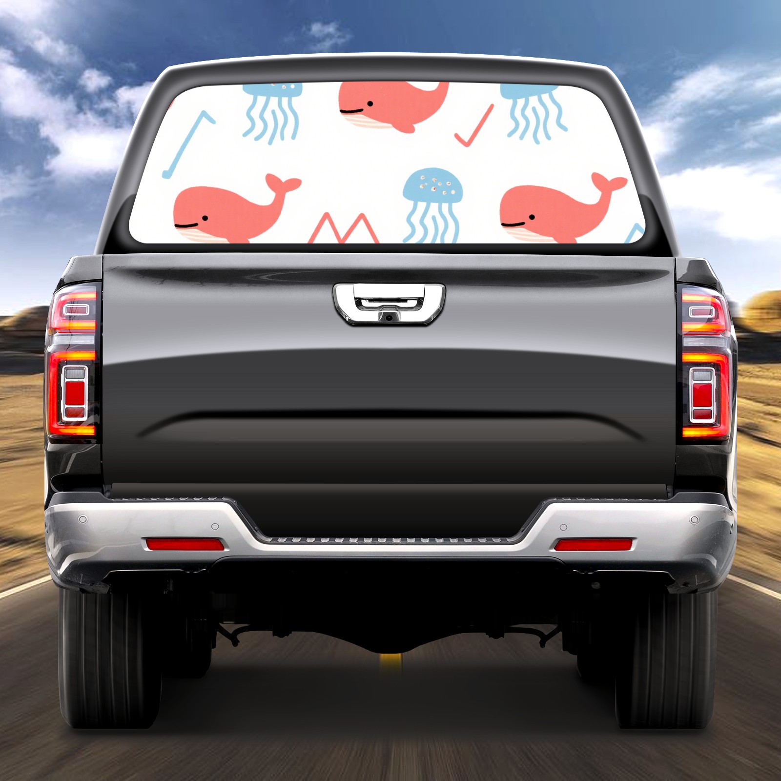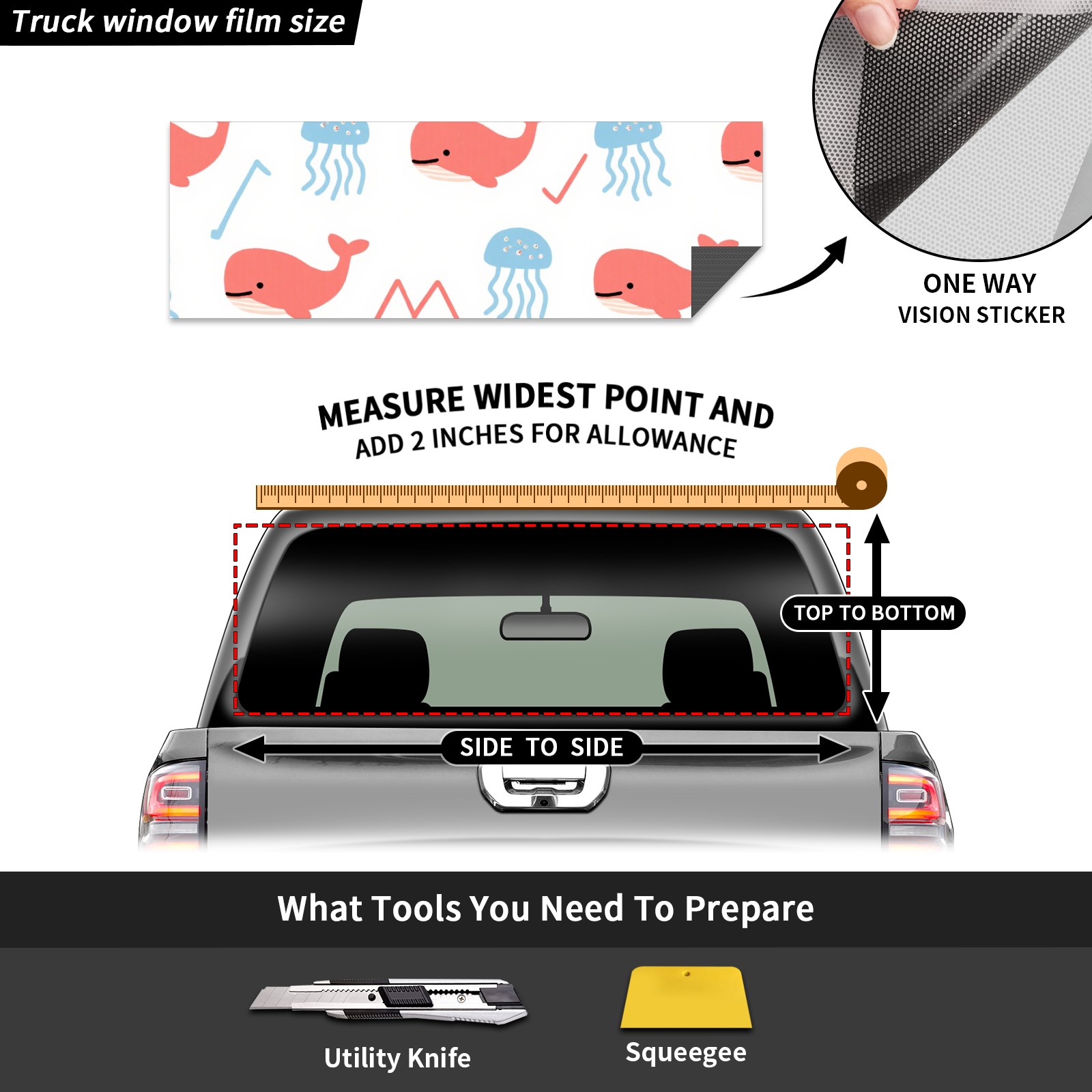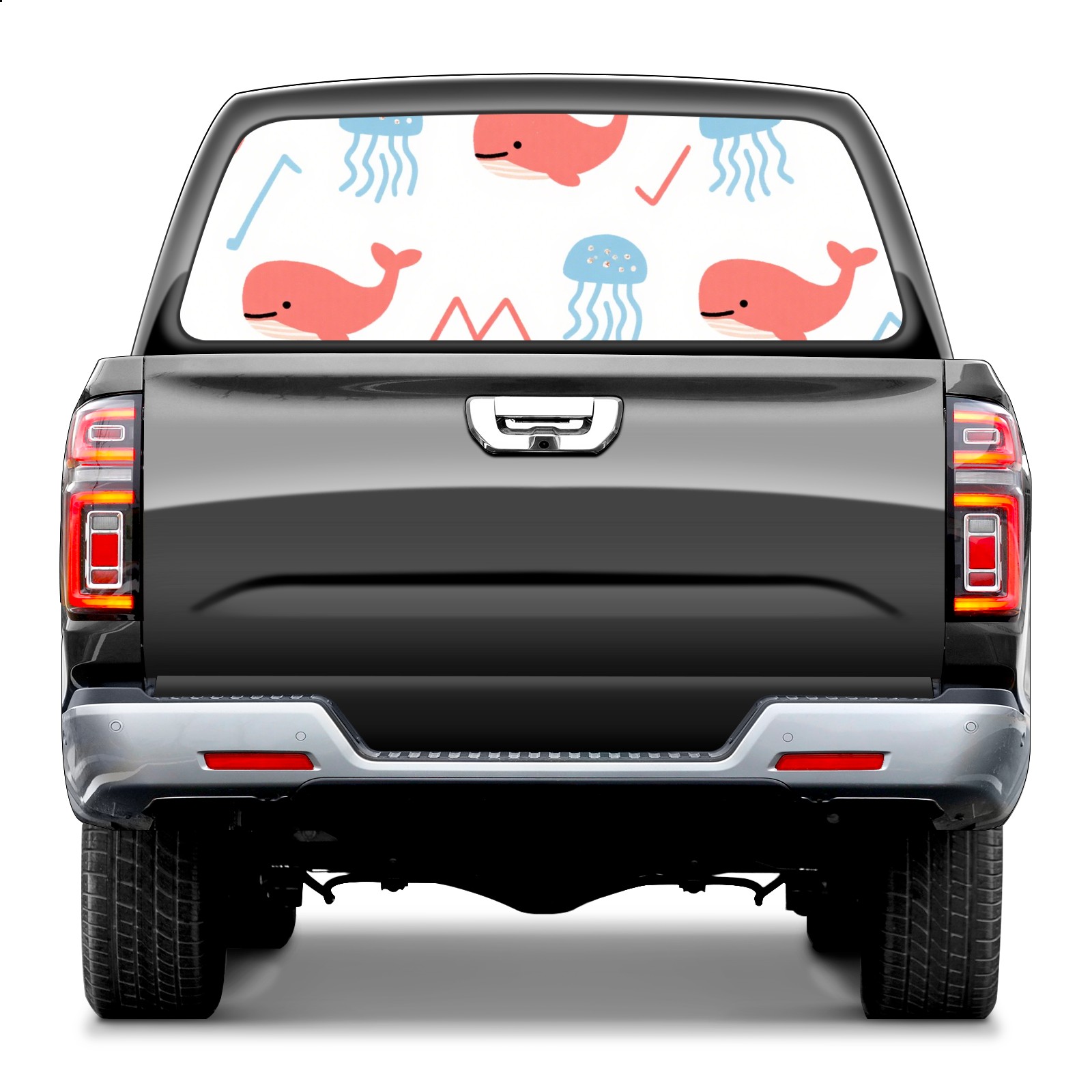 Marine Life Rear Window Decals for Trucks- Pickup Car Window Stickers Decal- Truck Back Window Tint Decal Graphic Perforated Vinyl Truck Stickers 66" X 22"