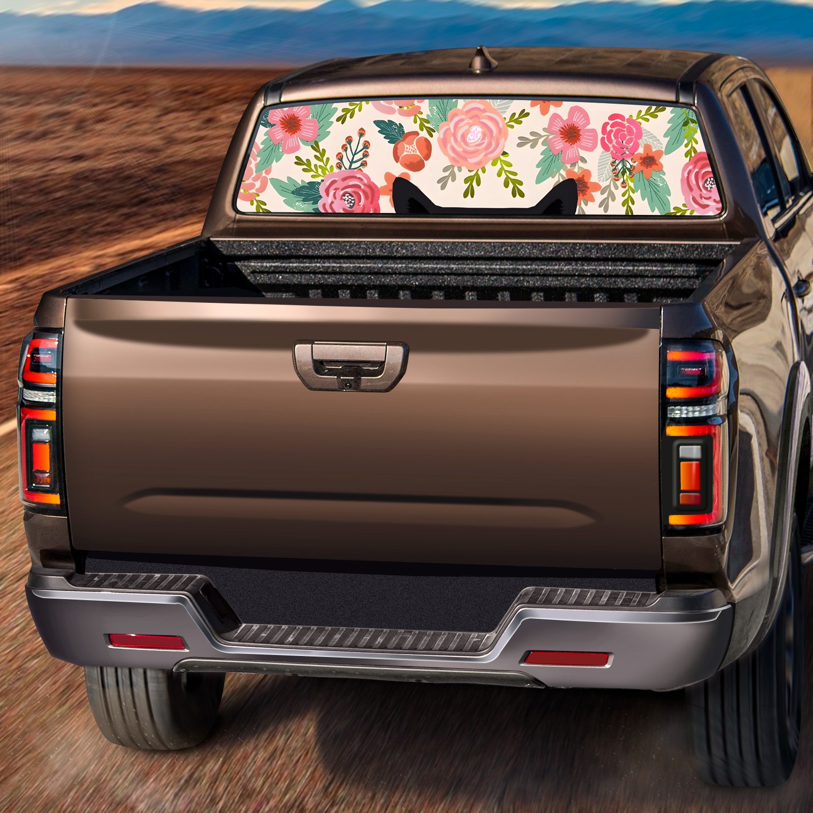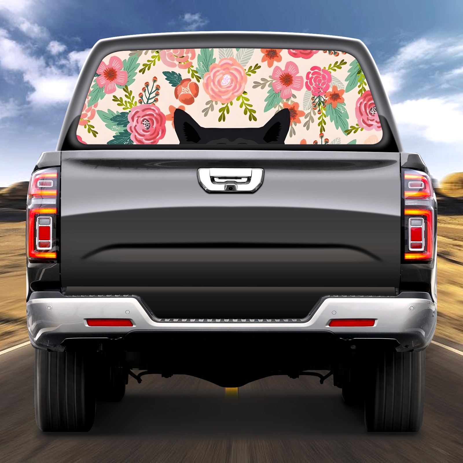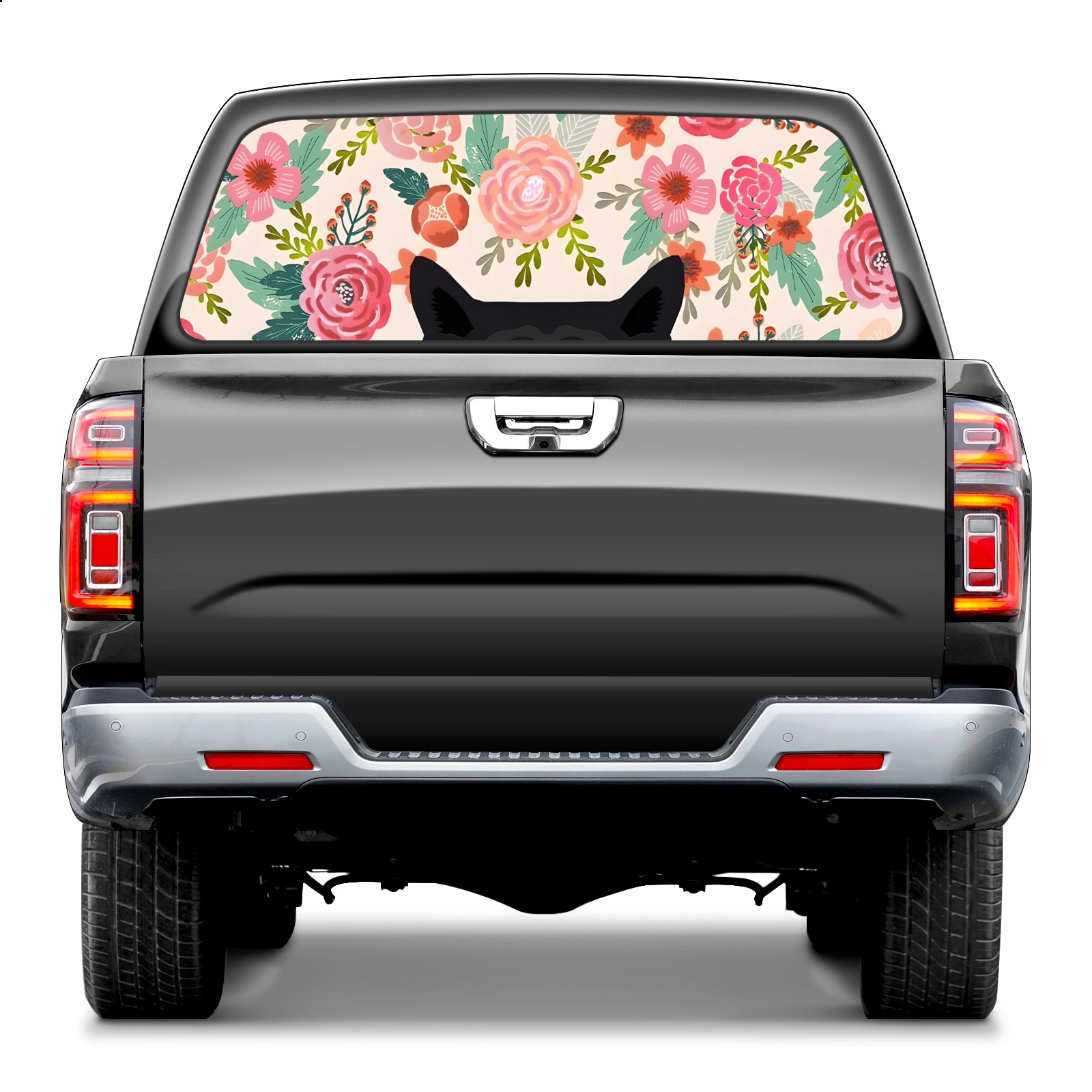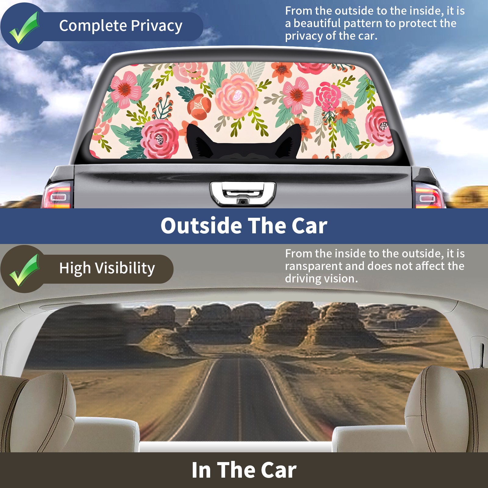 Cat Flower Rear Window Decals for Trucks- Pickup Car Window Stickers Decal- Truck Back Window Tint Decal Graphic Perforated Vinyl Truck Stickers 66" X 22"
