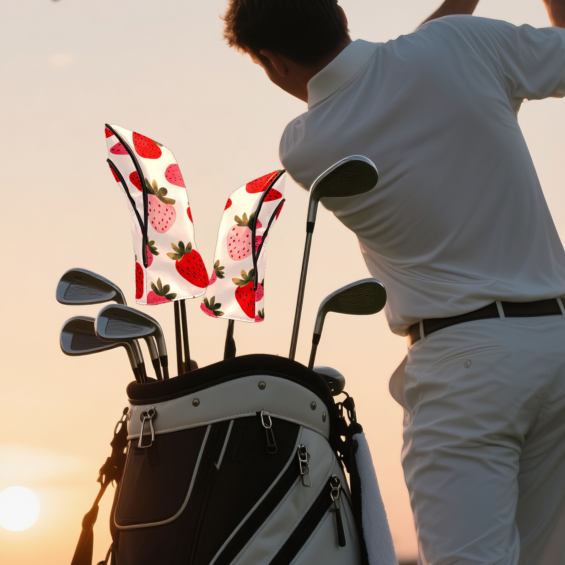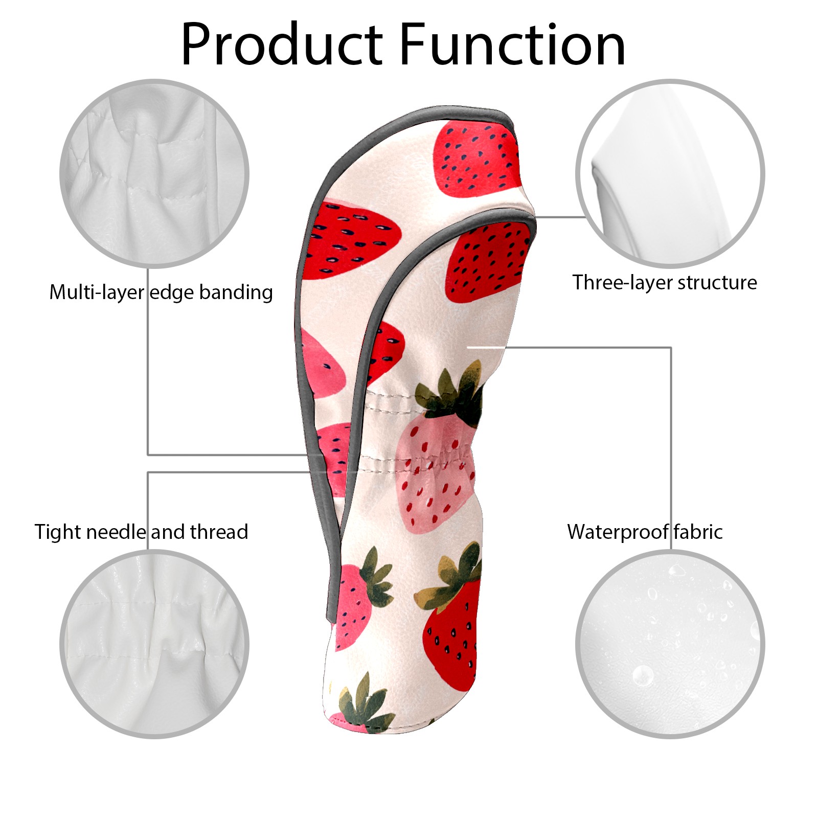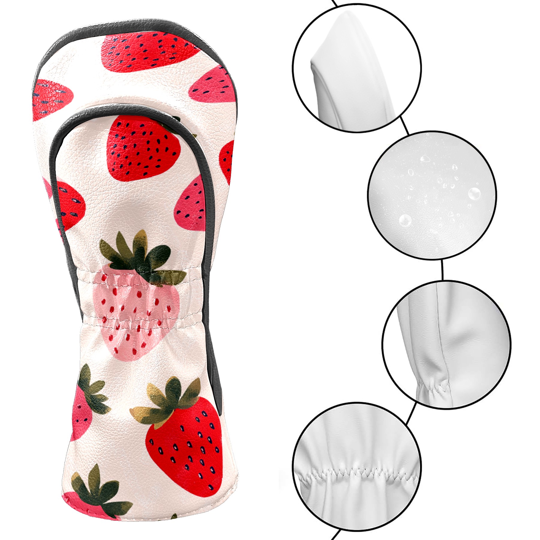 Golf Club Head Cover Waterproof Leather Golf Club Cover Driver Headcover for Women Men Strawberry