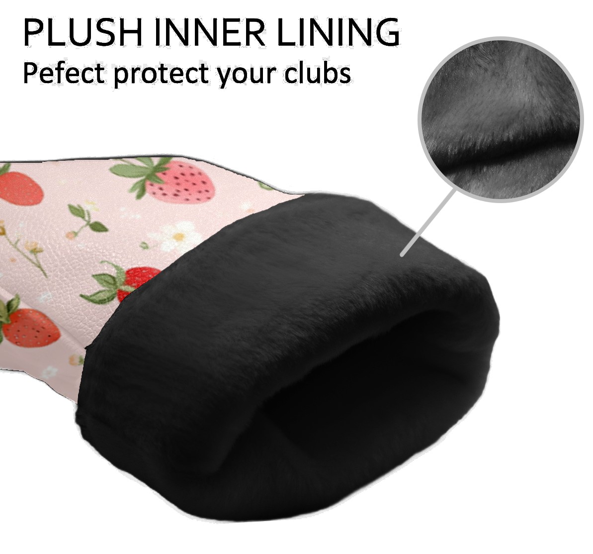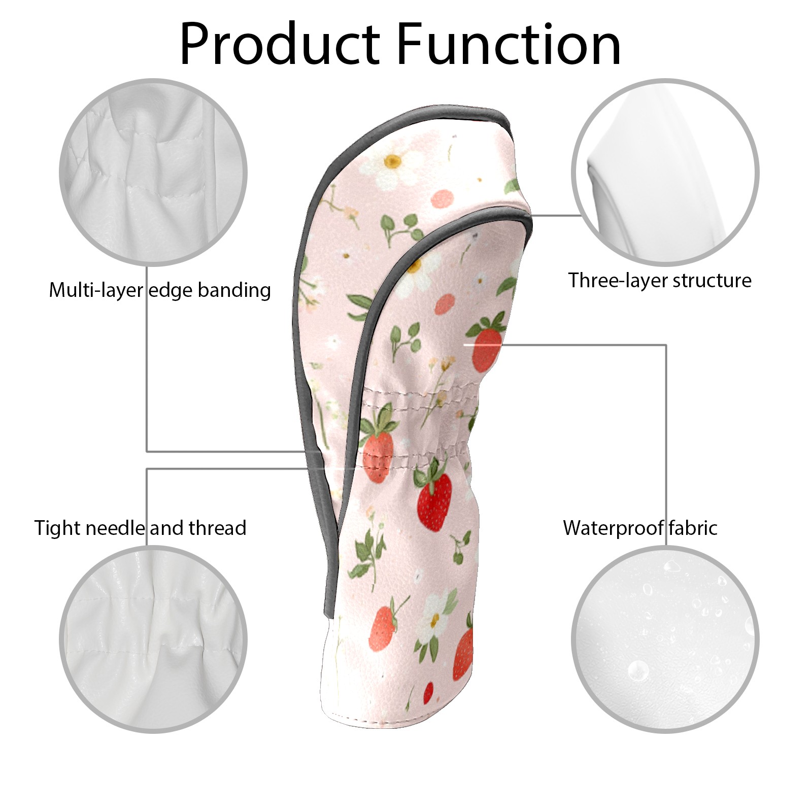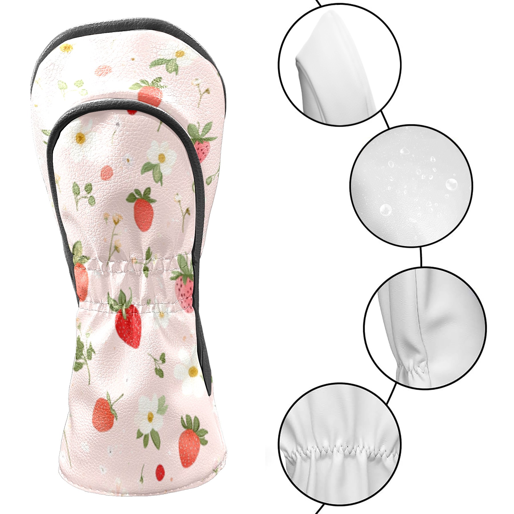 Golf Club Head Cover Waterproof Leather Golf Club Cover Driver Headcover for Women Men Strawberry