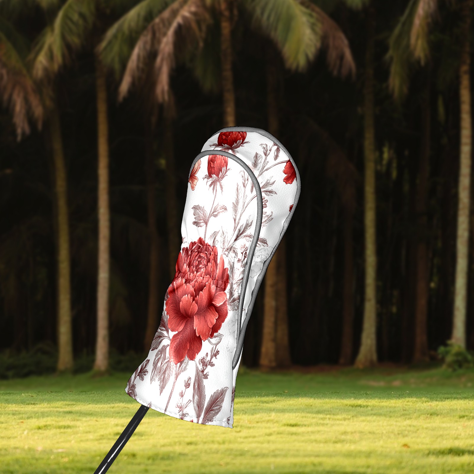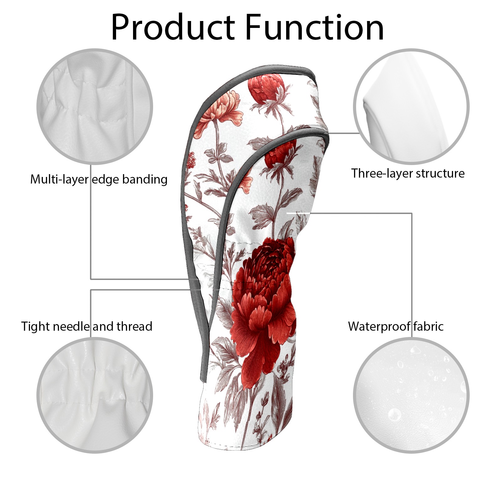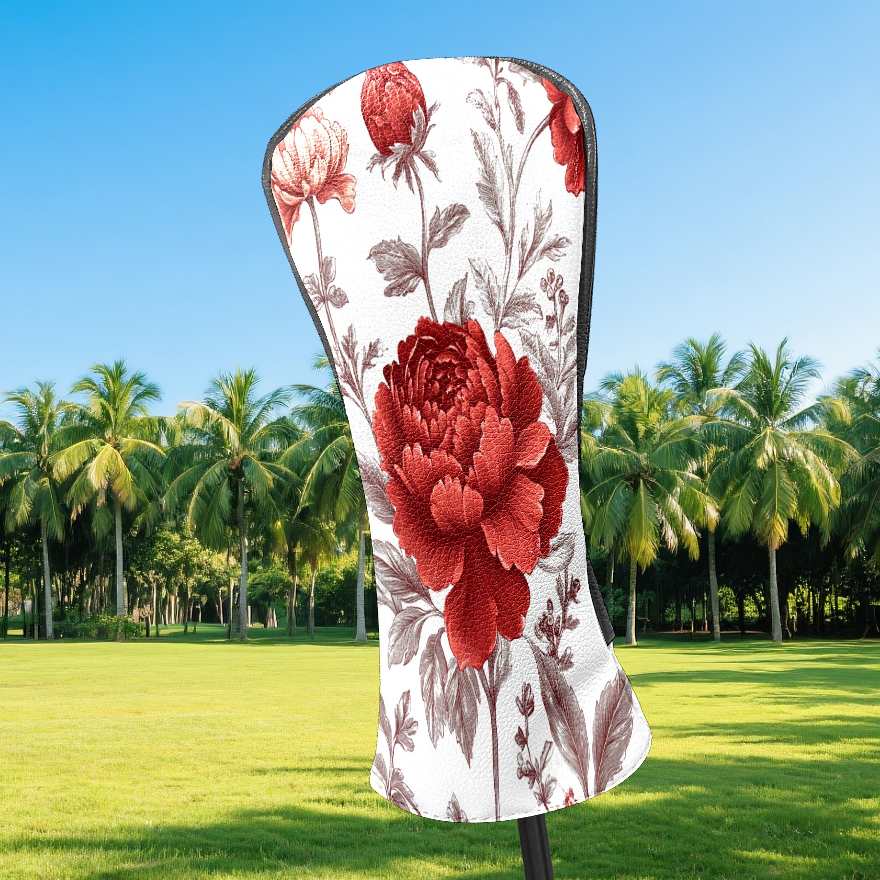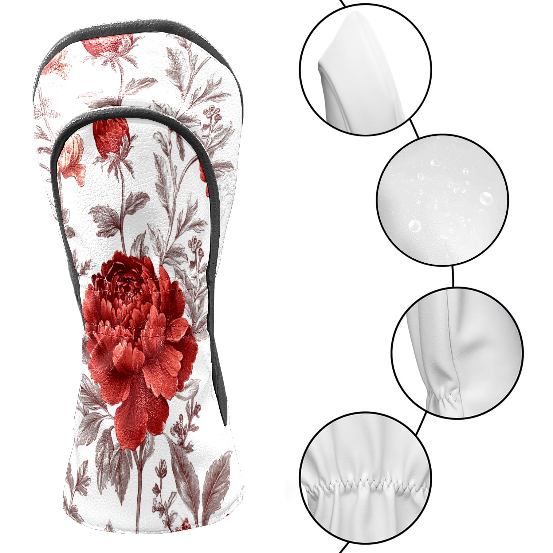 Golf Club Head Cover Waterproof Leather Golf Club Cover Driver Headcover for Women Men Red Flower