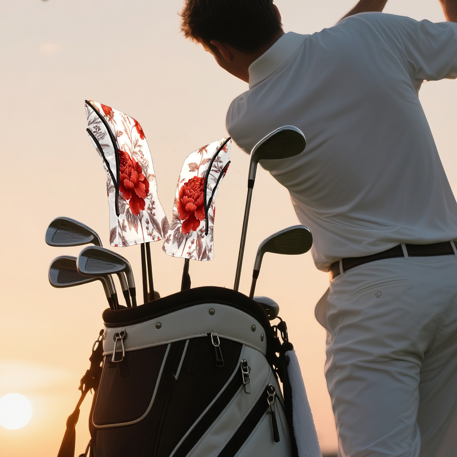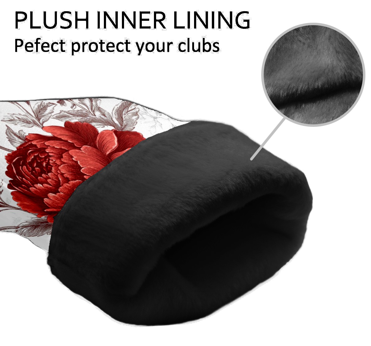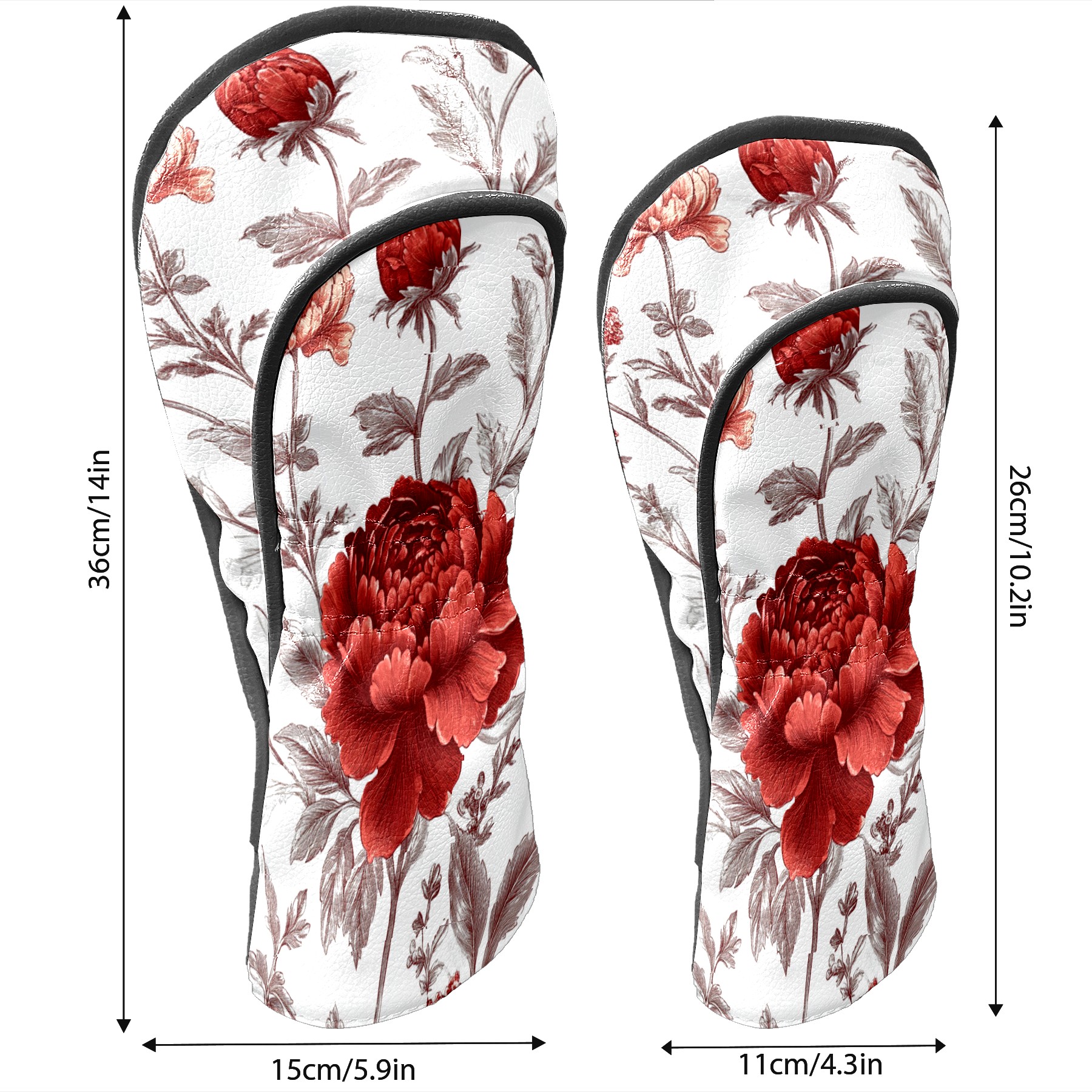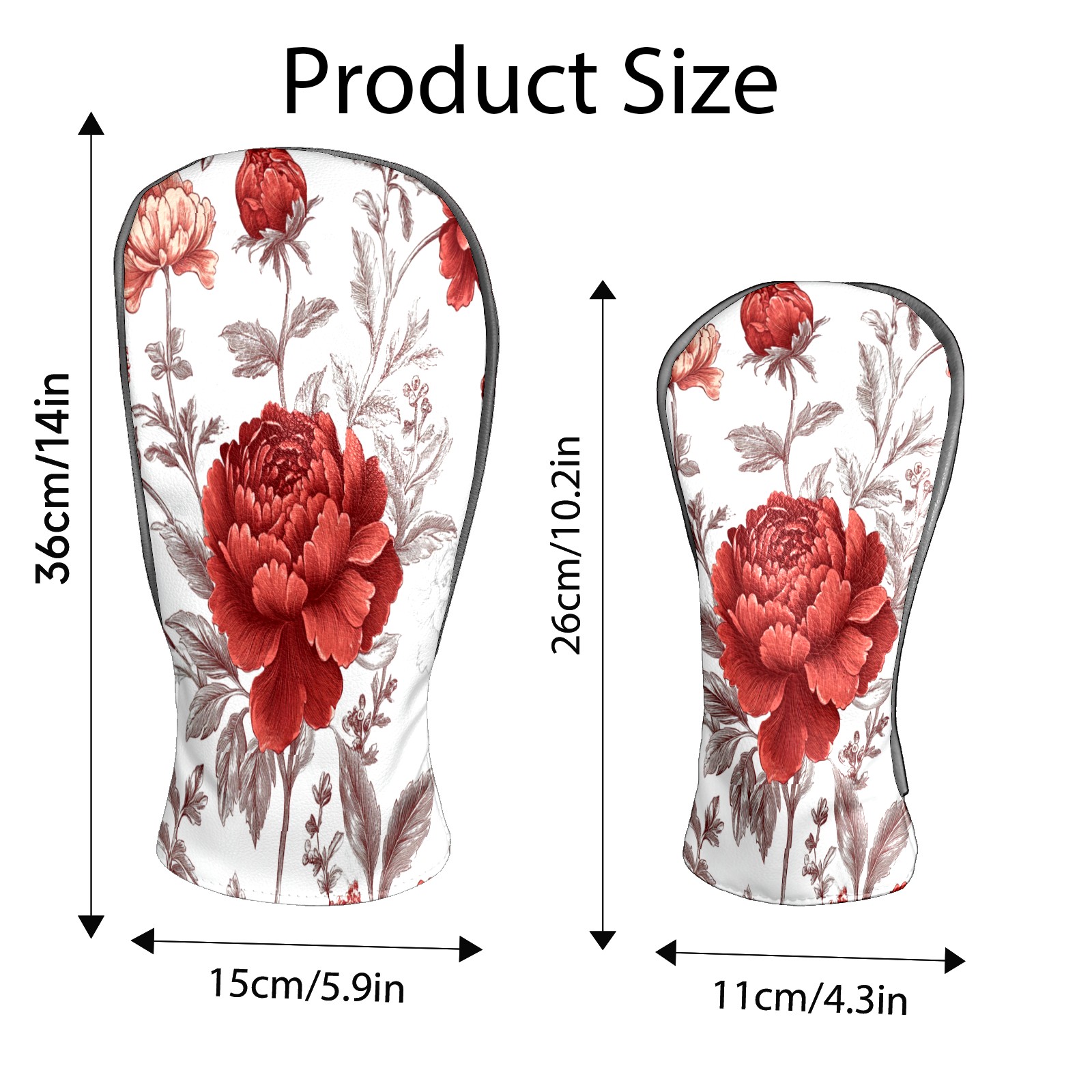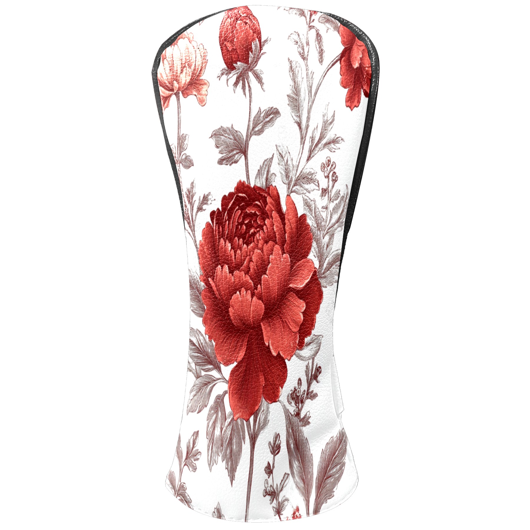 Golf Club Head Cover Waterproof Leather Golf Club Cover Driver Headcover for Women Men Red Flower
