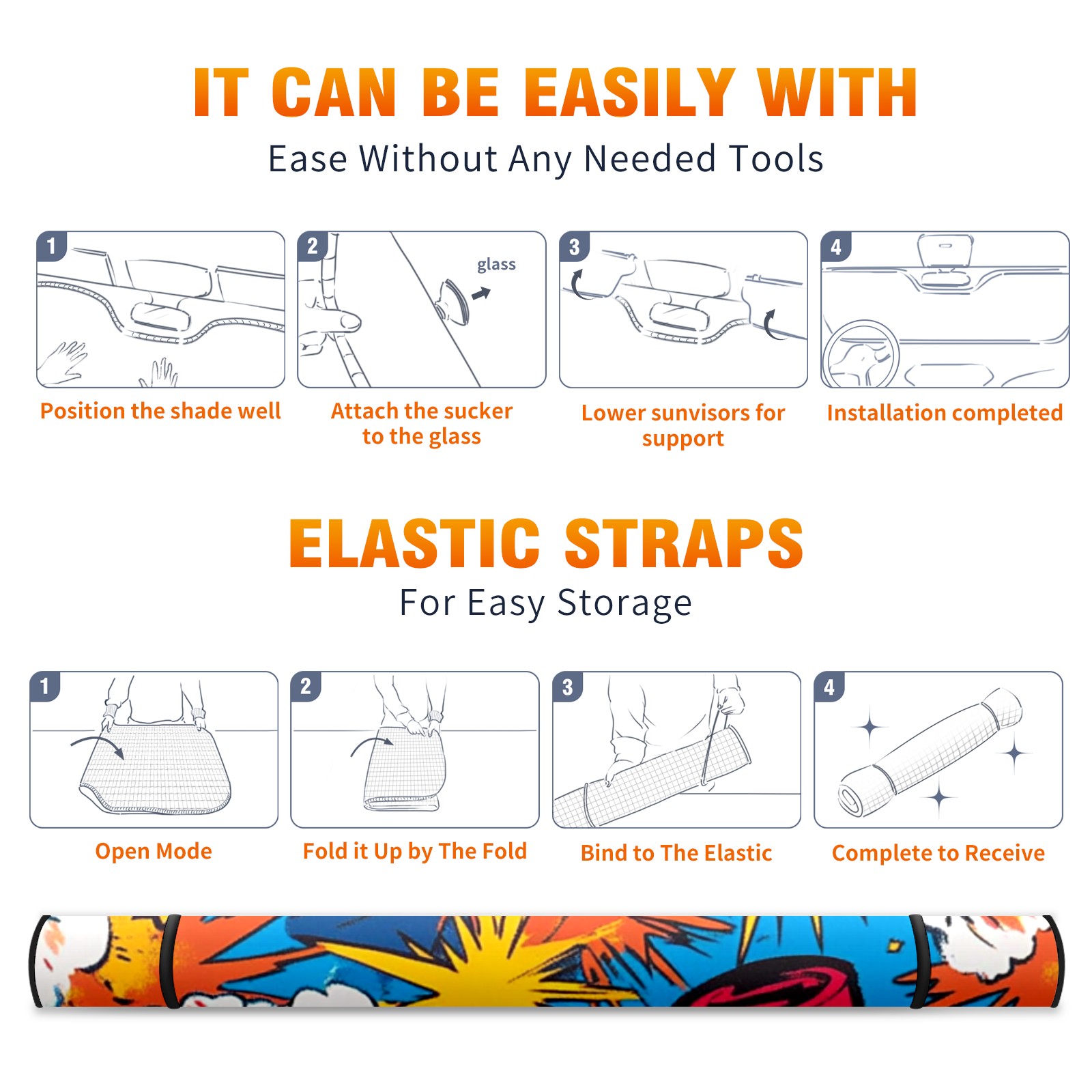 • <p><b>Foldable Premium Car Windshield Sunshade is your great solution to reduce your car’s interior temperature dramatically! This is definitely a must-have item for your summer travel!</b></p><p><b>【Precision Fit, Stylish Protection】</b></p><p>55"x30" (140x76cm) universal size with 3cm flexible margins fits curved windshields of most sedans/SUVs.</p><p><b>【Blocking Uv Rays &amp; Heat Insulation】</b></p><p>Our vehicle sunshade provides effective UV, sun, and summer heat protection, preventing leather fading and plastic cracking to keep your car interior pristine.</p><p><b>【Zero-Mark Installation &amp; Space-Saving】</b></p><p>Equipped with dual scratch-free silicone suction cups + adjustable straps: Medical-grade silicone cups hold firmly yet remove cleanly. Folds to A3 size (42x30cm x &lt;2cm thick), tucks discreetly into glove compartments or door pockets.&nbsp;</p>