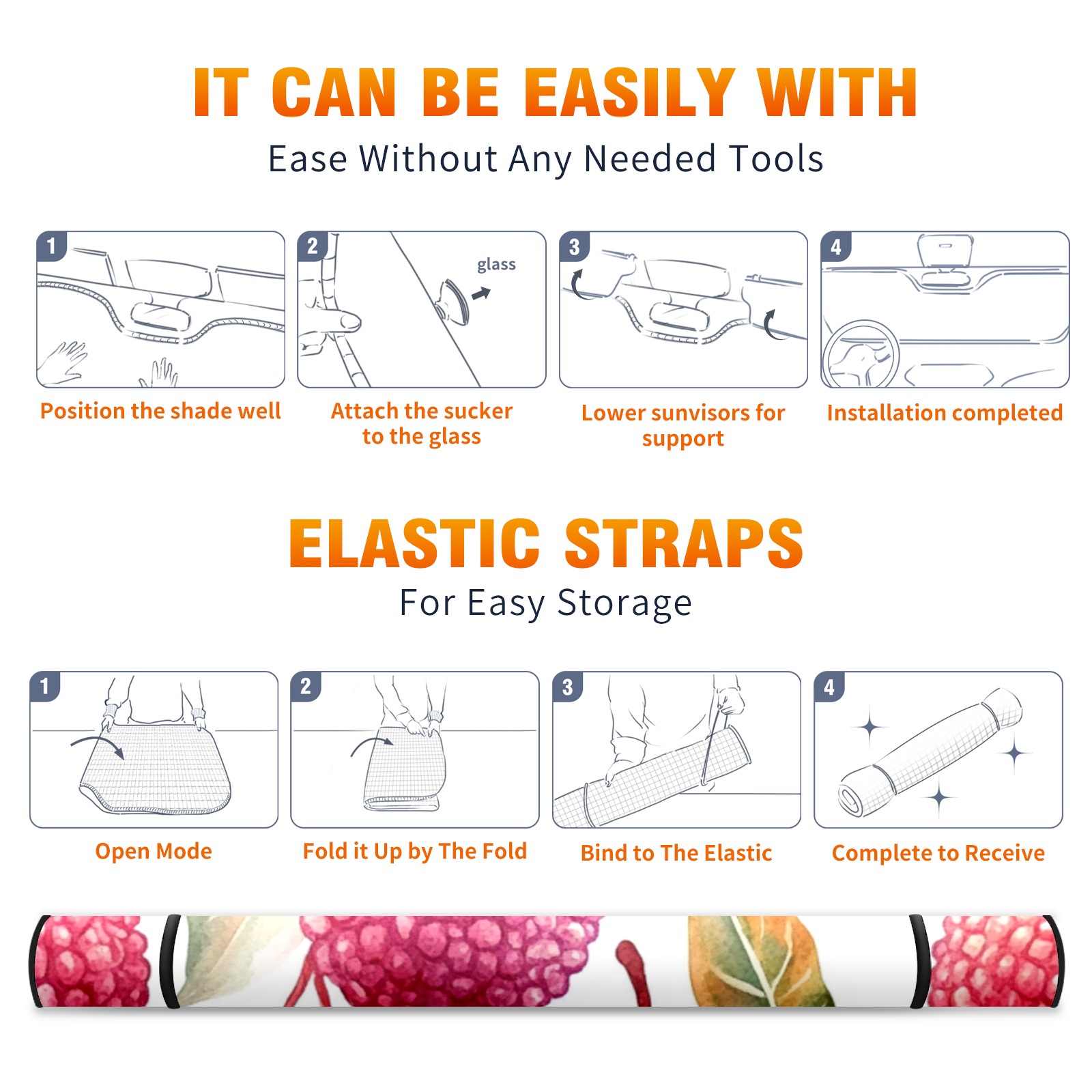 <p><b>Foldable Premium Car Windshield Sunshade is your great solution to reduce your car’s interior temperature dramatically! This is definitely a must-have item for your summer travel!</b></p><p><b>【Precision Fit, Stylish Protection】</b></p><p>55"x30" (140x76cm) universal size with 3cm flexible margins fits curved windshields of most sedans/SUVs.</p><p><b>【Blocking Uv Rays &amp; Heat Insulation】</b></p><p>Our vehicle sunshade provides effective UV, sun, and summer heat protection, preventing leather fading and plastic cracking to keep your car interior pristine.</p><p><b>【Zero-Mark Installation &amp; Space-Saving】</b></p><p>Equipped with dual scratch-free silicone suction cups + adjustable straps: Medical-grade silicone cups hold firmly yet remove cleanly. Folds to A3 size (42x30cm x &lt;2cm thick), tucks discreetly into glove compartments or door pockets.&nbsp;</p>