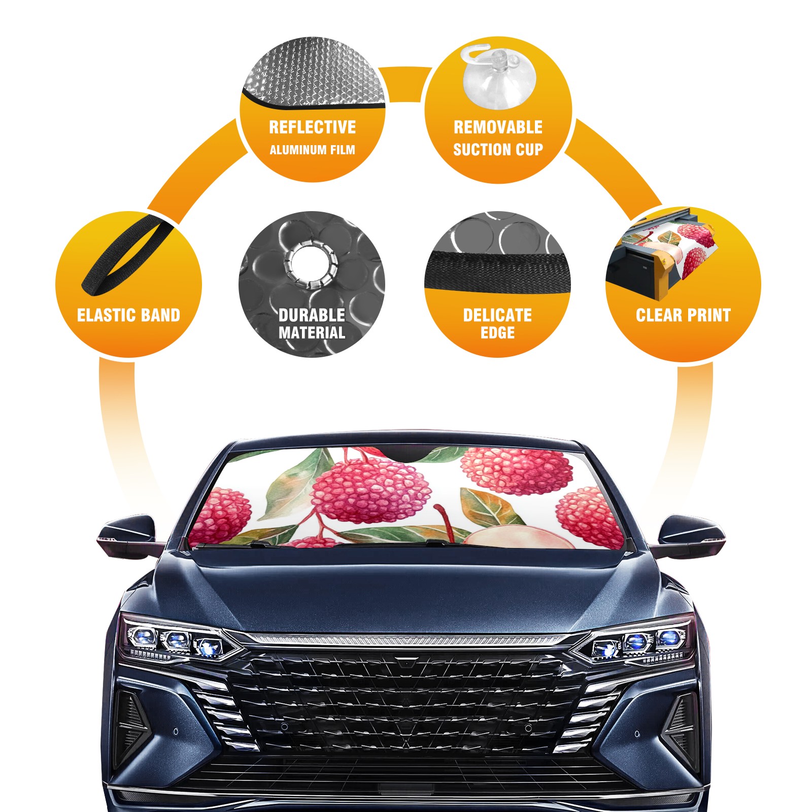 Lychee Car Sun Shade UV Protection Foldable Sunshade for Windshield Heat Insulation Portable Sun Shield for Car Interior Protection Automotive Window Protector