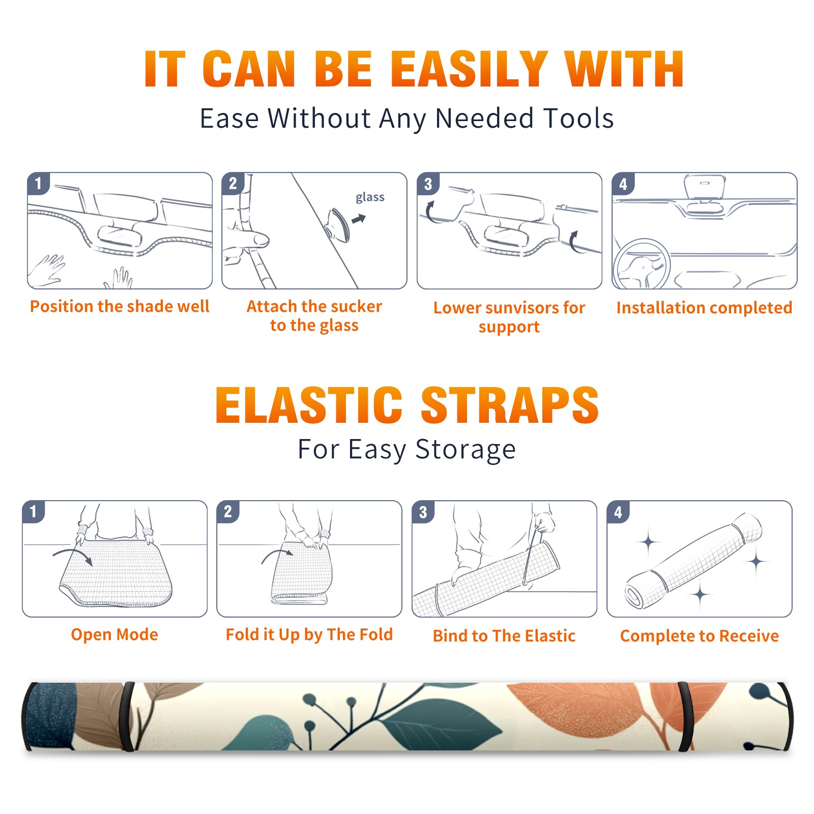 • <p><b>Foldable Premium Car Windshield Sunshade is your great solution to reduce your car’s interior temperature dramatically! This is definitely a must-have item for your summer travel!</b></p><p><b>【Precision Fit, Stylish Protection】</b></p><p>55"x30" (140x76cm) universal size with 3cm flexible margins fits curved windshields of most sedans/SUVs.</p><p><b>【Blocking Uv Rays &amp; Heat Insulation】</b></p><p>Our vehicle sunshade provides effective UV, sun, and summer heat protection, preventing leather fading and plastic cracking to keep your car interior pristine.</p><p><b>【Zero-Mark Installation &amp; Space-Saving】</b></p><p>Equipped with dual scratch-free silicone suction cups + adjustable straps: Medical-grade silicone cups hold firmly yet remove cleanly. Folds to A3 size (42x30cm x &lt;2cm thick), tucks discreetly into glove compartments or door pockets.&nbsp;</p>